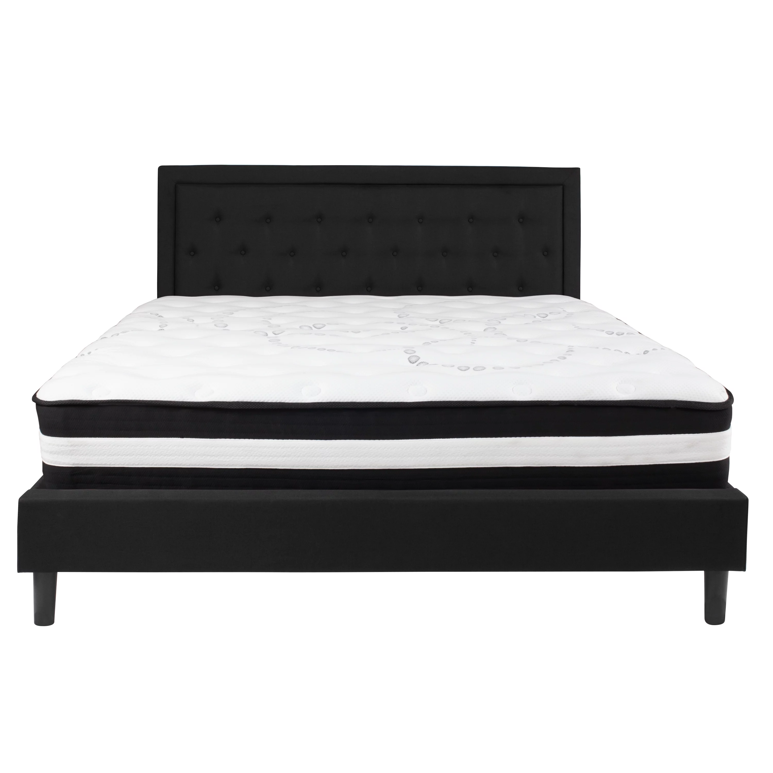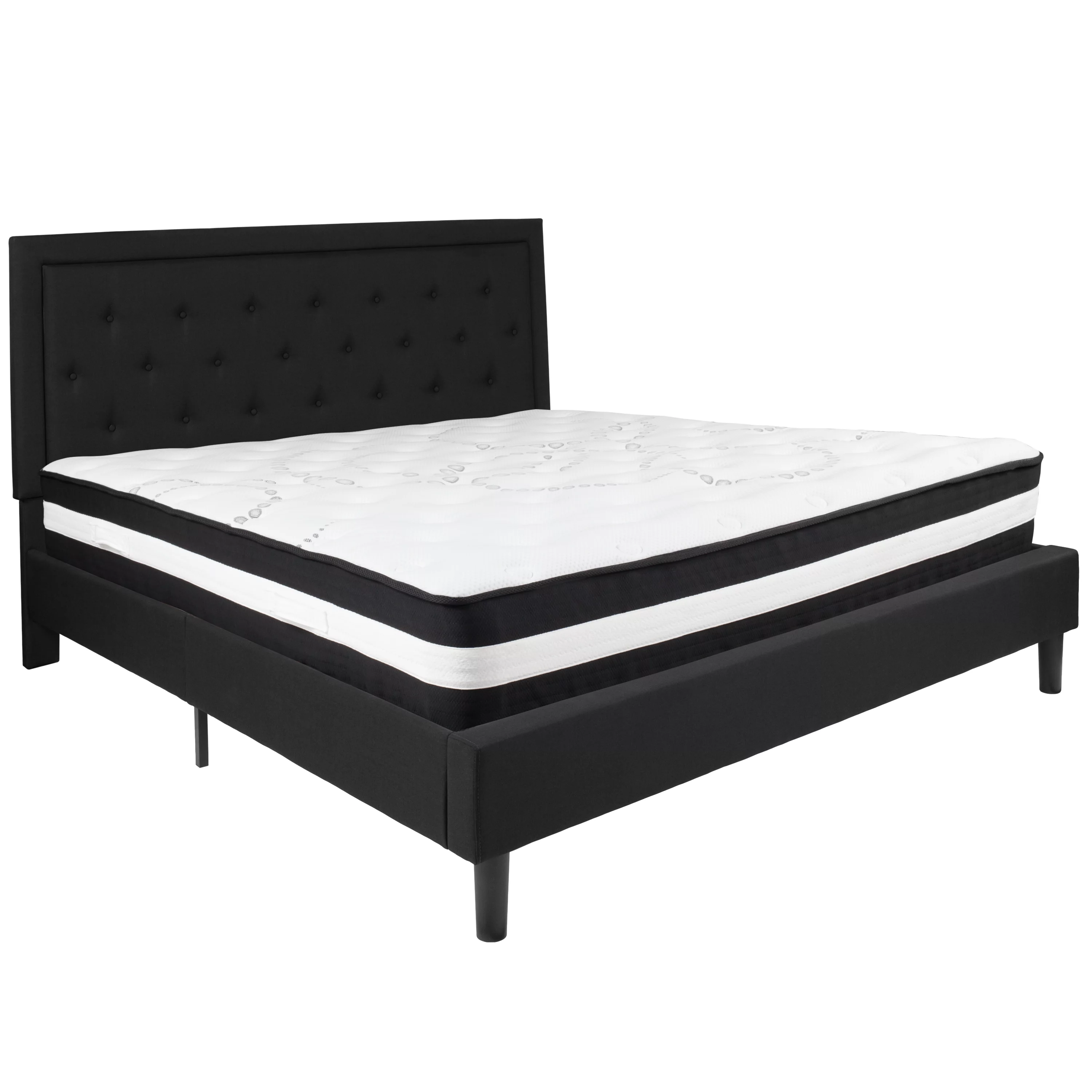 Flash Furniture Roxbury King Size Tufted Upholstered Platform Bed in Black Fabric with Pocket Spring Mattress