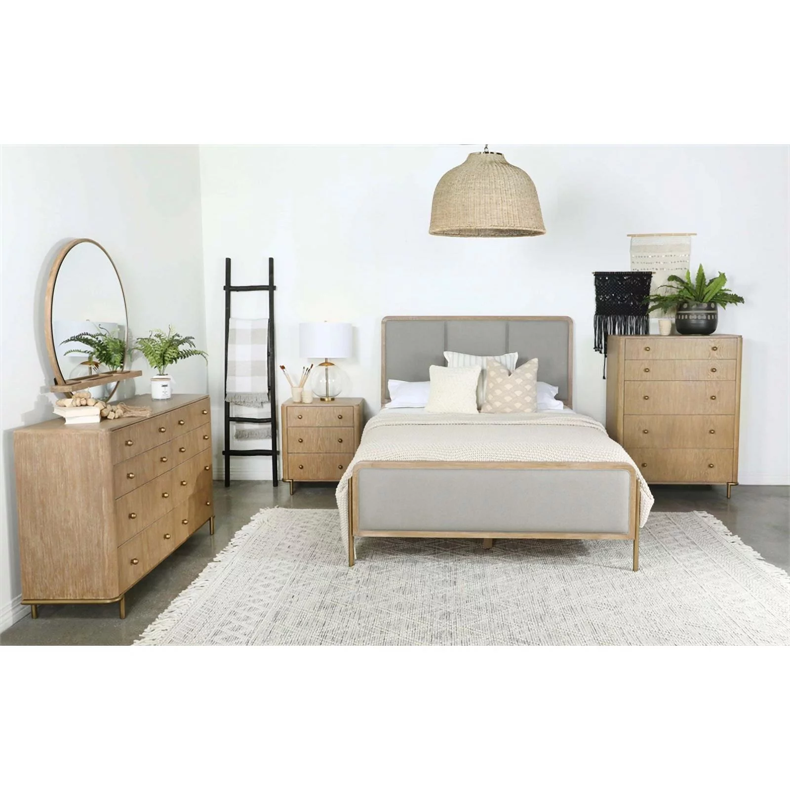 Pemberly Row Farmhouse Wood Eastern King Bed Smokey Walnut and Brown