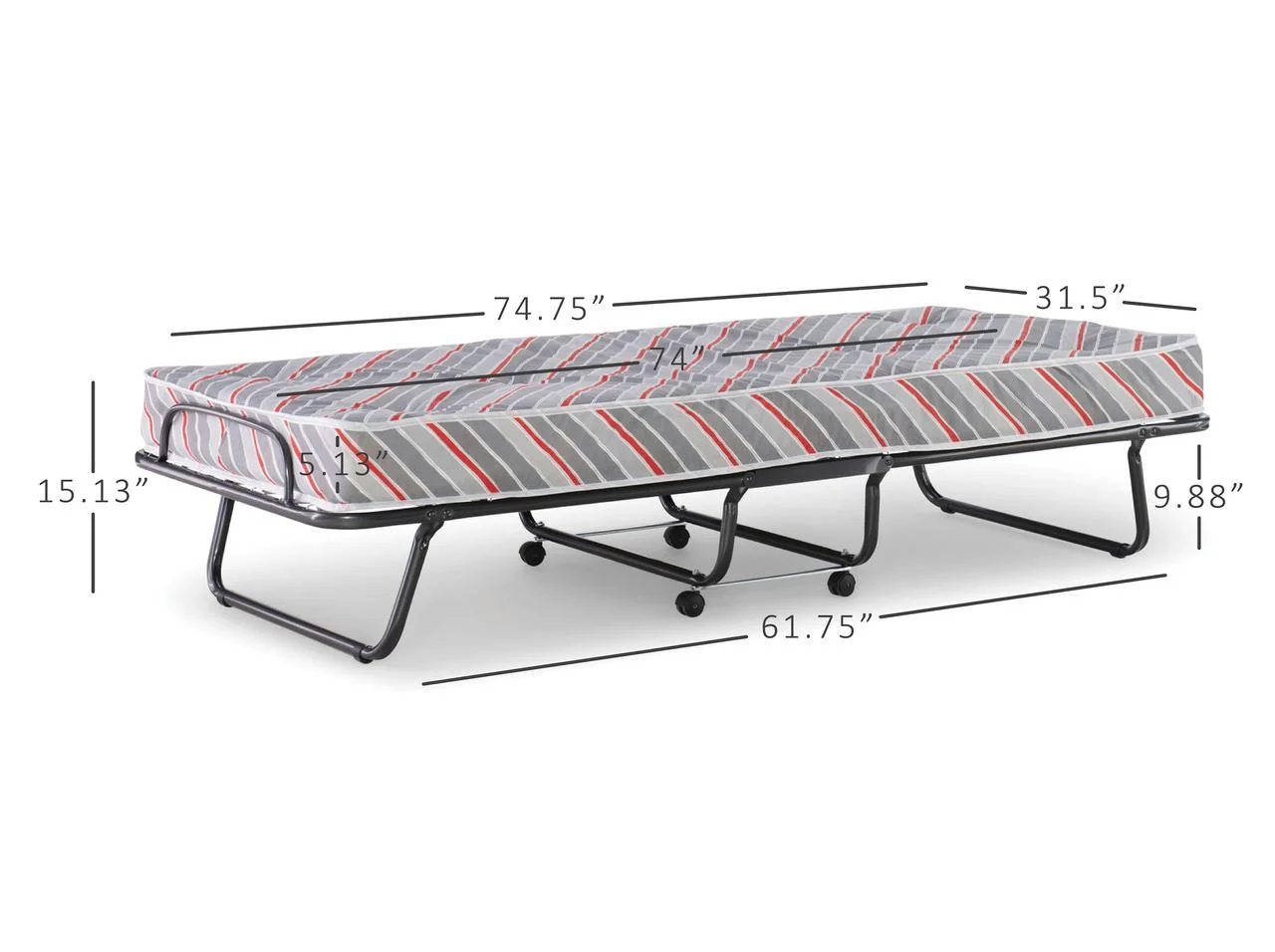 Linon Torino Folding Rollaway Guest Bed with 5" Innerspring Mattress, Cot