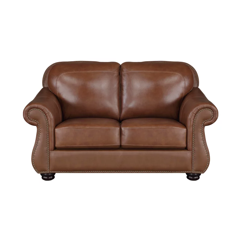 Hawthorne Collections 20.5" Farmhouse Leather Wildlife Pattern Sofa in Brown