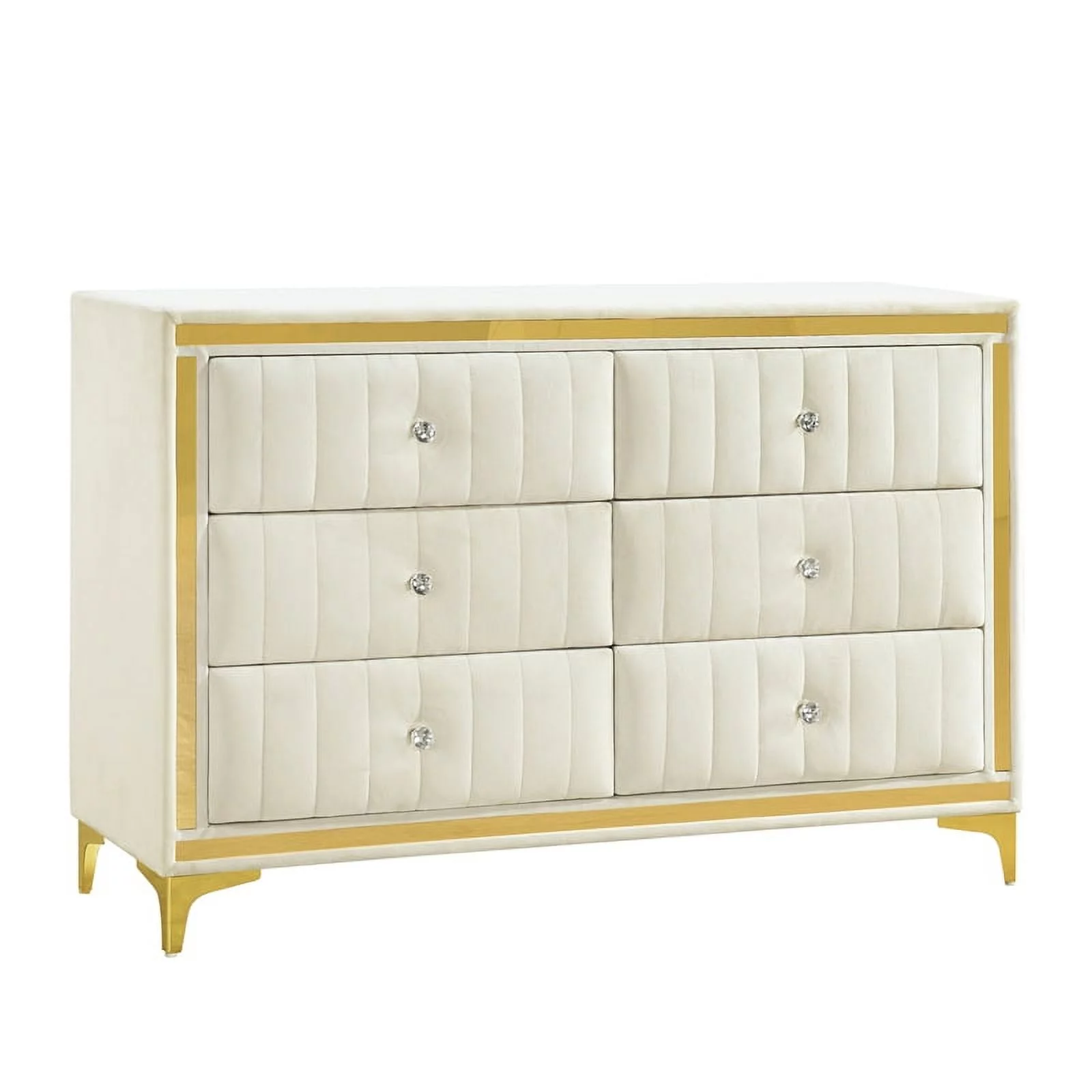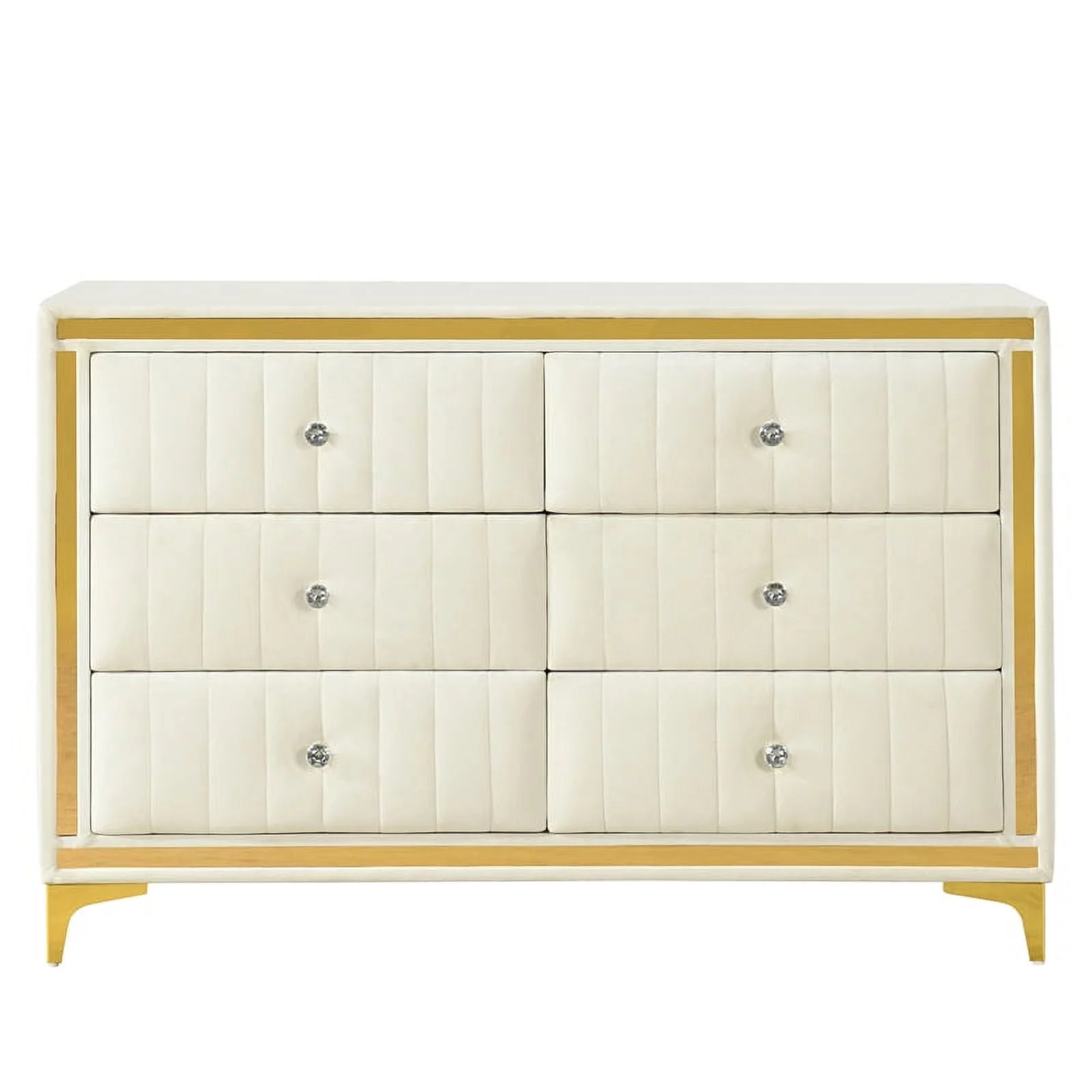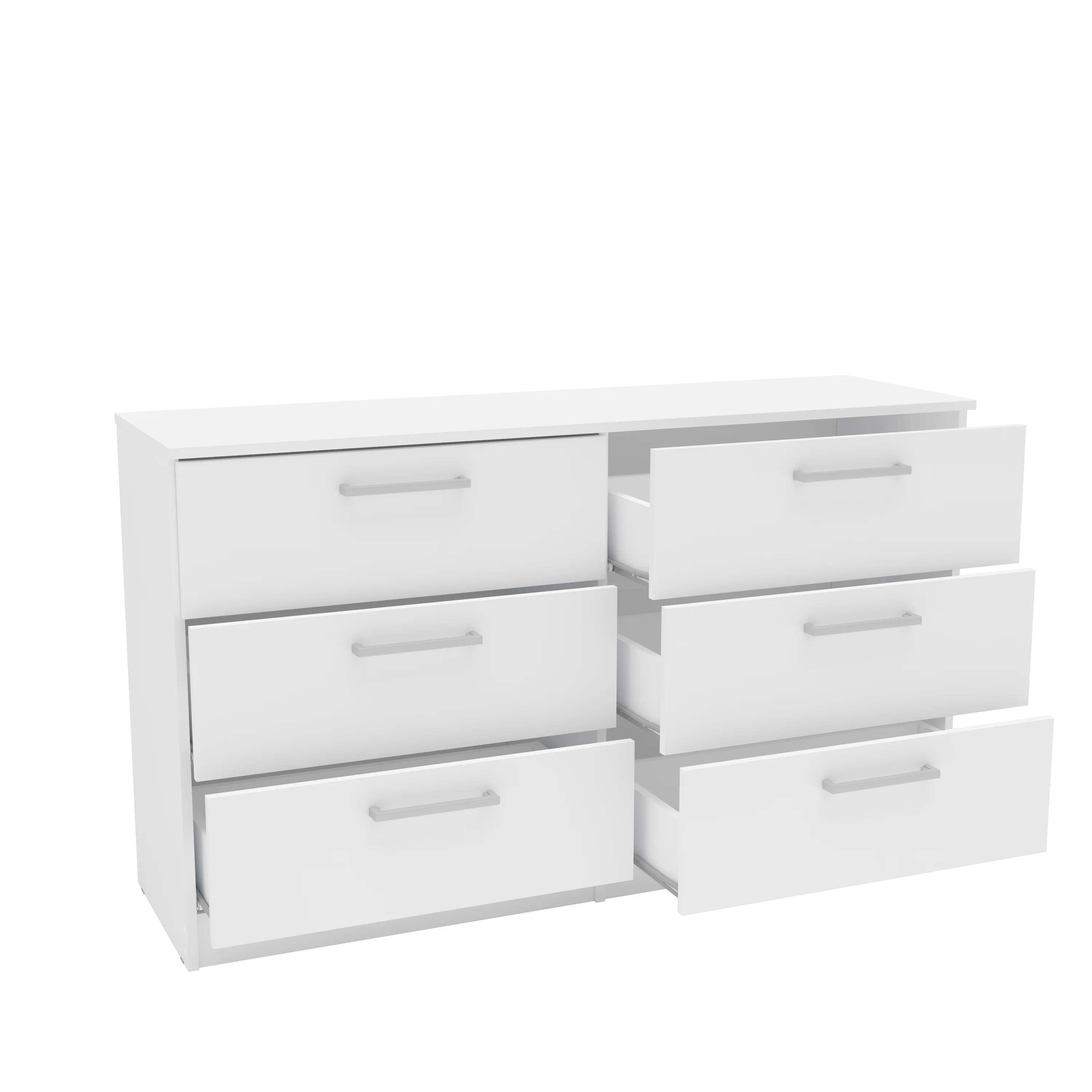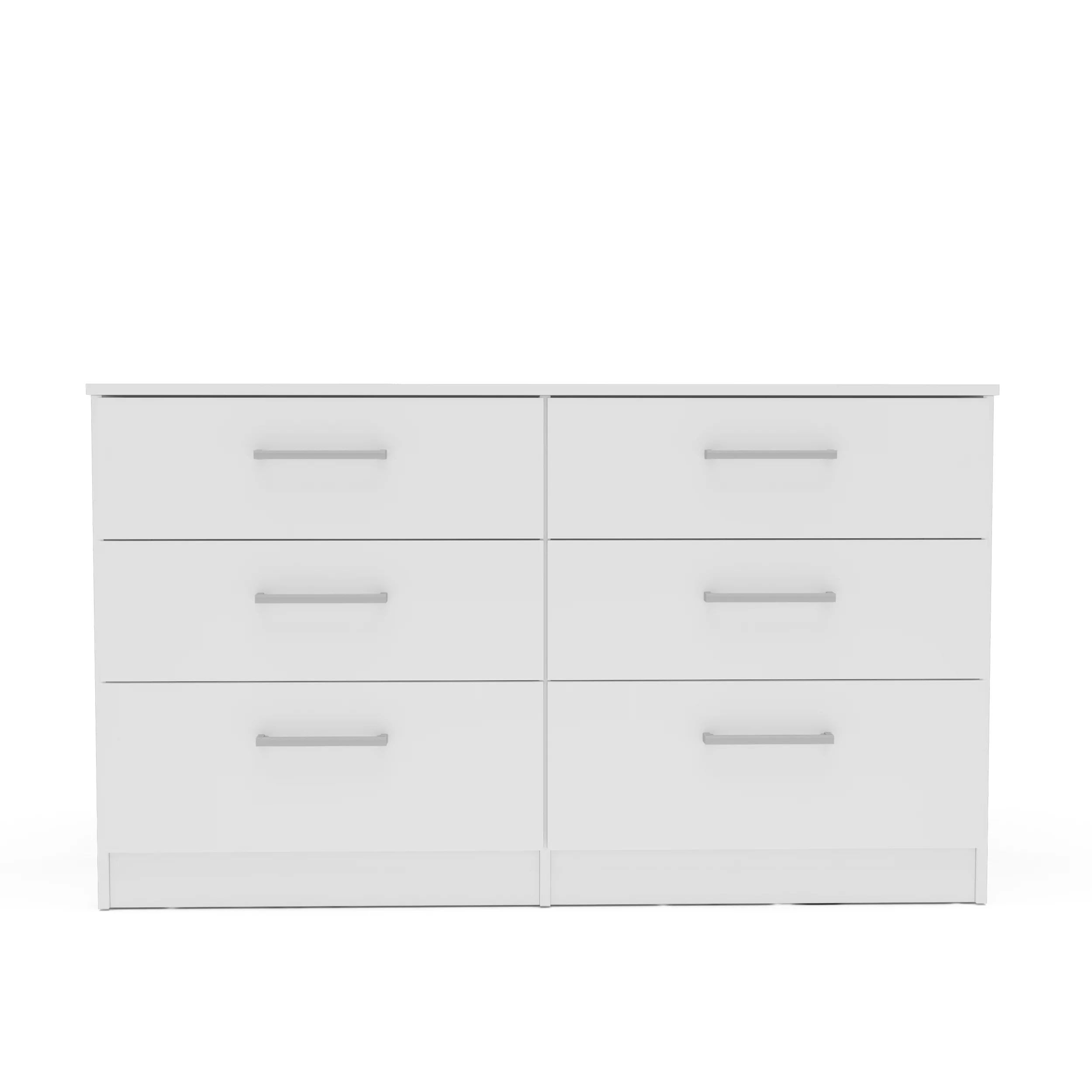 Polifurniture Juliette Modern 6 Drawer Wood Double Dresser with Metal Handles, White