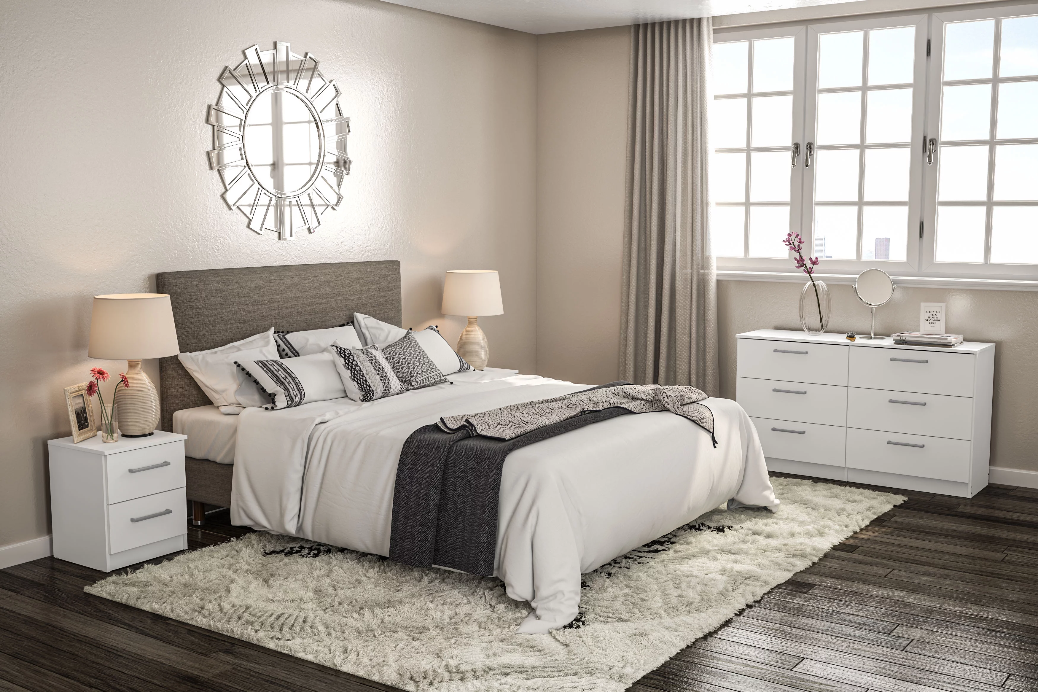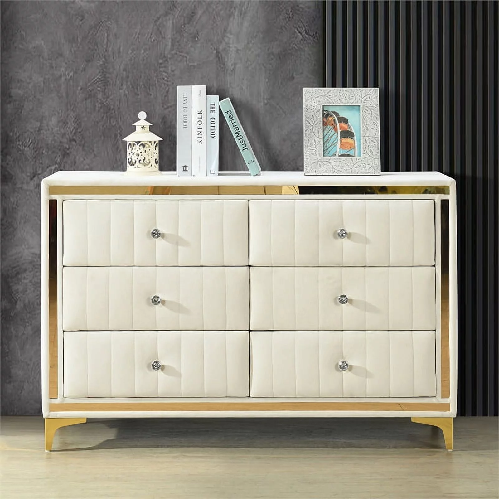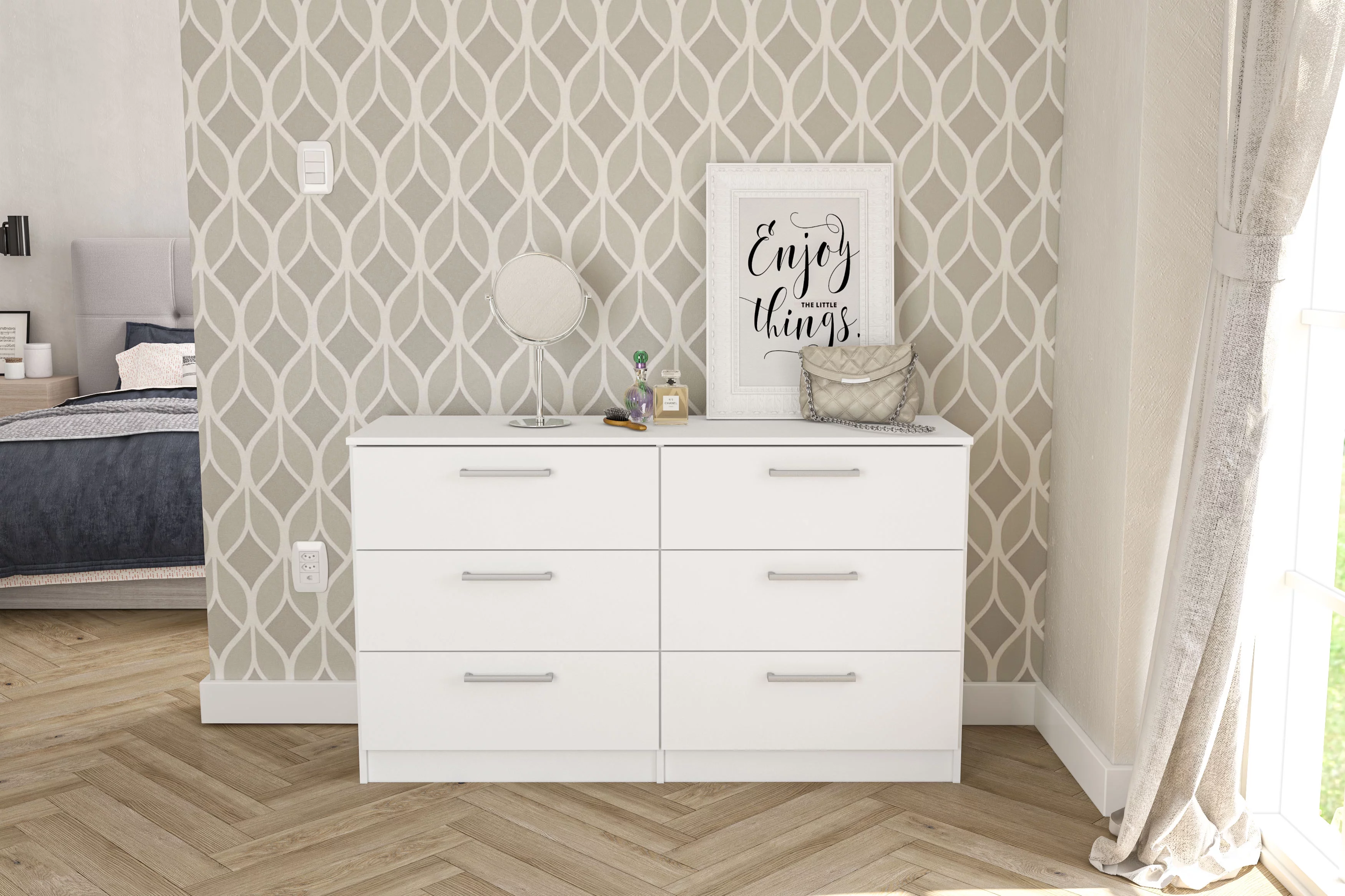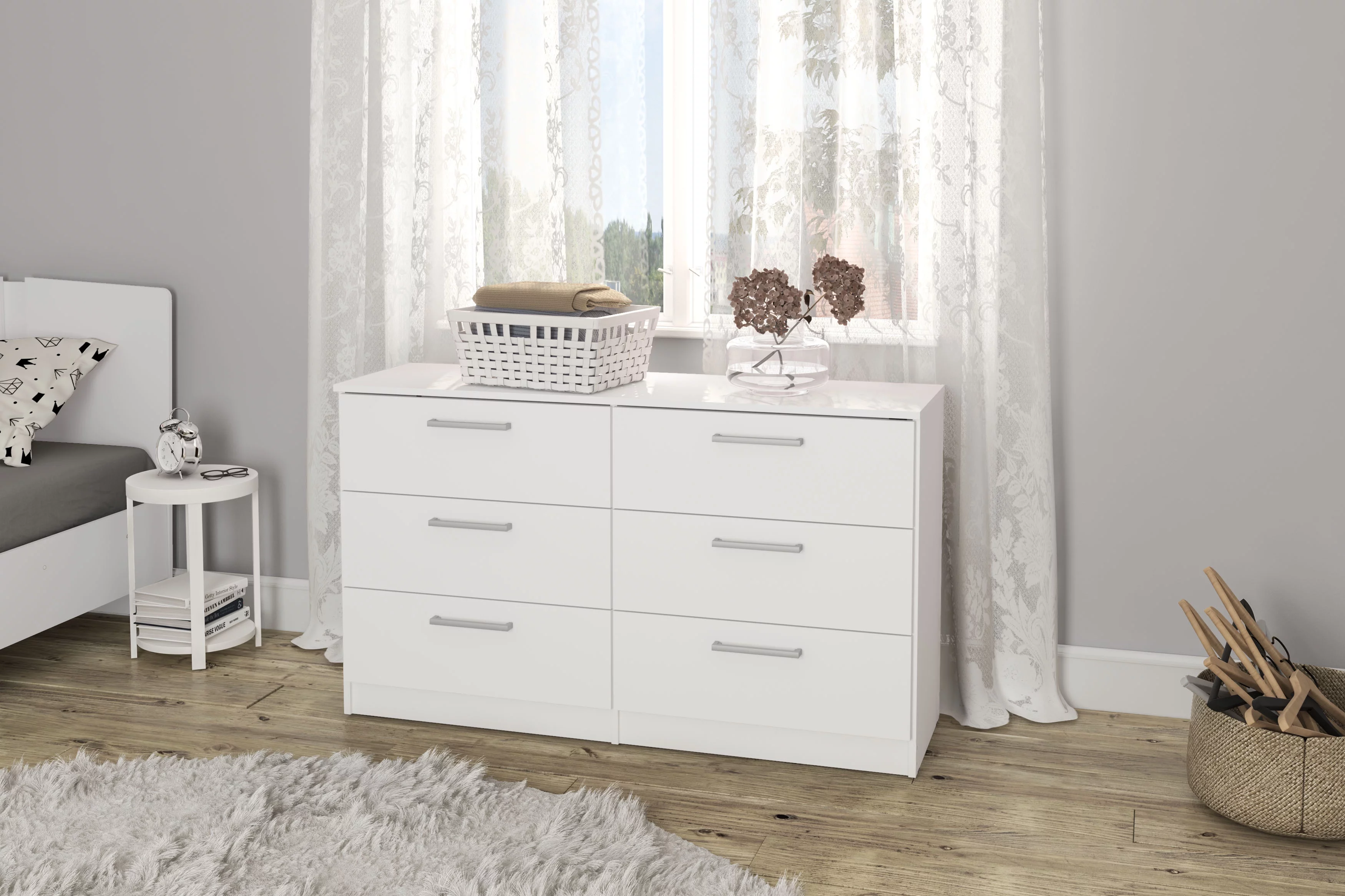 Polifurniture Juliette Modern 6 Drawer Wood Double Dresser with Metal Handles, White