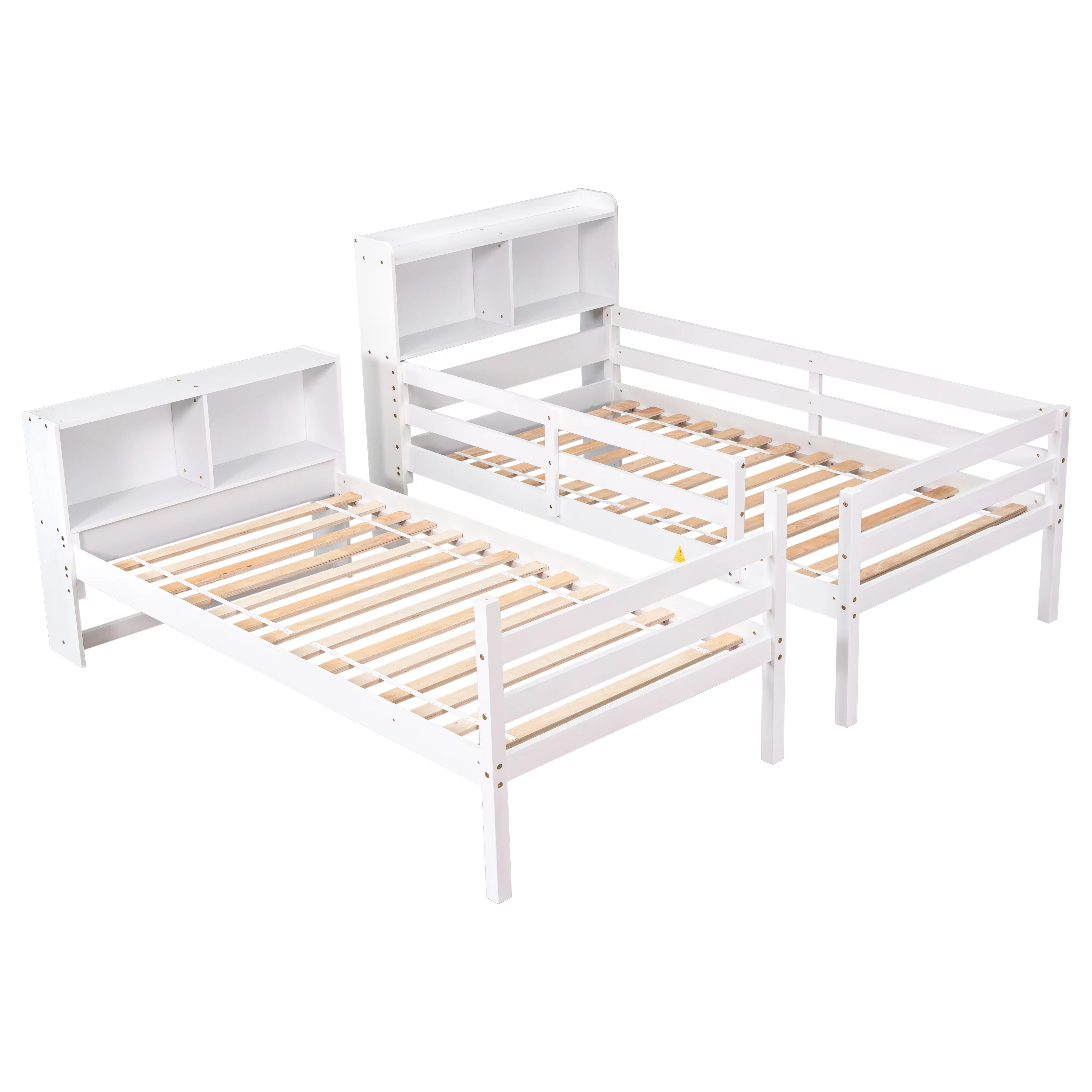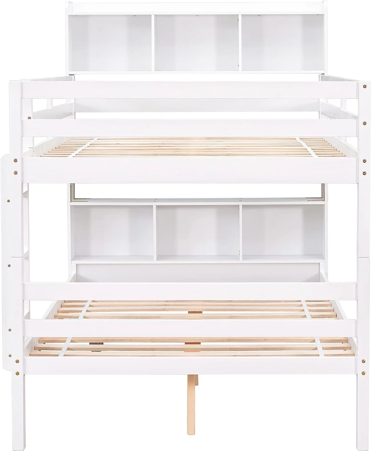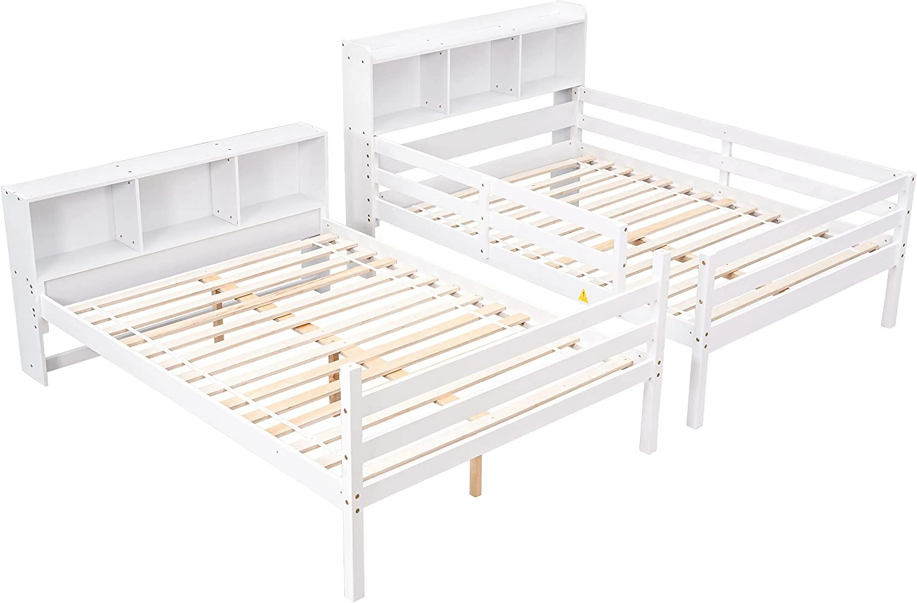 Pouseayar Twin Over Twin Bunk Beds with Bookcase Headboard, Can Be Converted into 2 Beds for Kids Boys Girls, White