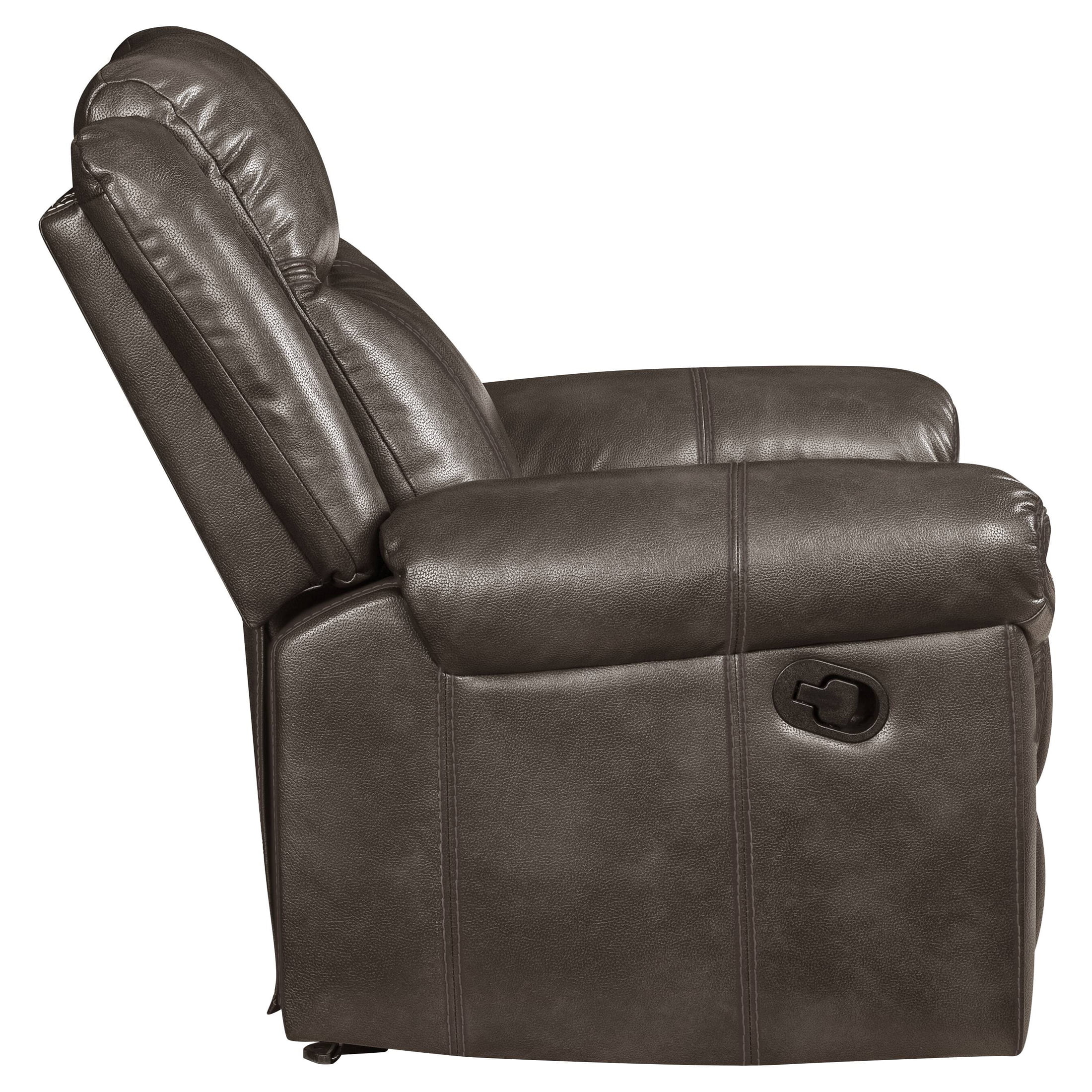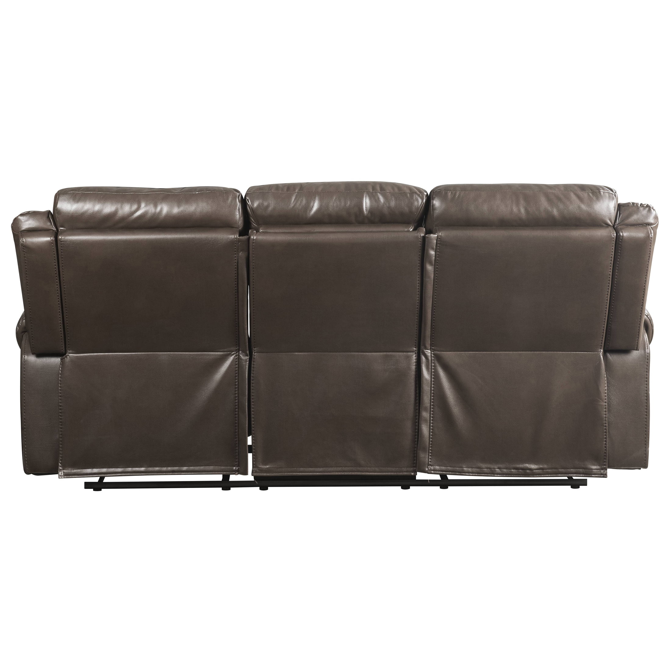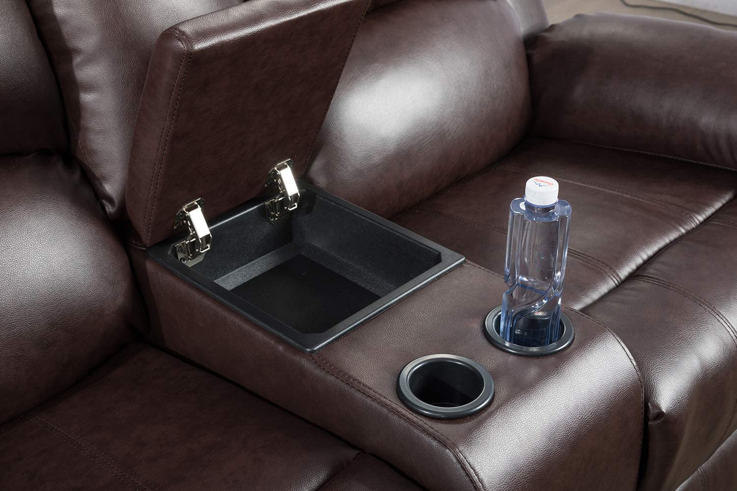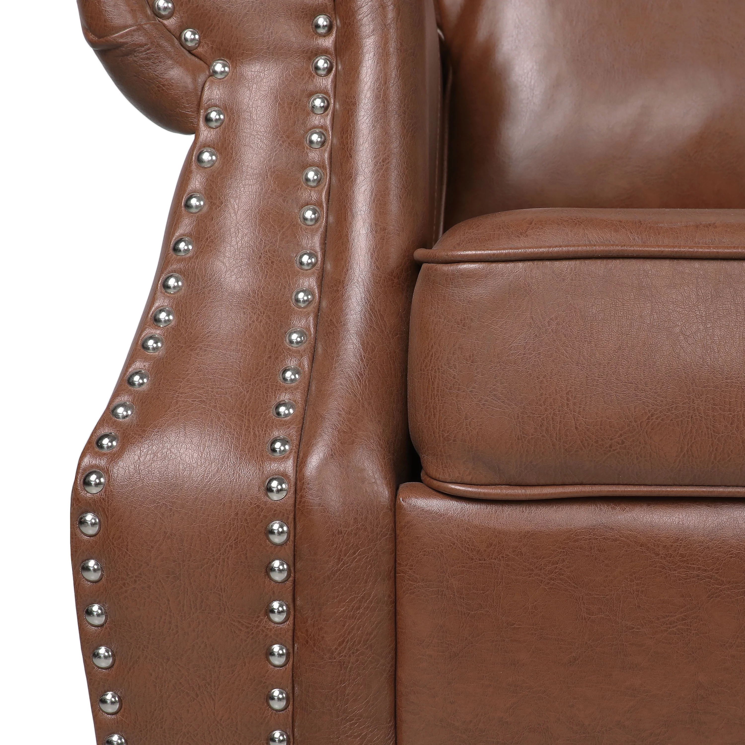 Roundhill Furniture Achern Brown Leather-Air Nailhead Manual Reclining Sofa and Loveseat with Storage Console and USB Port