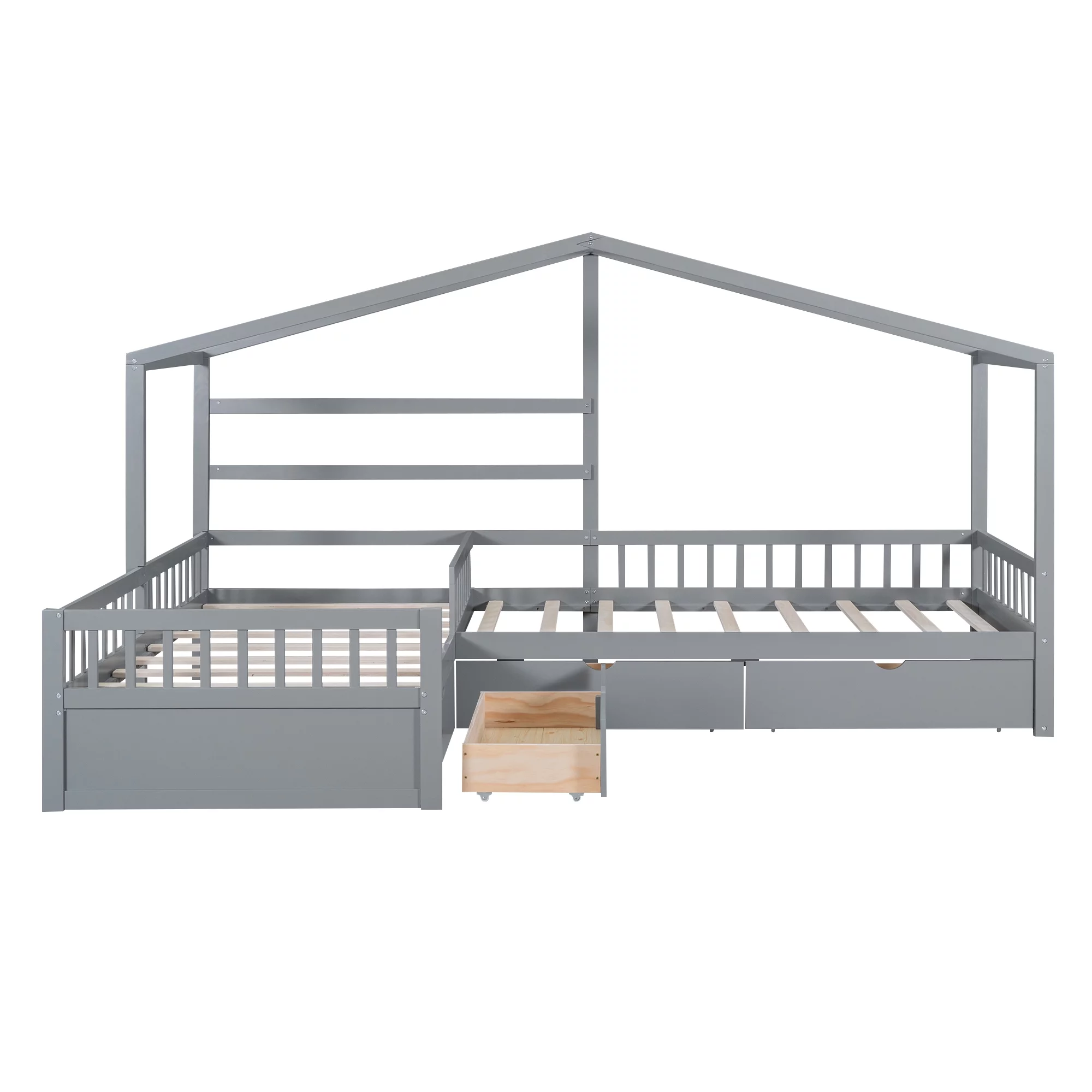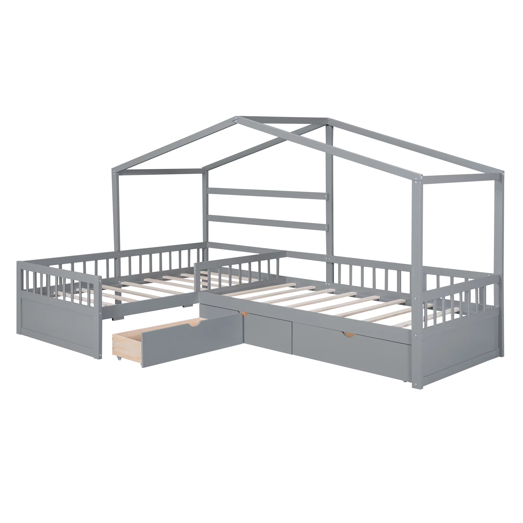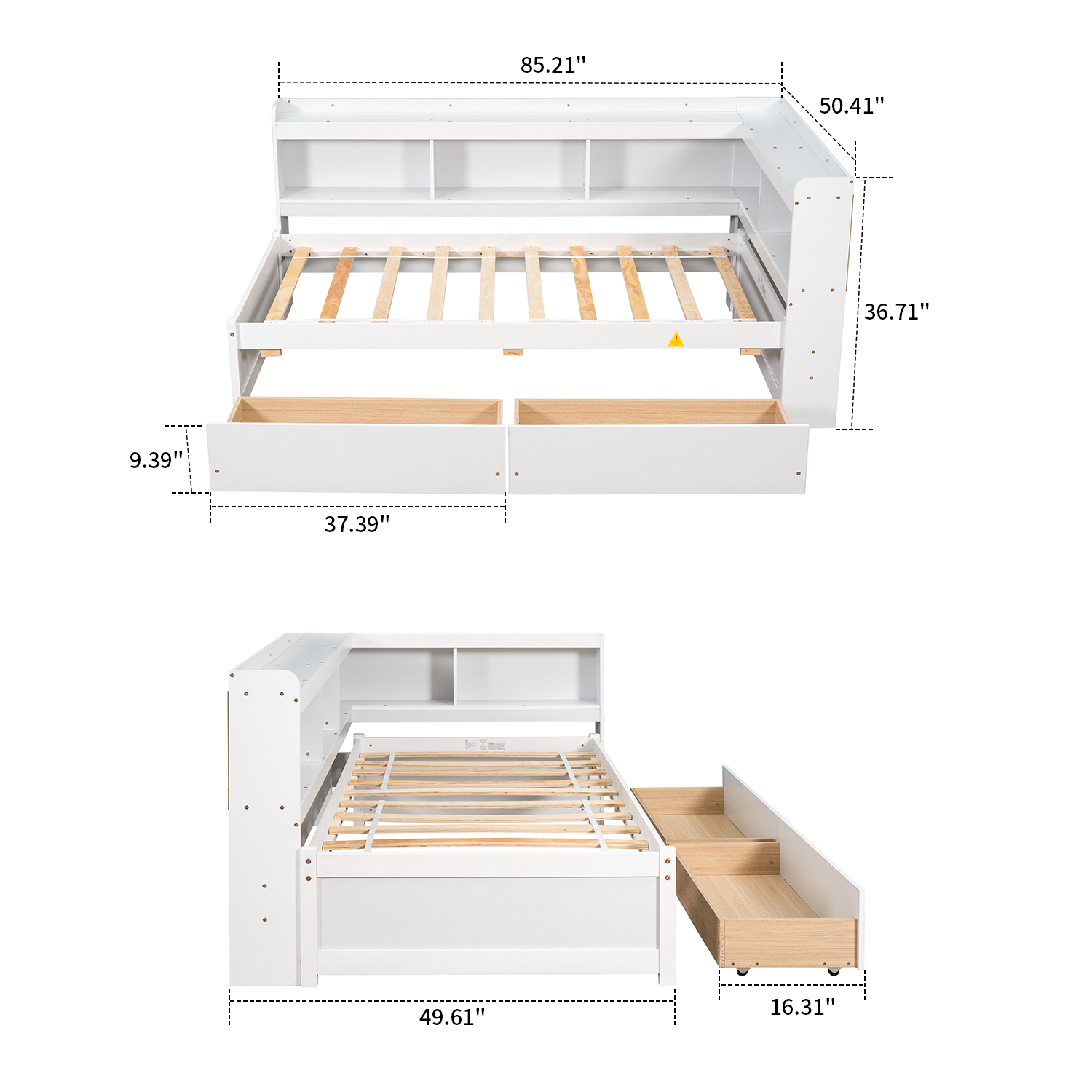 Glavbiku Twin Size Wood Platform Bed Frame with L-shaped Bookcases,Storage Drawer Bed,White