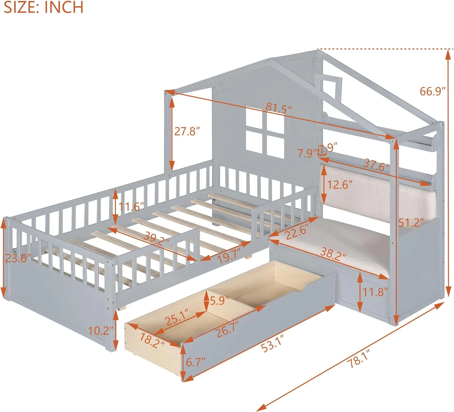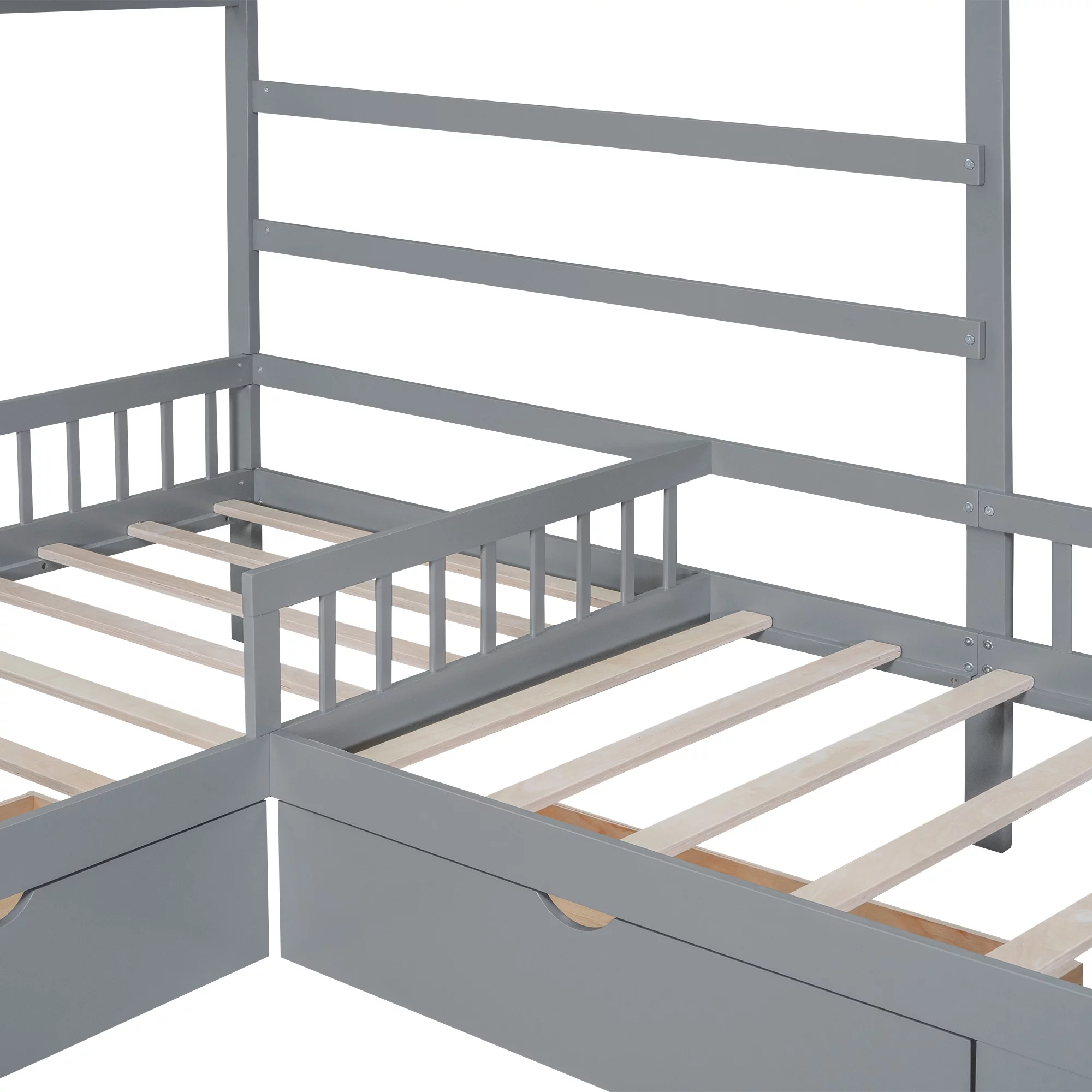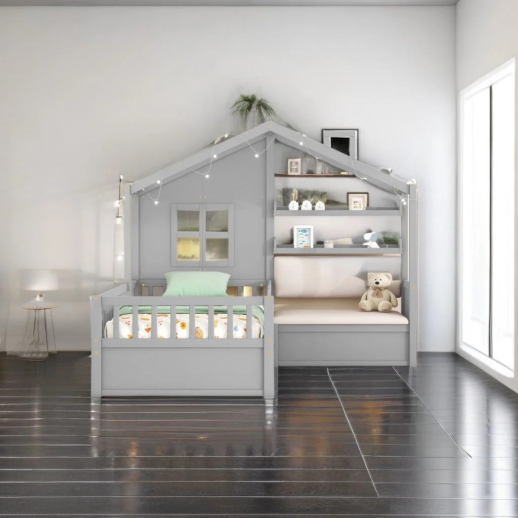 Glavbiku Twin Size Wood Platform Bed Frame with L-shaped Bookcases,Storage Drawer Bed,White
