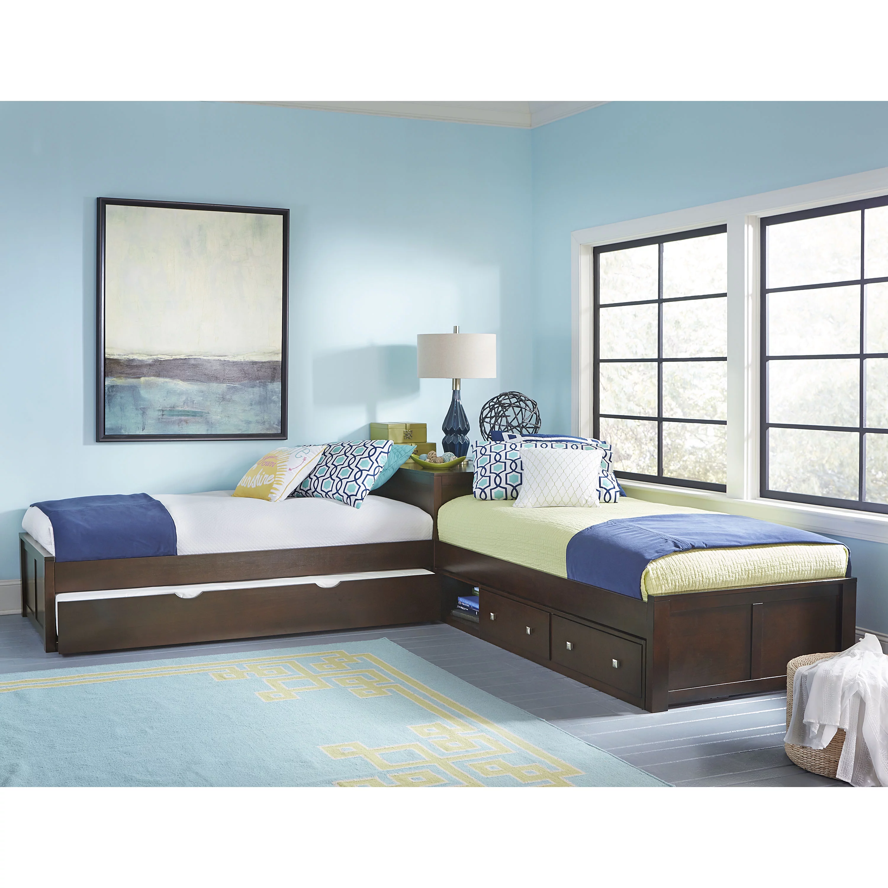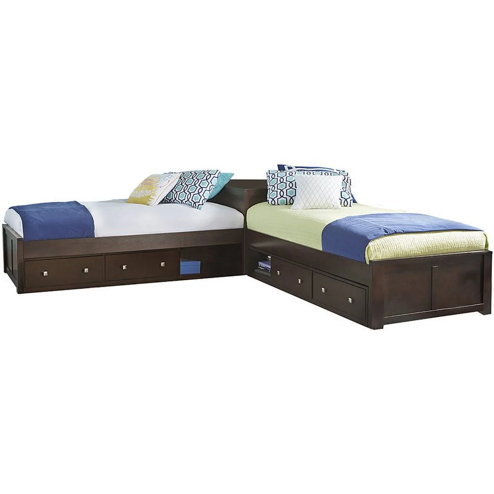 Hillsdale Pulse L-Shaped Twin Bed with Storage and Trundle, Chocolate