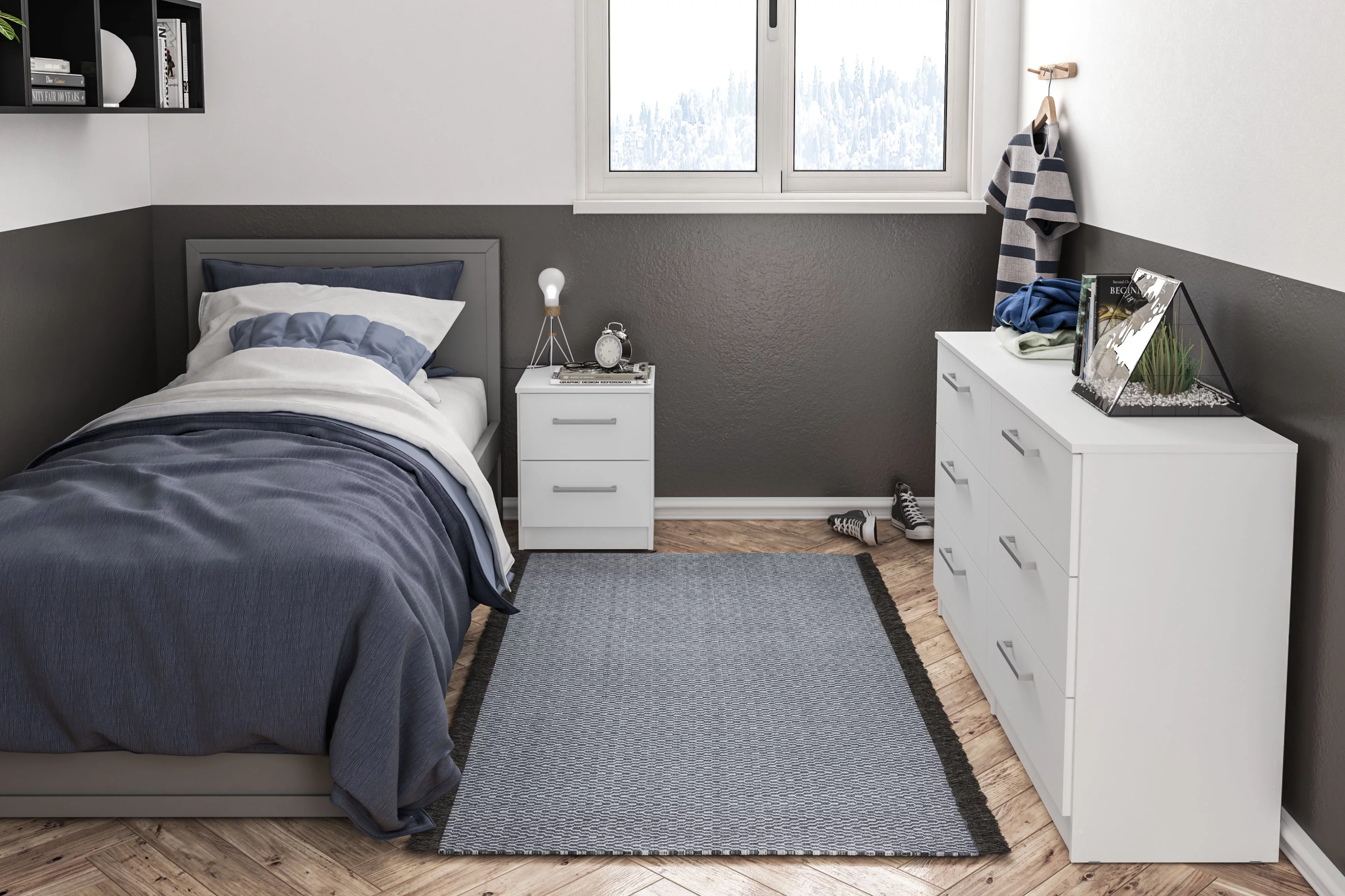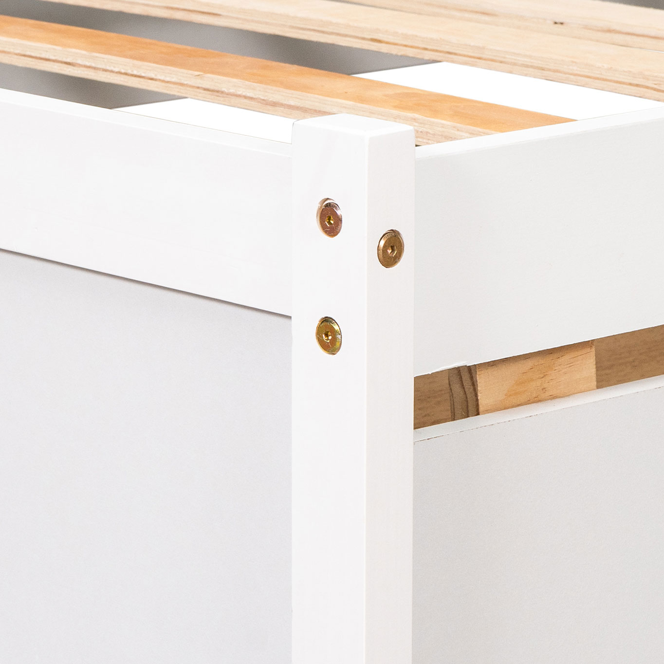 Modern Style Twin Size Bed with 2 Drawers and L-shaped Bookcases, White