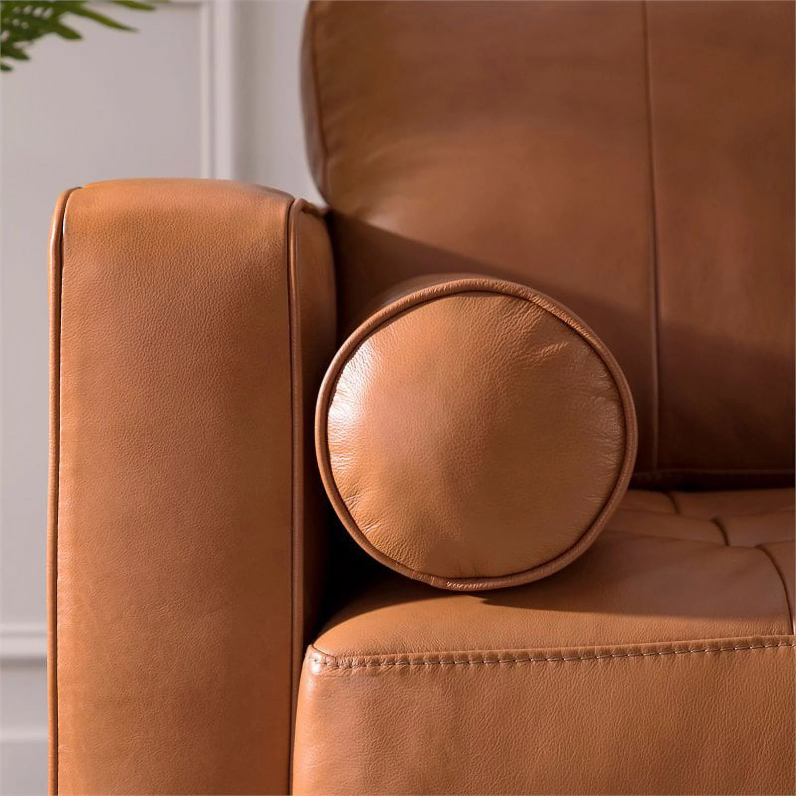 Hello Sofa Home Pimlico 86" Contemporary Top Grain Leather Sofa in Brown