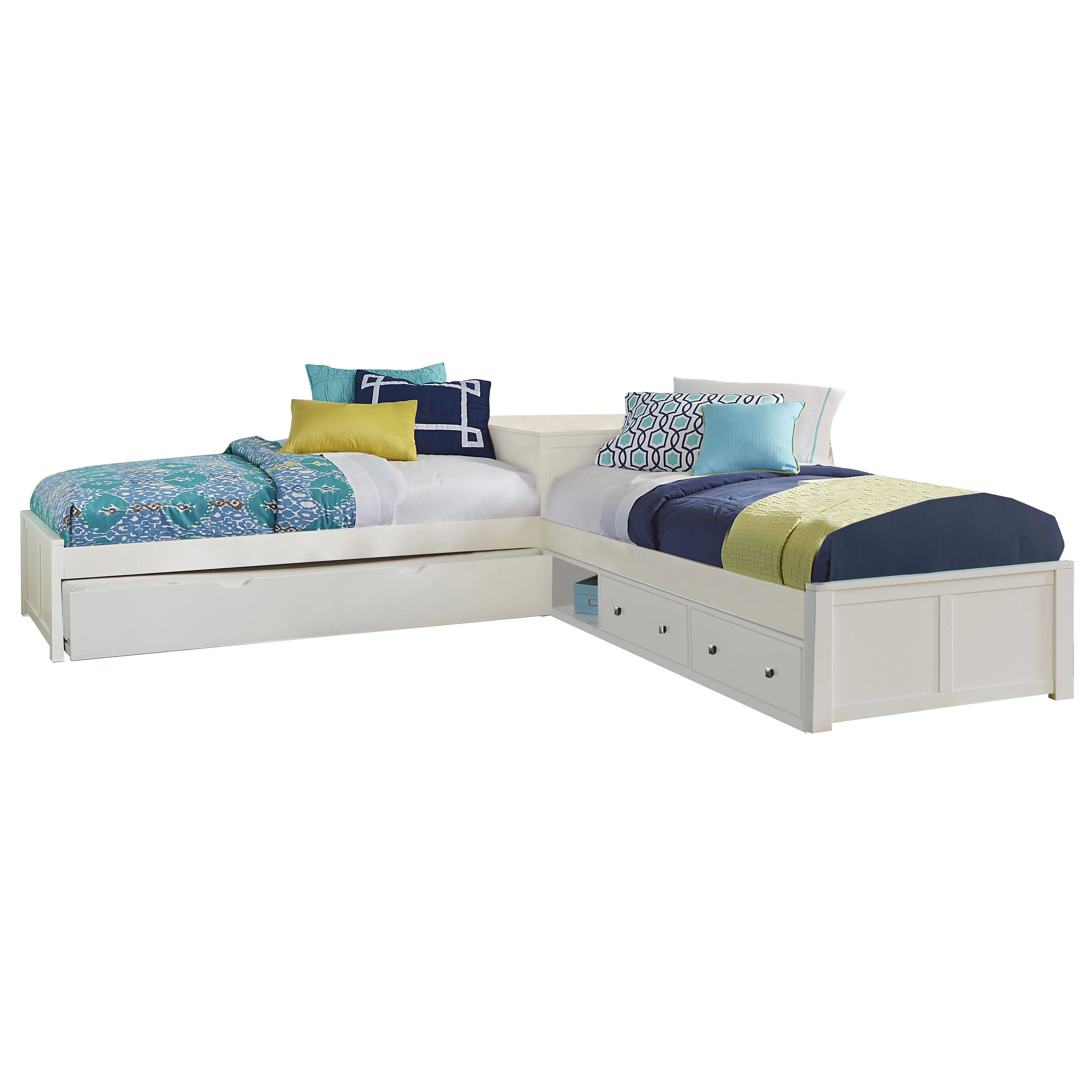 Hillsdale Furniture Pulse L-Shaped Twin Bed with Storage and Trundle, White