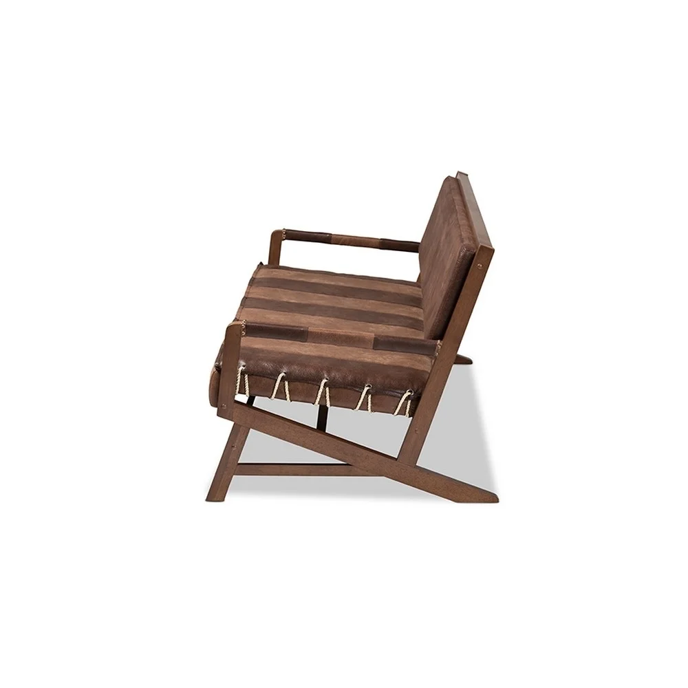 Baxton Studio Rovelyn Rustic Brown Faux Leather Upholstered Walnut Finished Wood Sofa