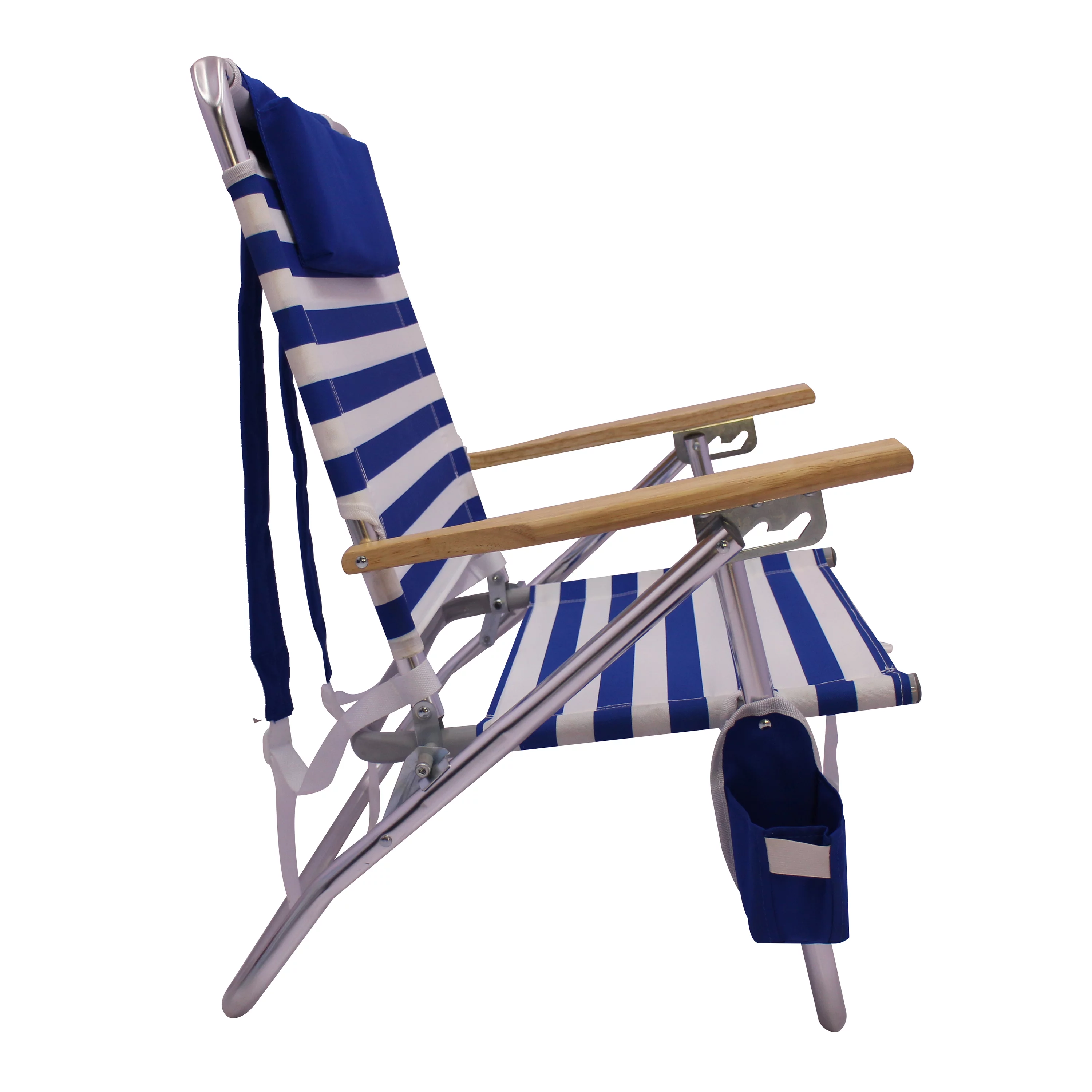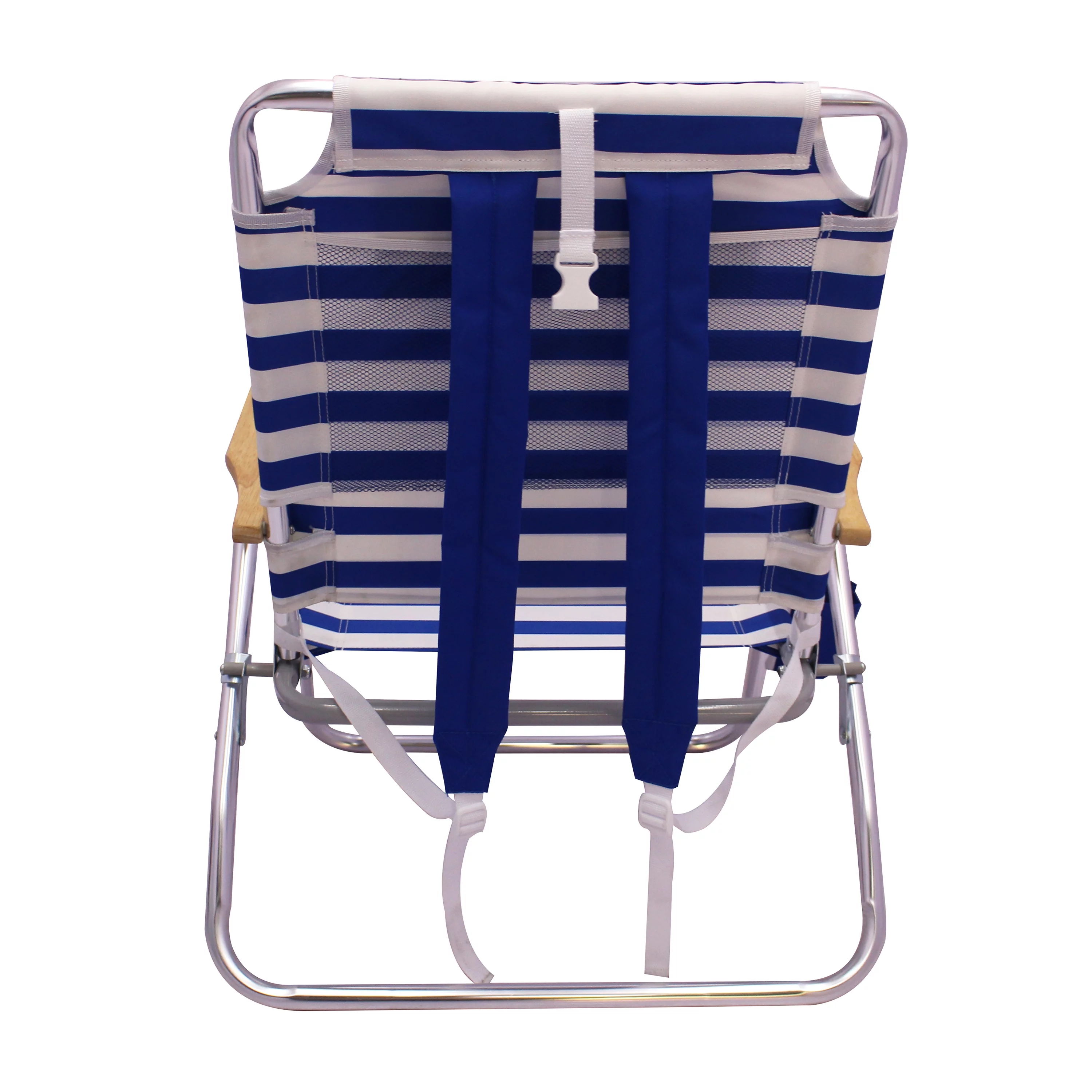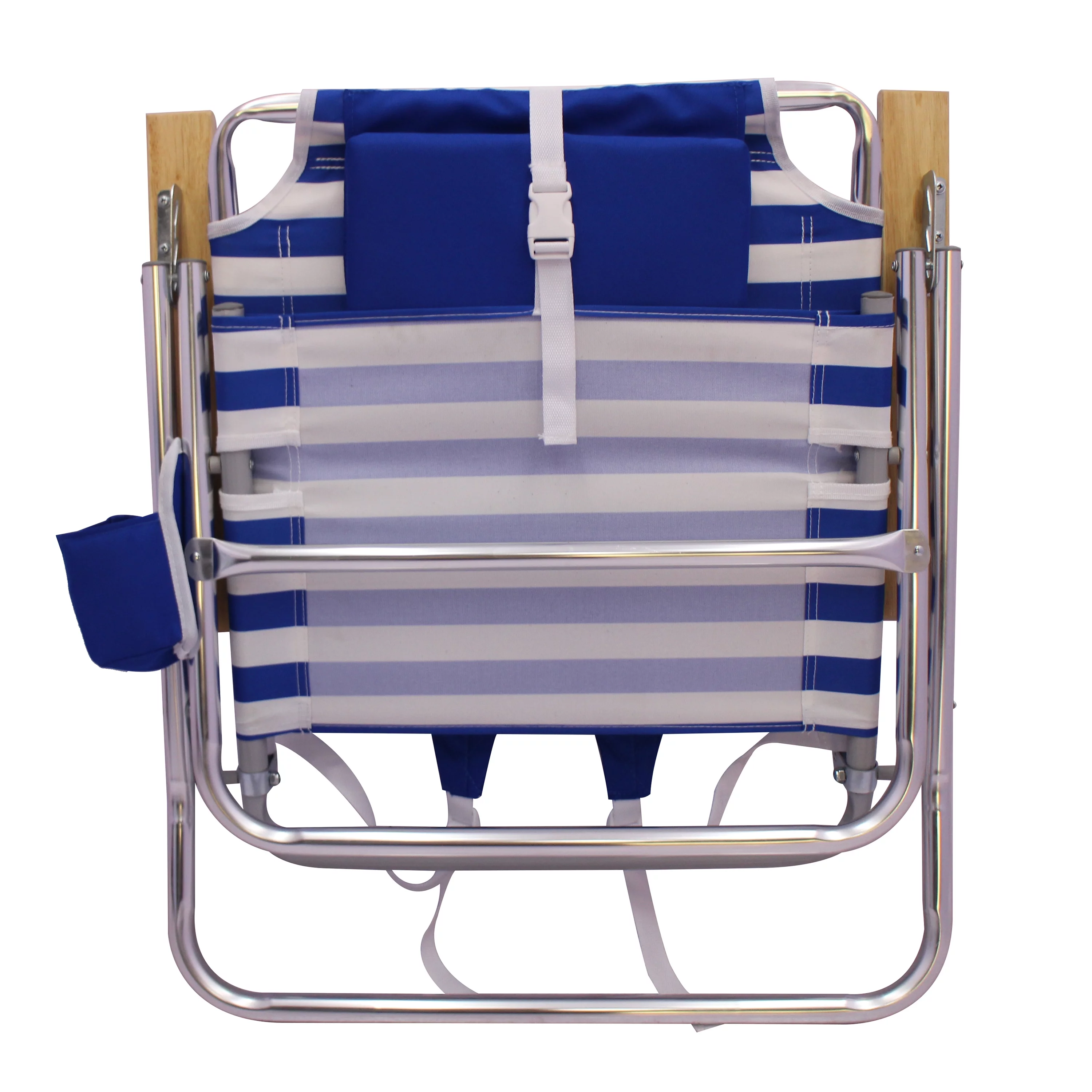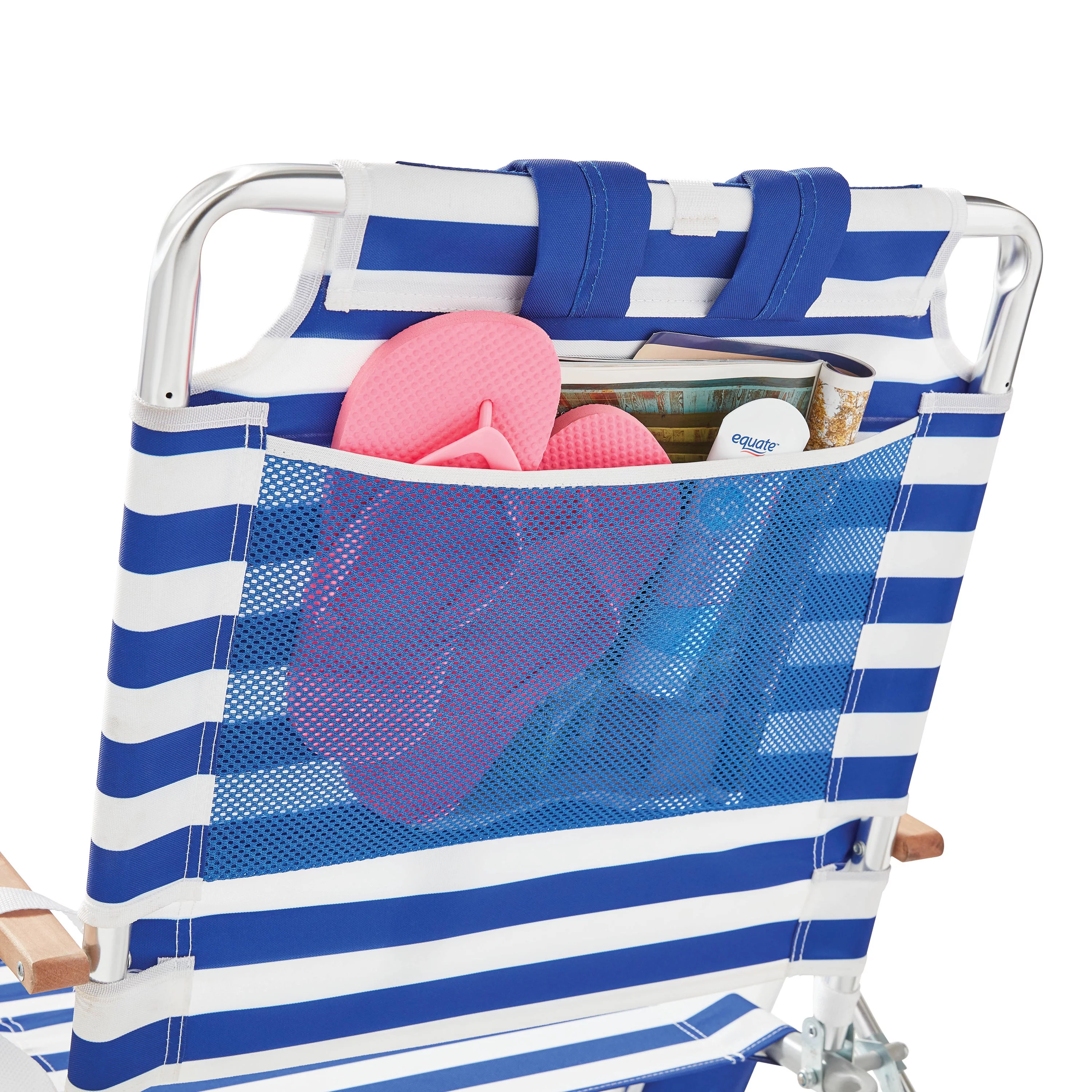 2-Pack Mainstays Wood Arm Reclining Comfort Height Backpack Beach Chair Cabana Stripe