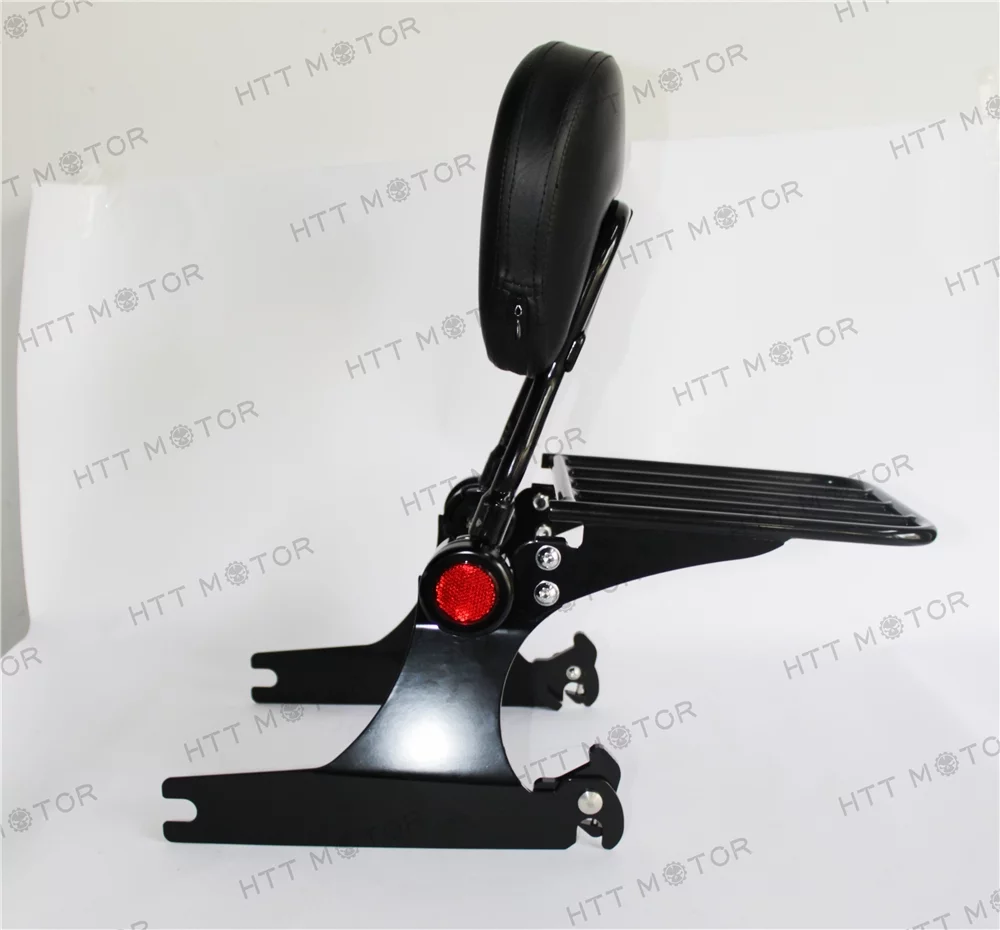 HTTMT Skull Adjustable Backrest Sissy Bar w/ Luggage rack For Harley Dyna 02-05 Black