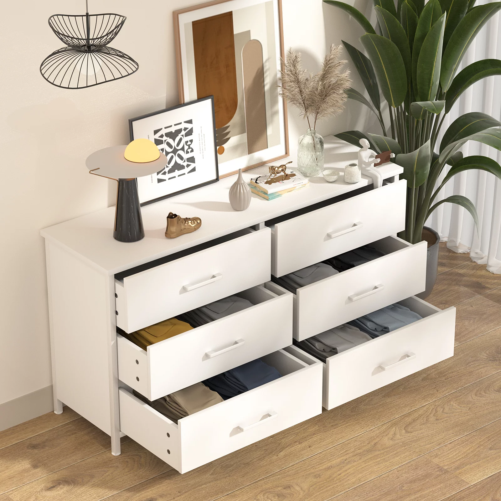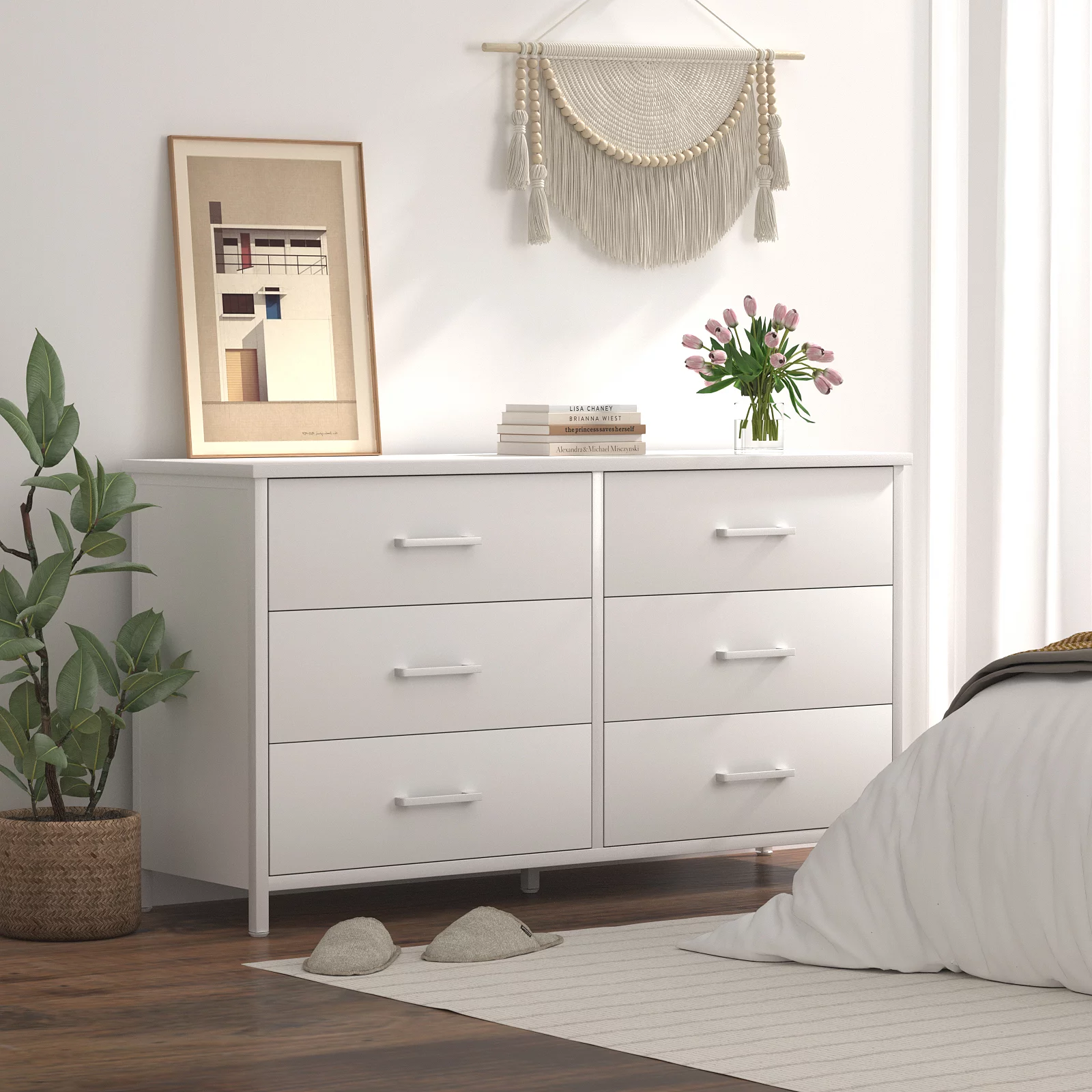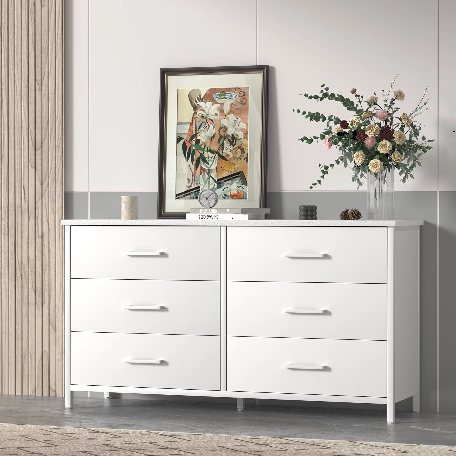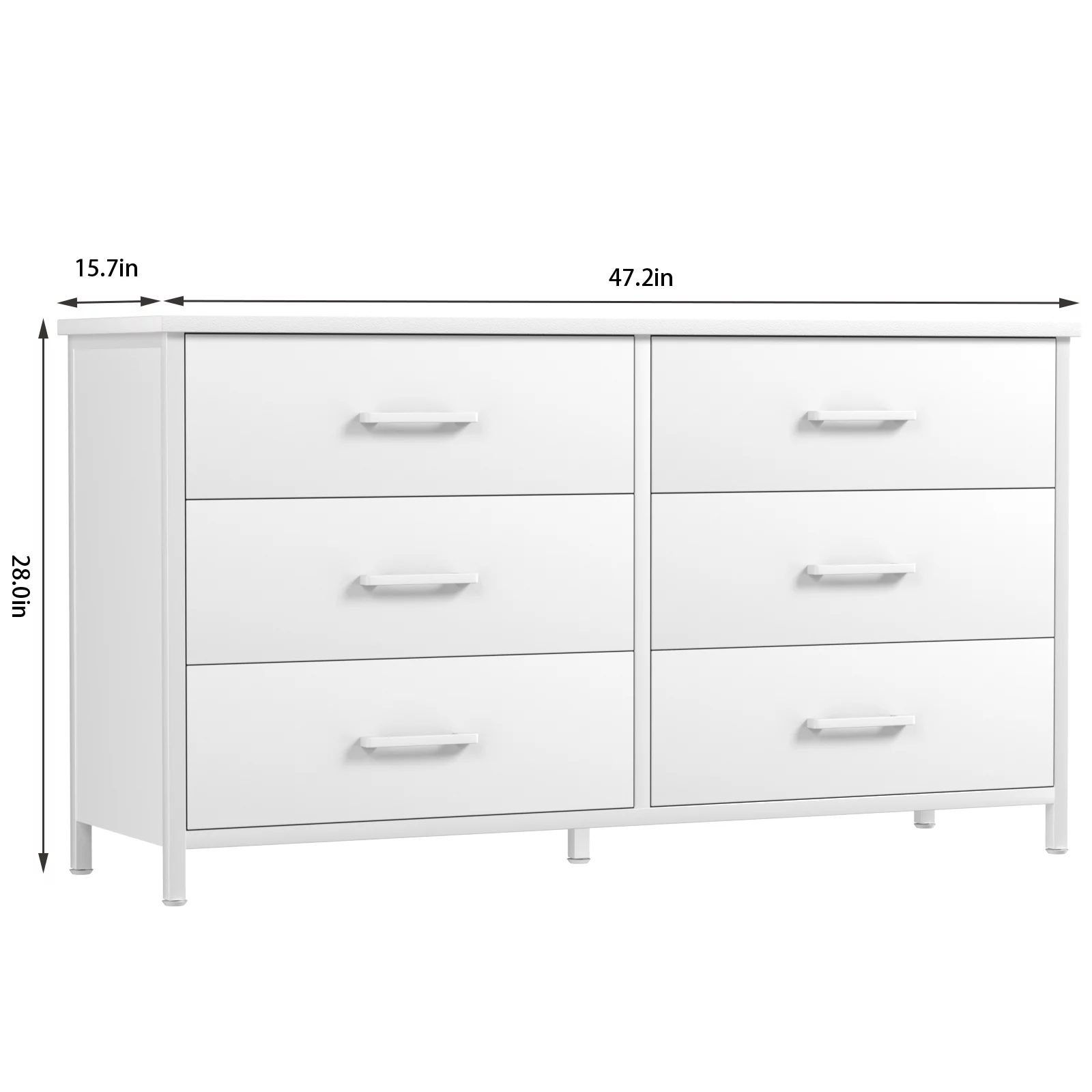 IKENO 6 Drawer White Dresser, Industrial Wood Dresser for Bedroom, Sturdy Steel Frame