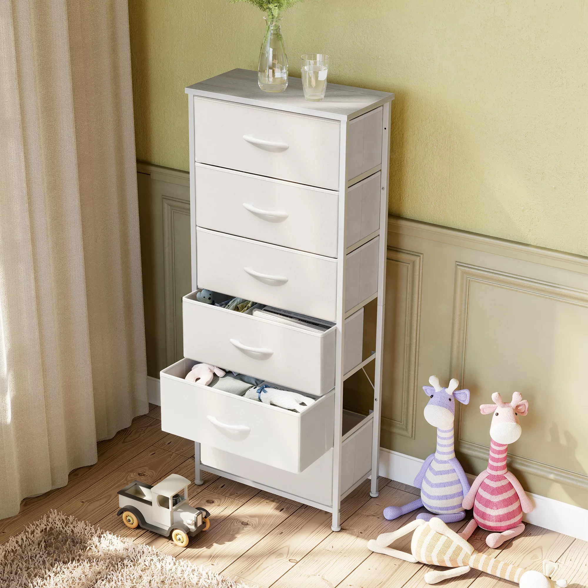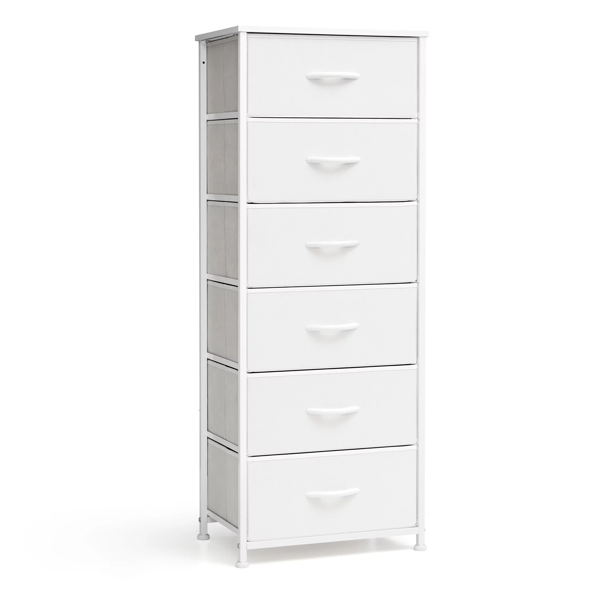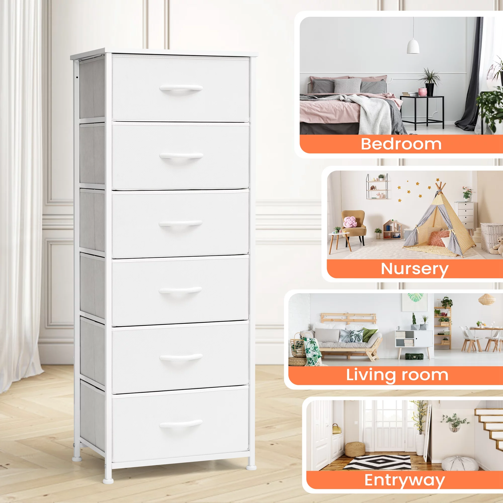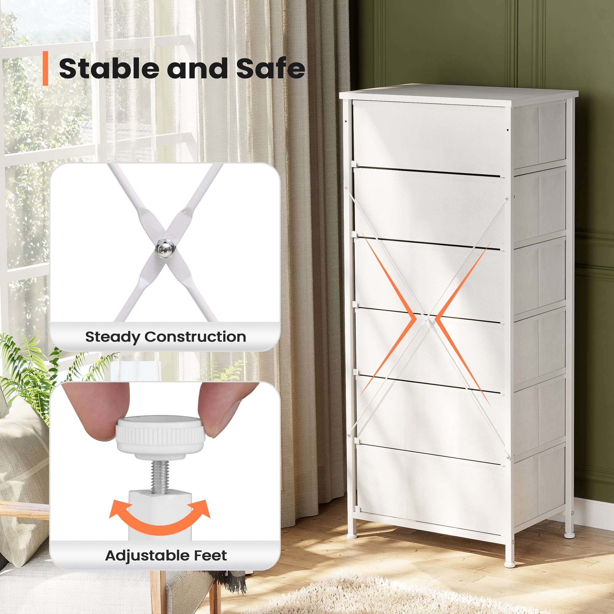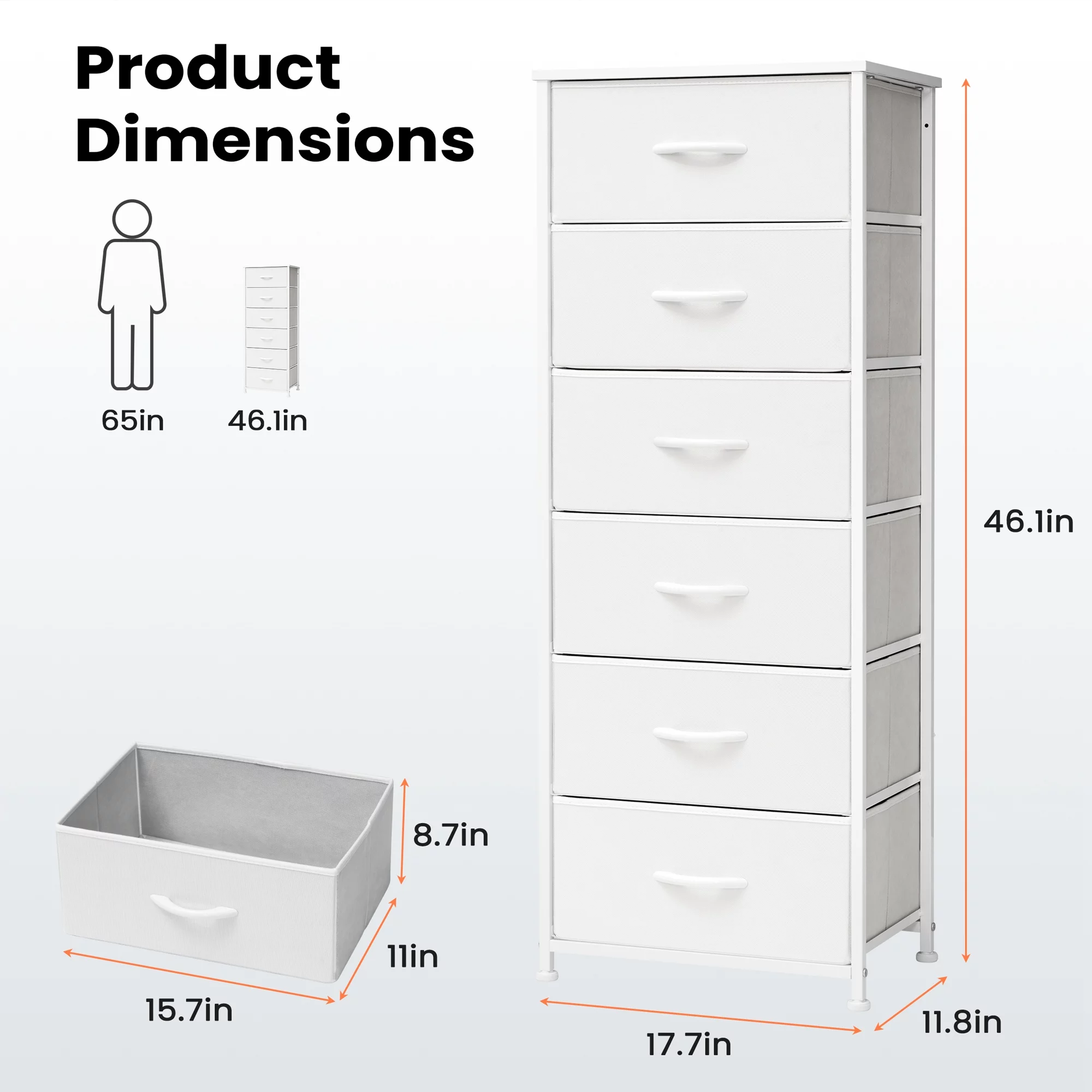 IKENO 6 Drawer White Dresser, Industrial Wood Dresser for Bedroom, Sturdy Steel Frame