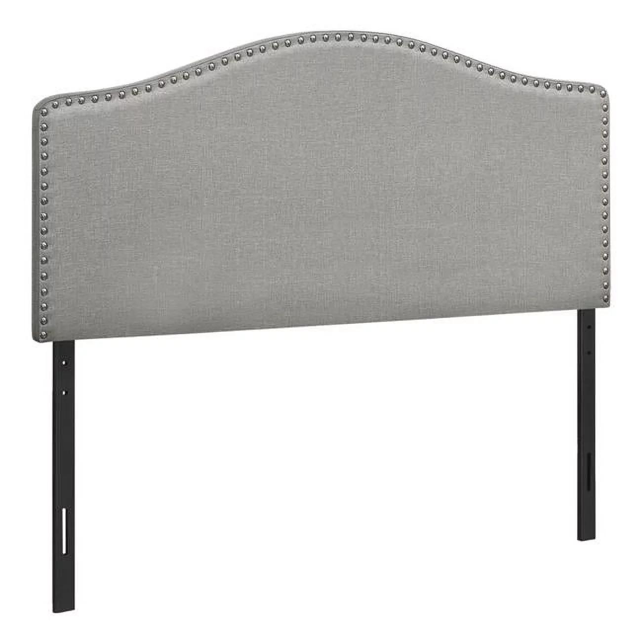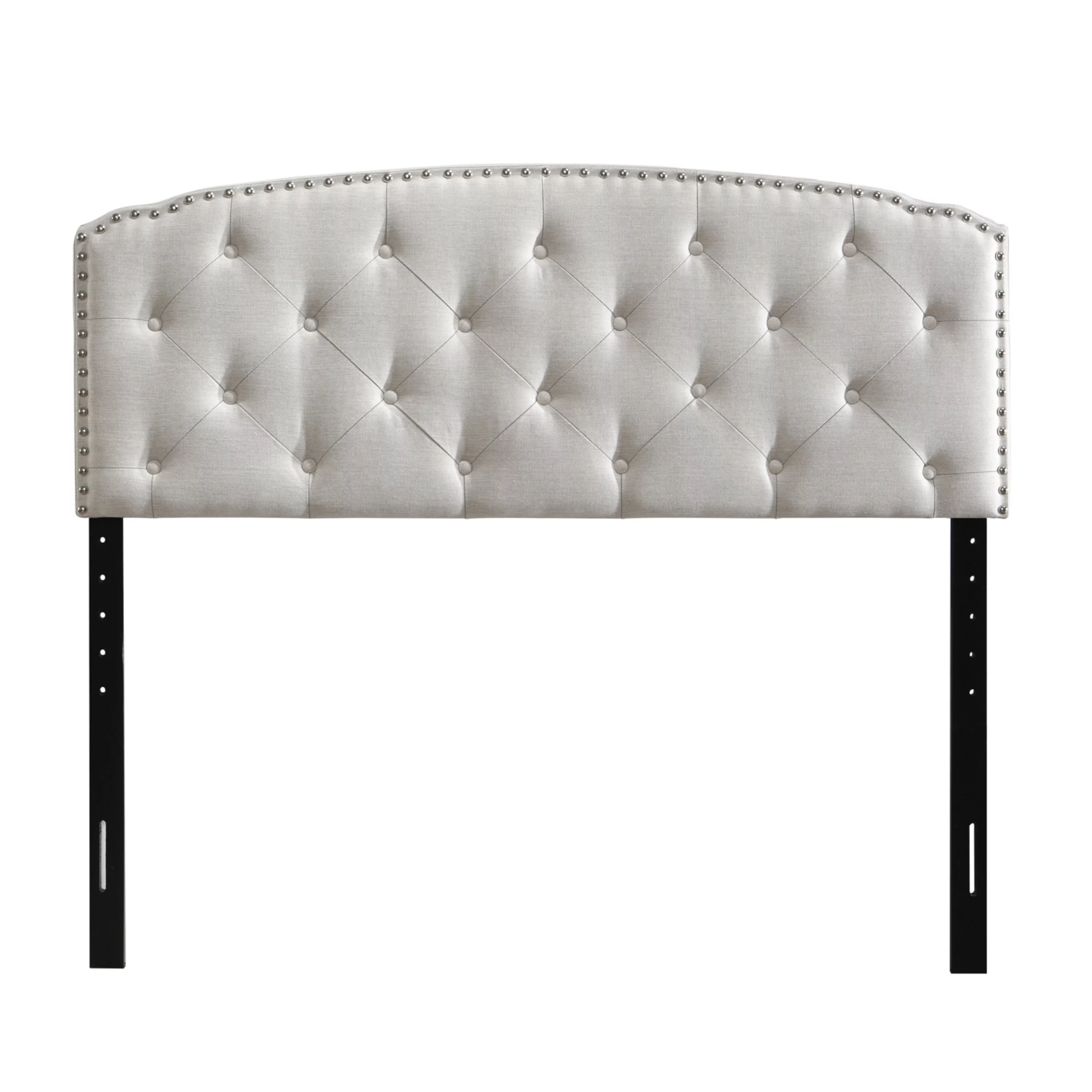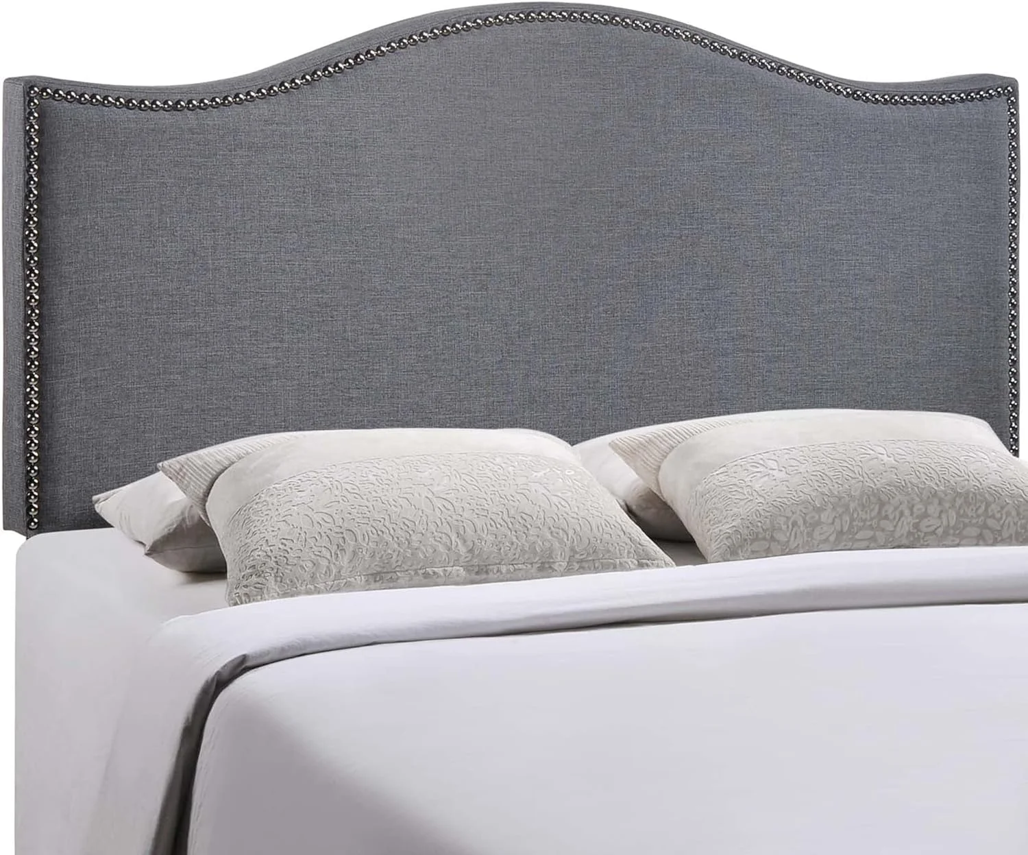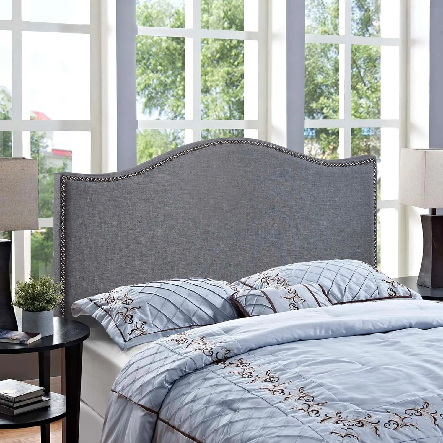 Linen Fabric Upholstered Queen Headboard With Nailhead Trim And Curved Shape In
