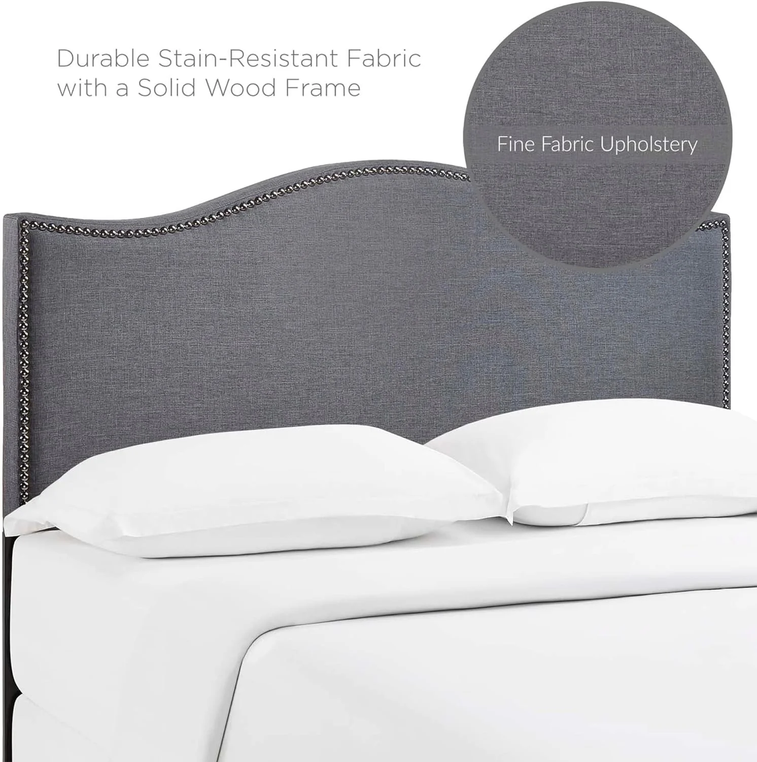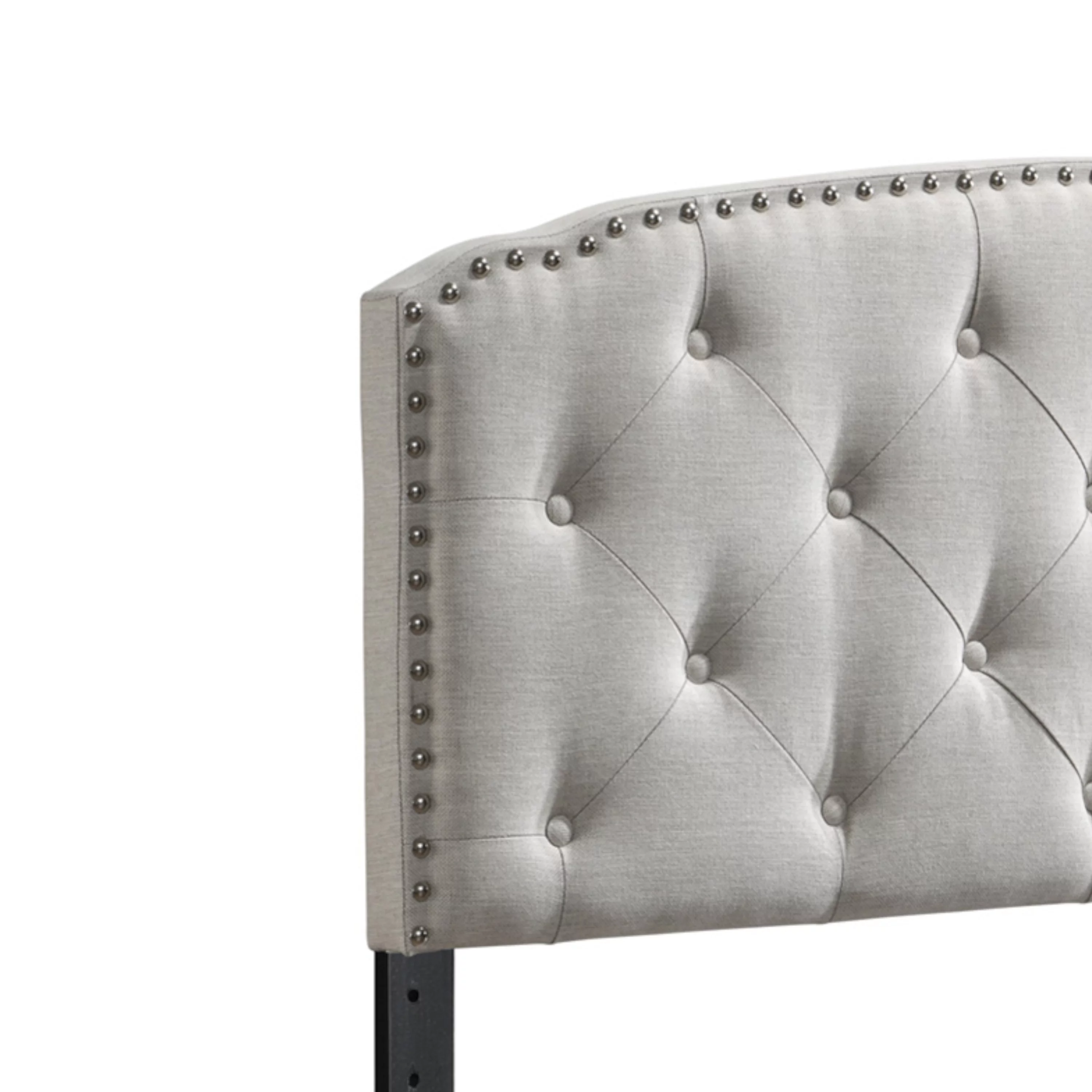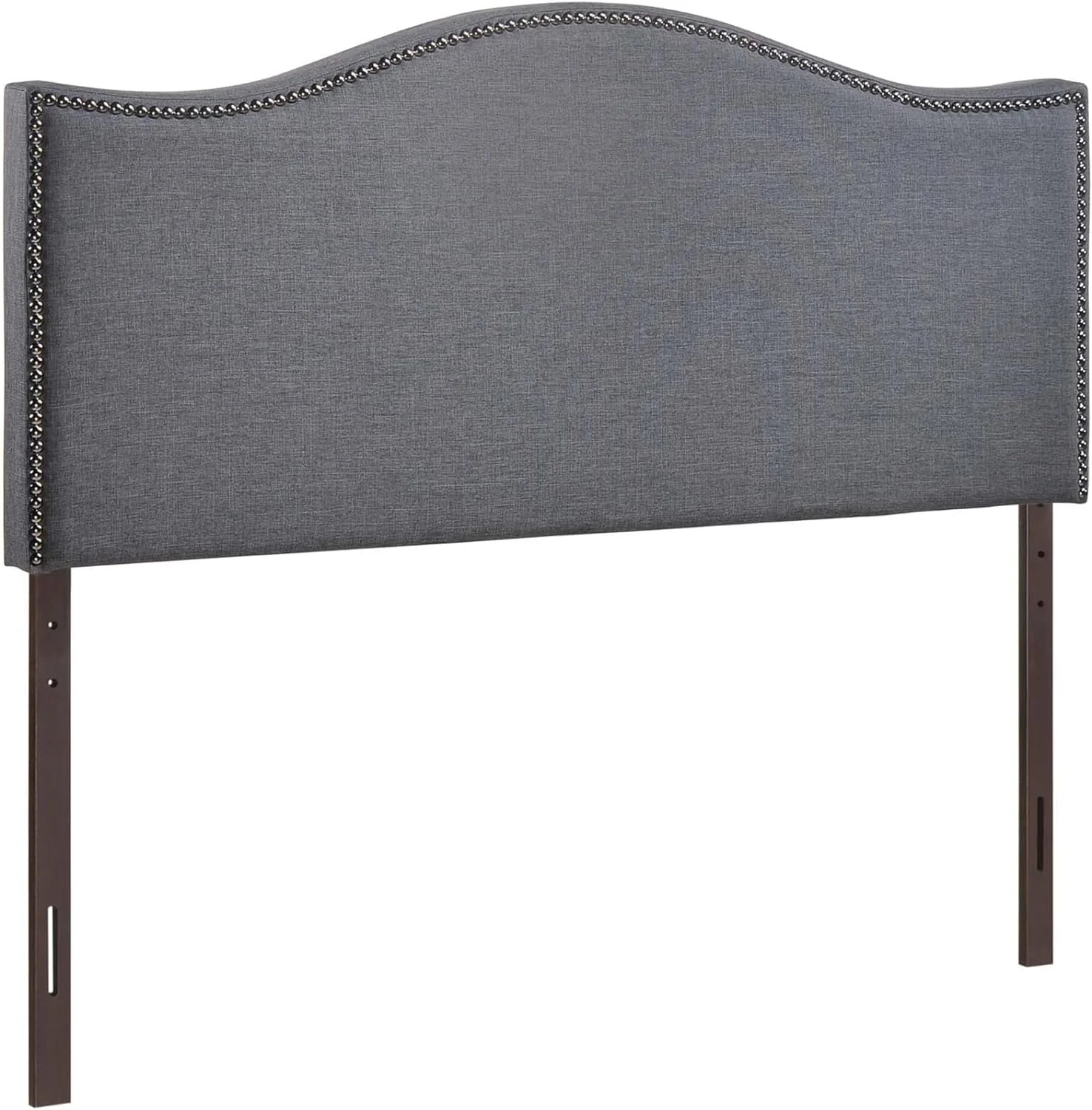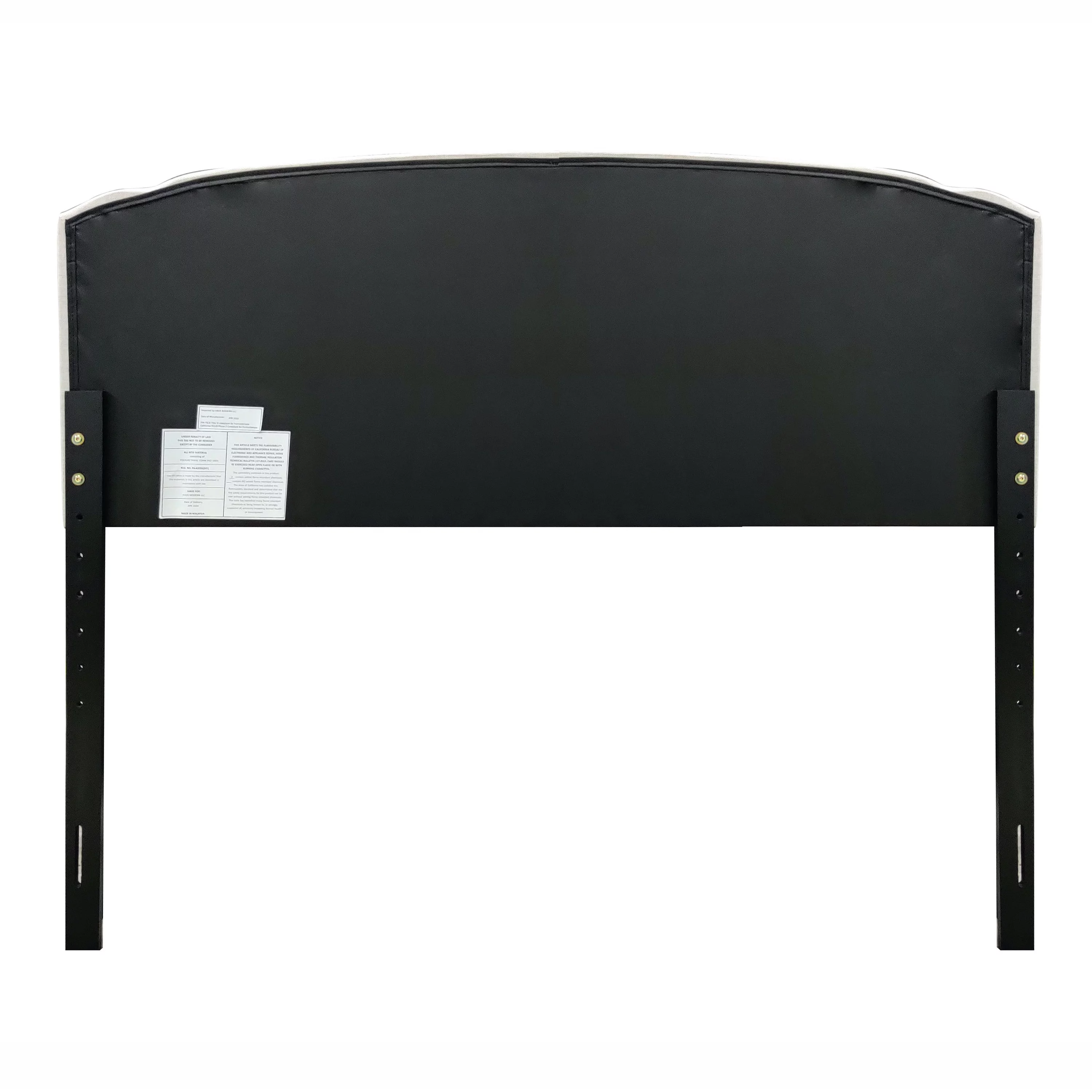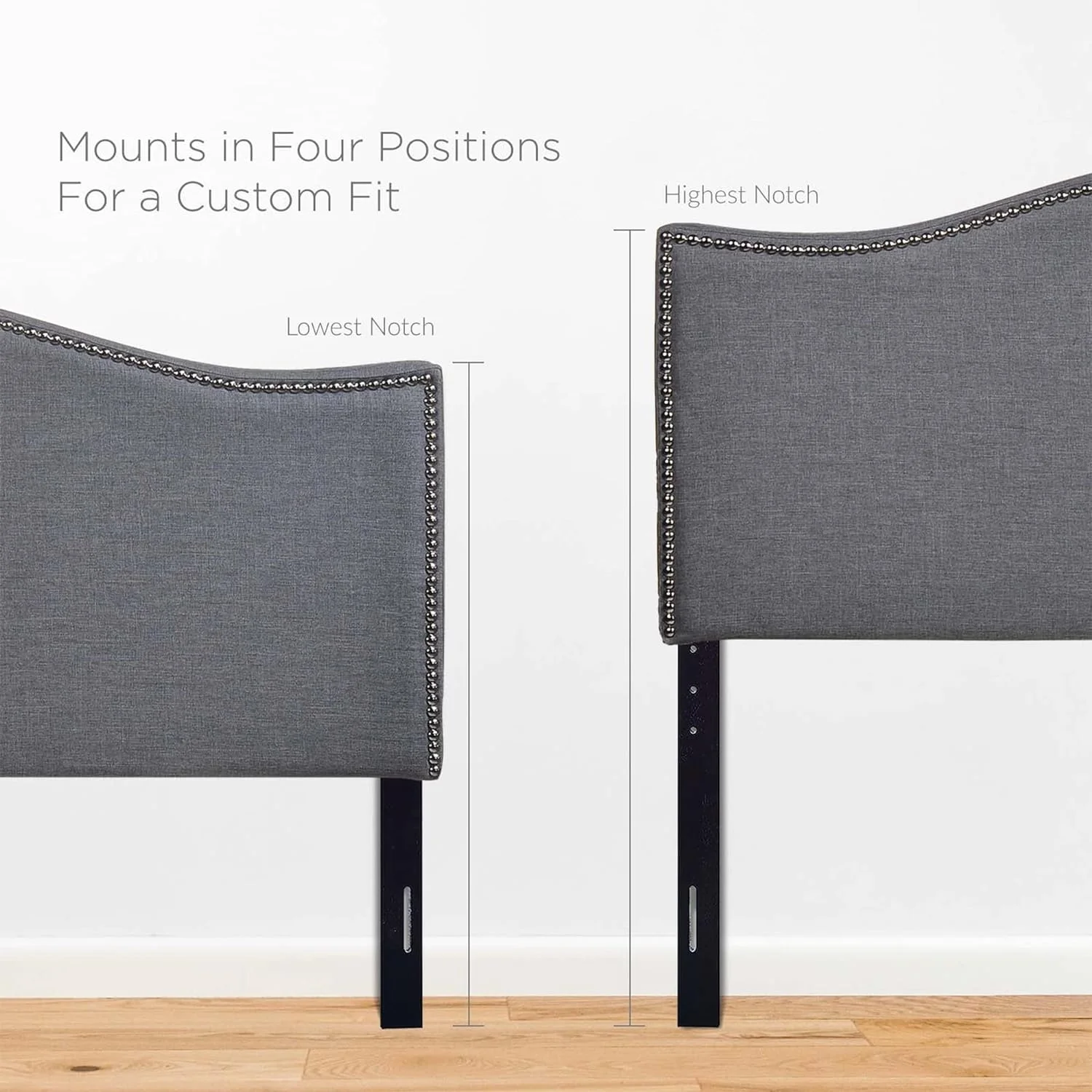 Linen Fabric Upholstered Queen Headboard With Nailhead Trim And Curved Shape In