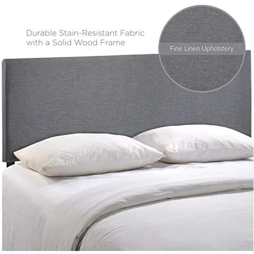 Sovereign Tufted Button Linen Fabric Upholstered Queen Headboard In Gray