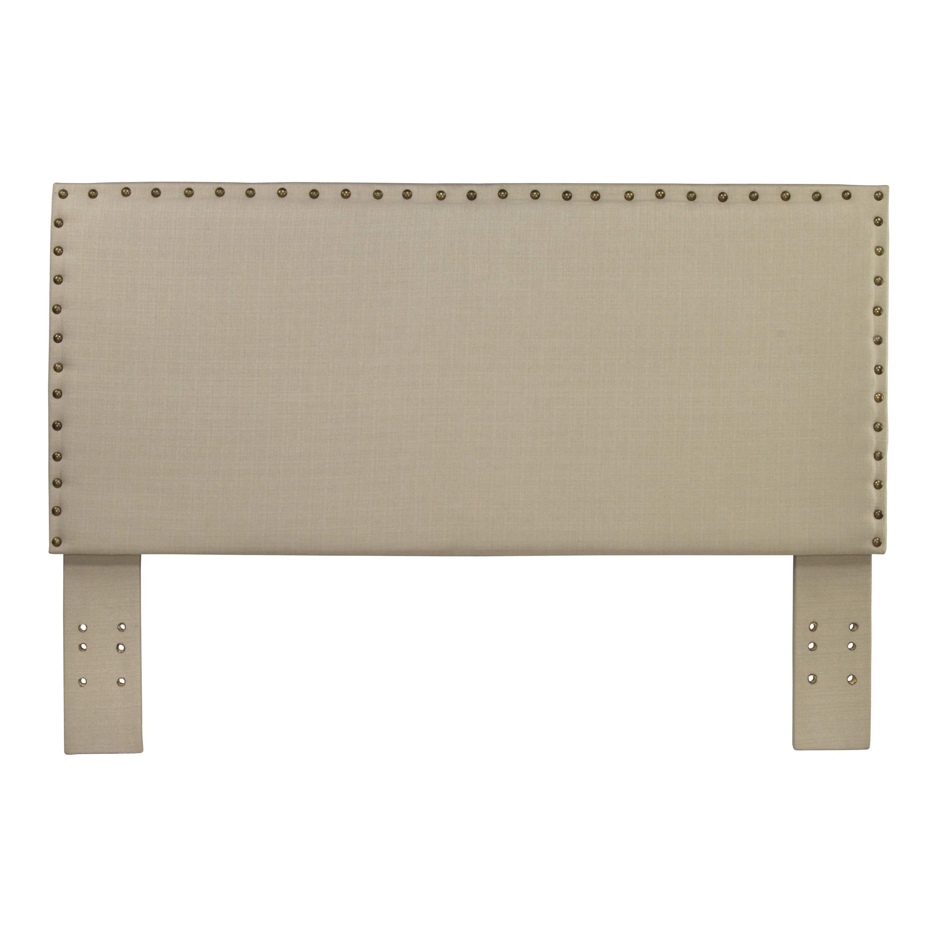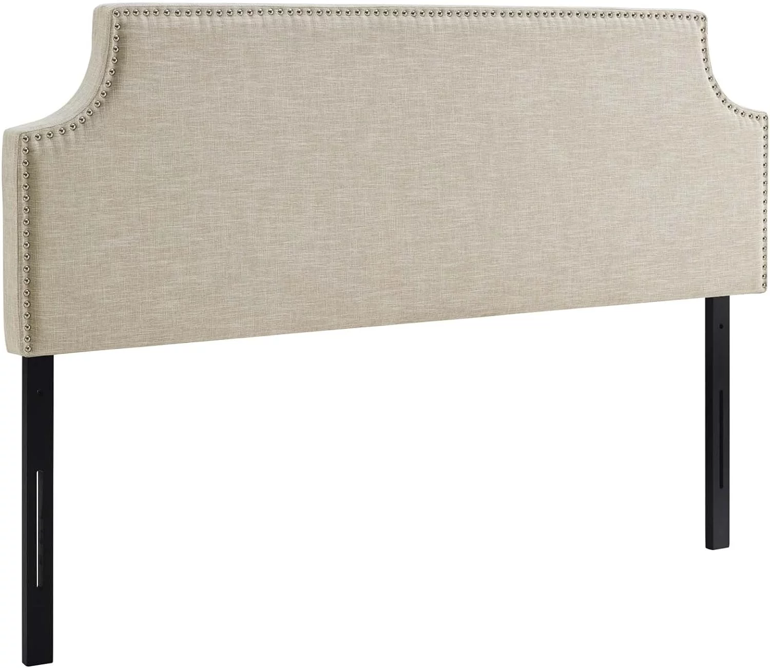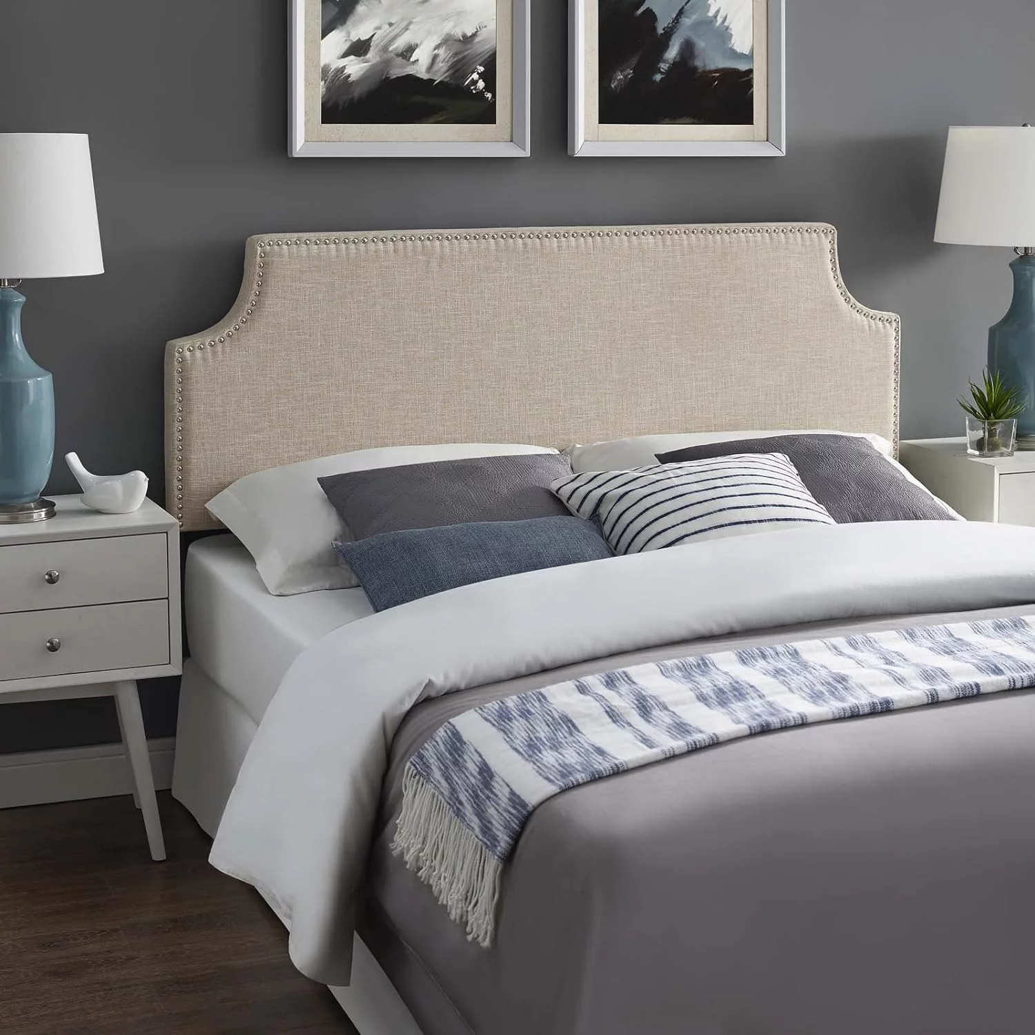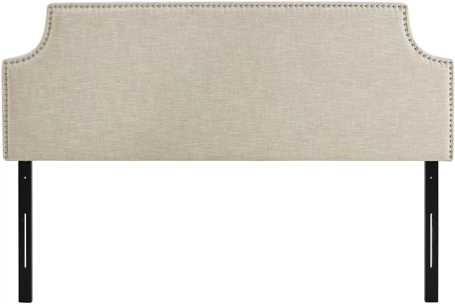 Linen Fabric Upholstered Queen Size Headboard With Nailhead Trim In Beige
