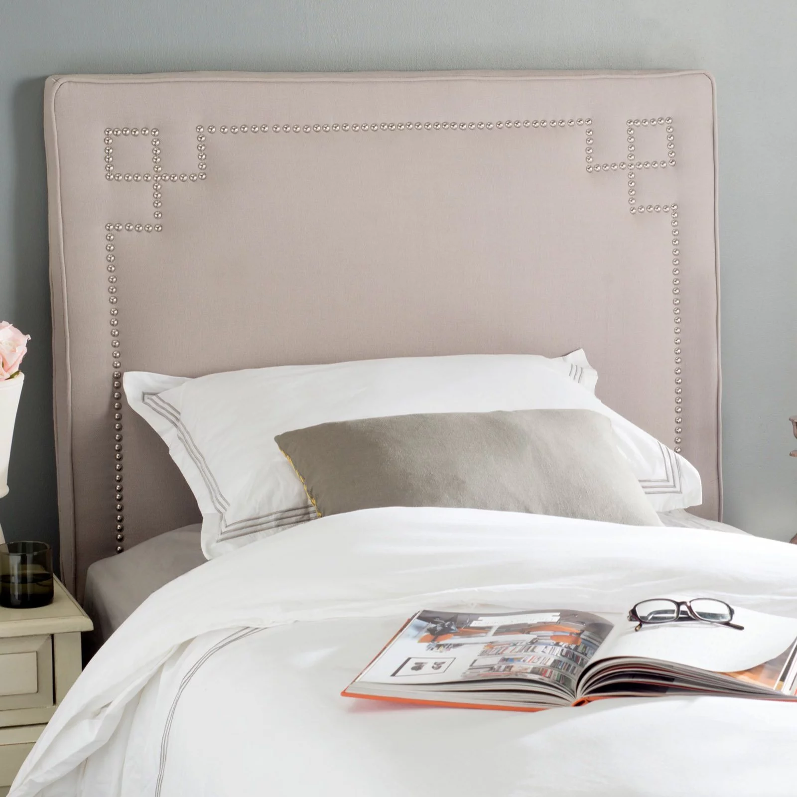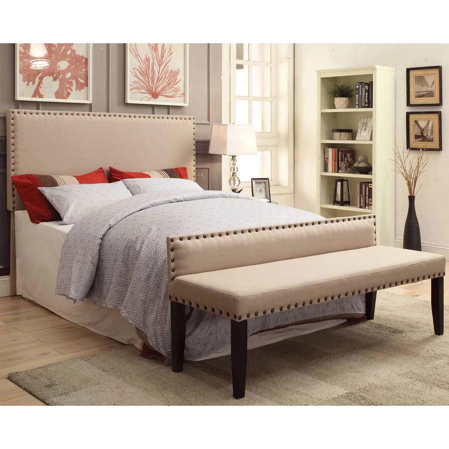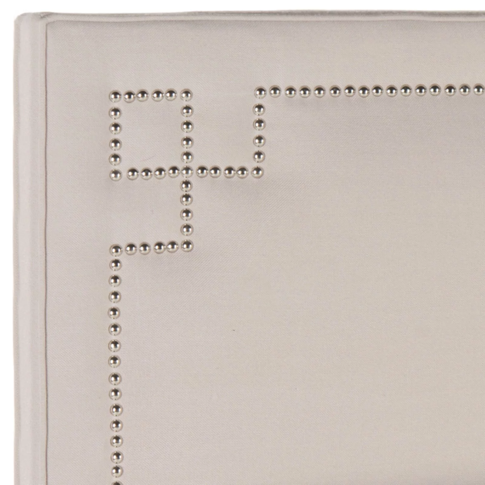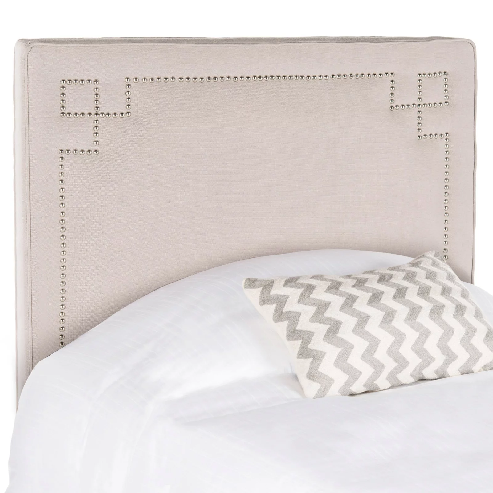 Linen Fabric Upholstered Queen Size Headboard With Nailhead Trim In Beige