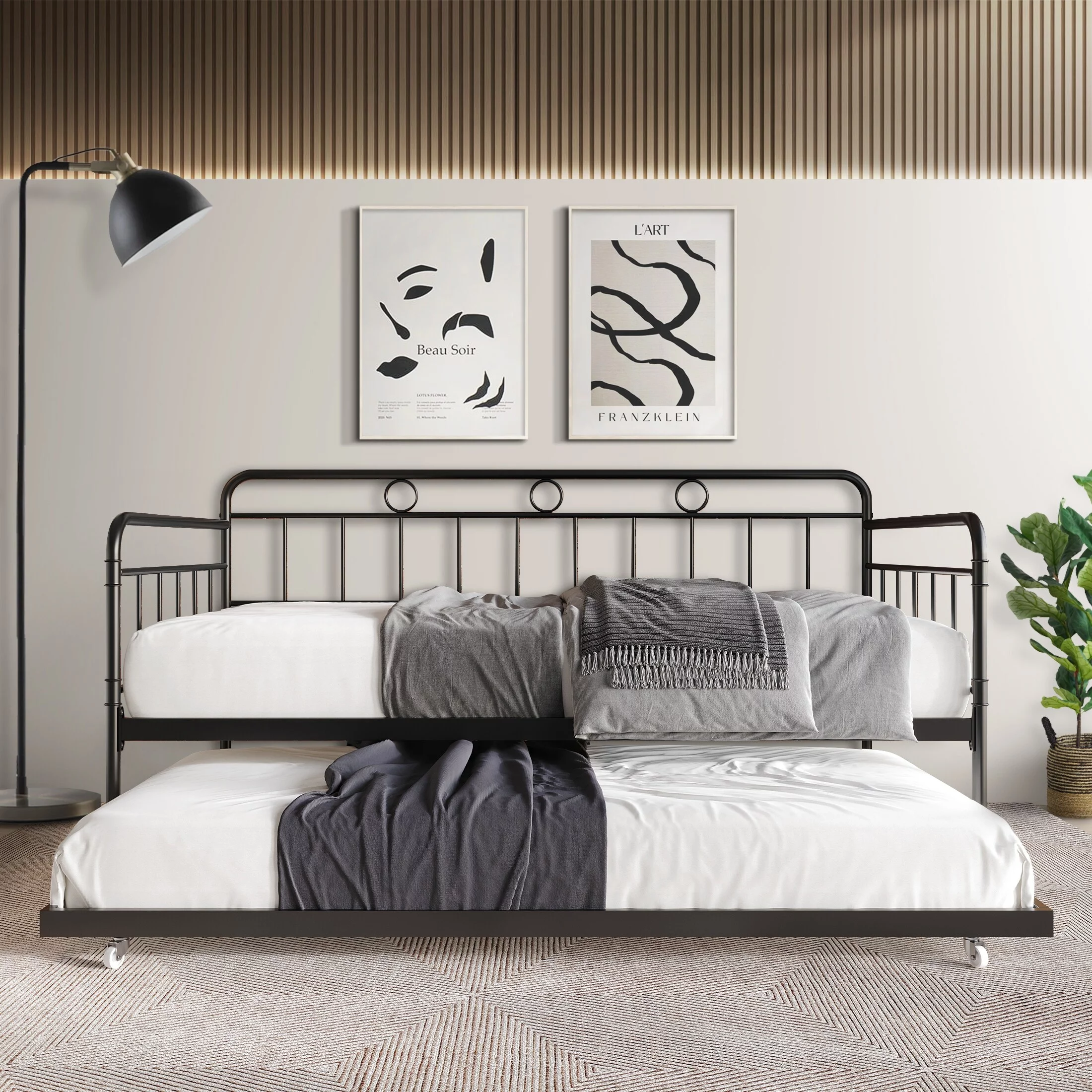 CraftPorch Minimalist Curved Edge Metal Twin Daybed with Trundle Brown