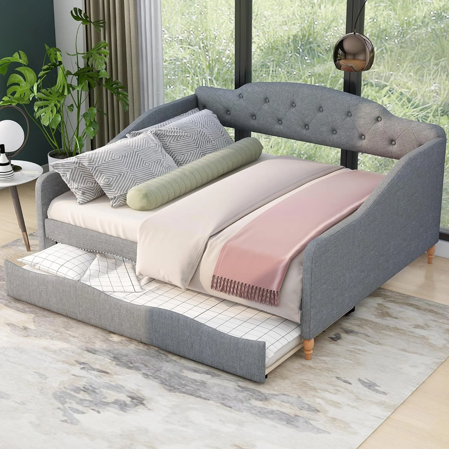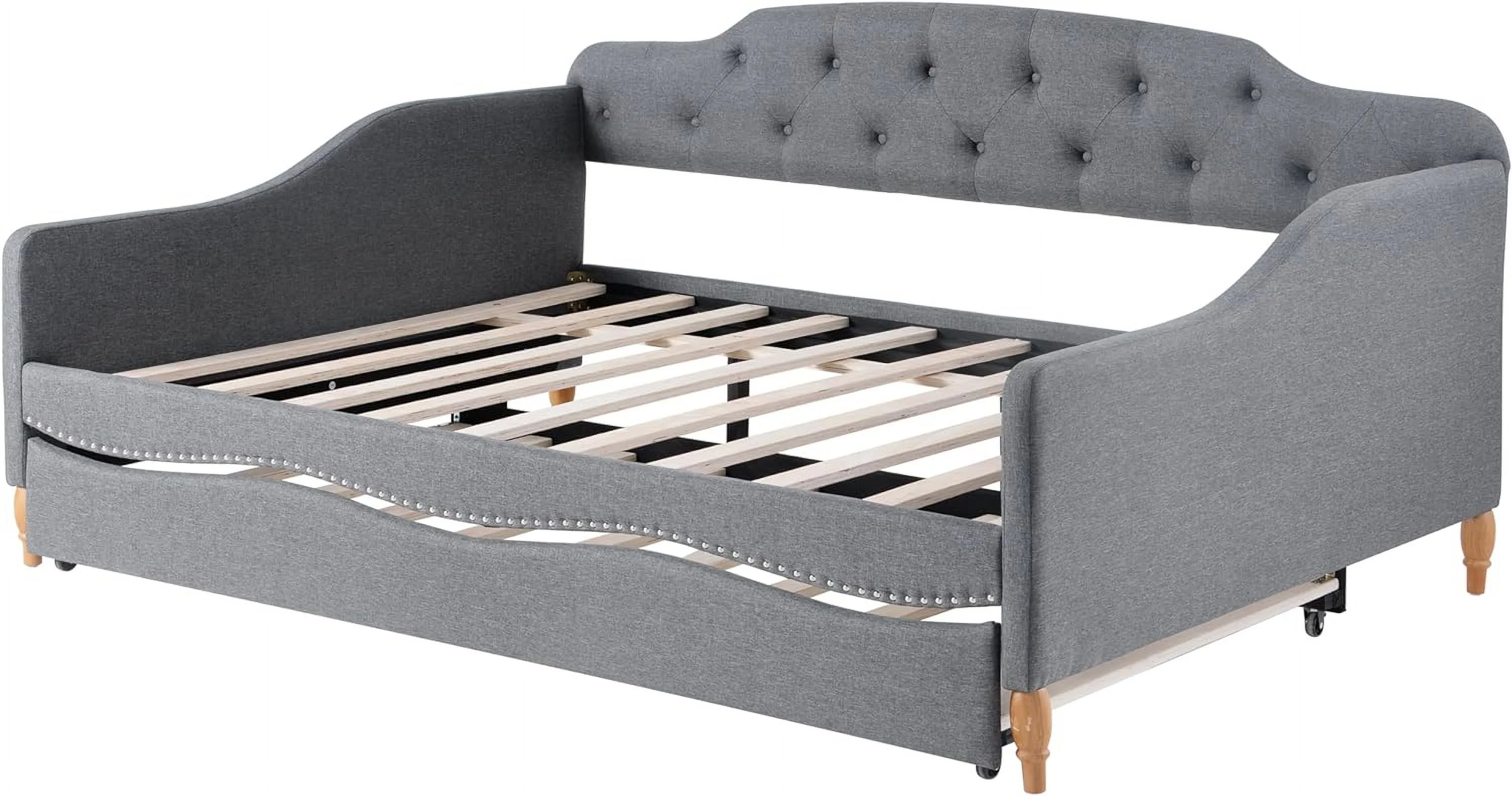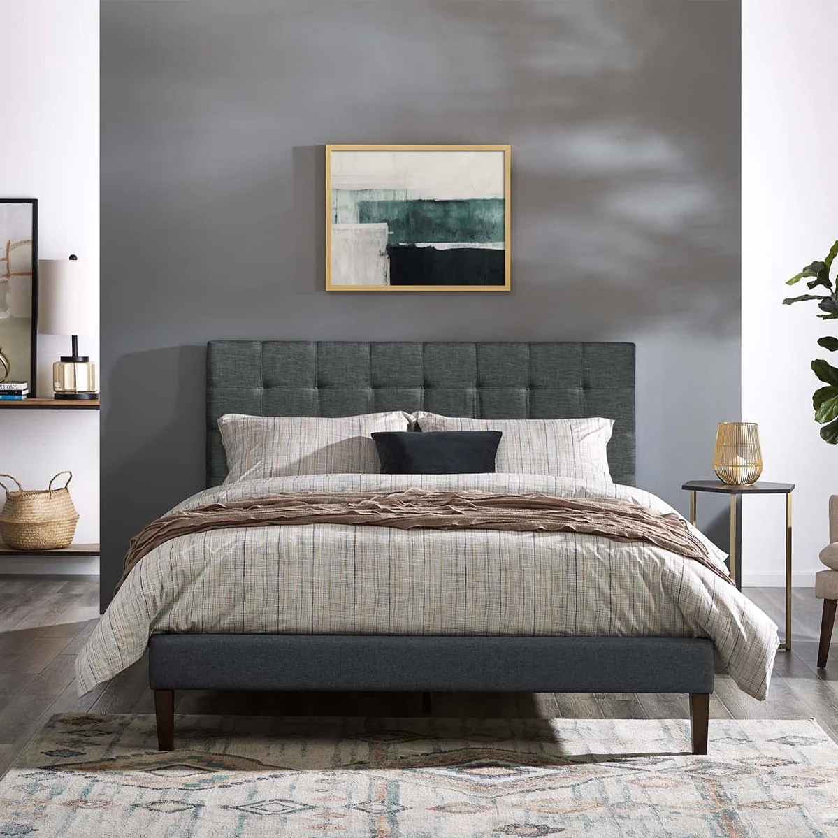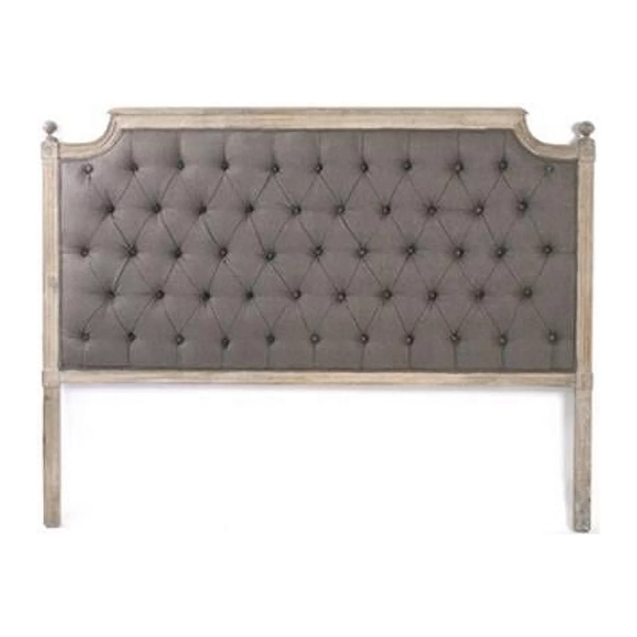 Sovereign Tufted Button Linen Fabric Upholstered Full Headboard In Gray