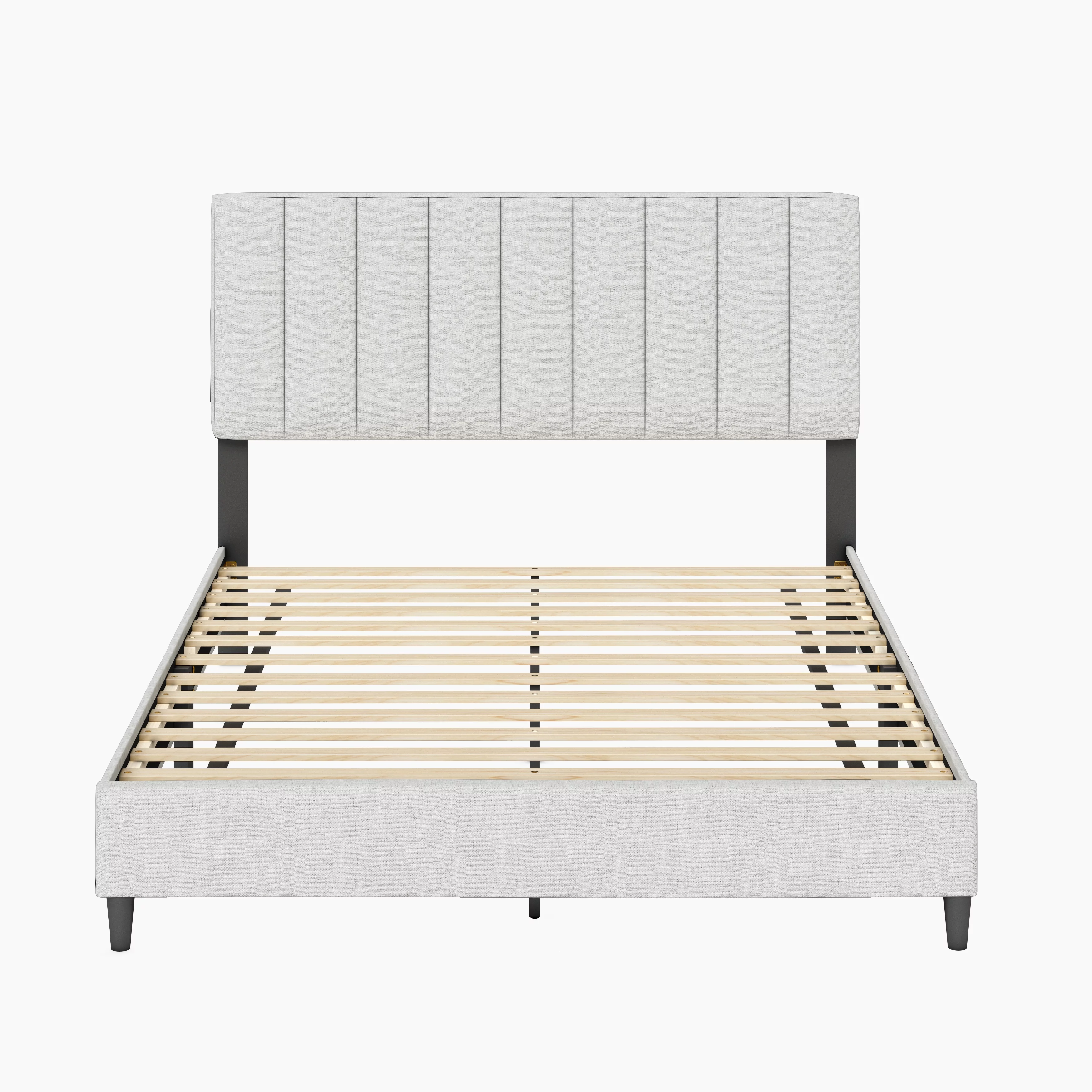 Boyd Sleep Leah Linen Platform Bed Frame with Upholstered Headboard, Off White, Queen