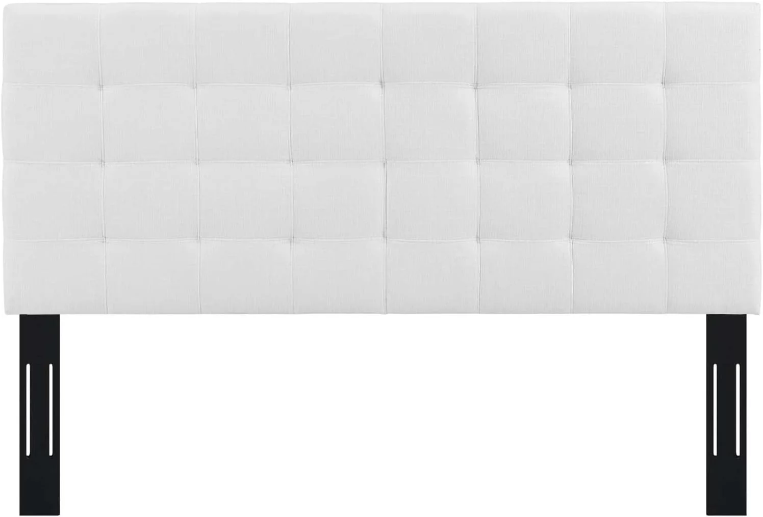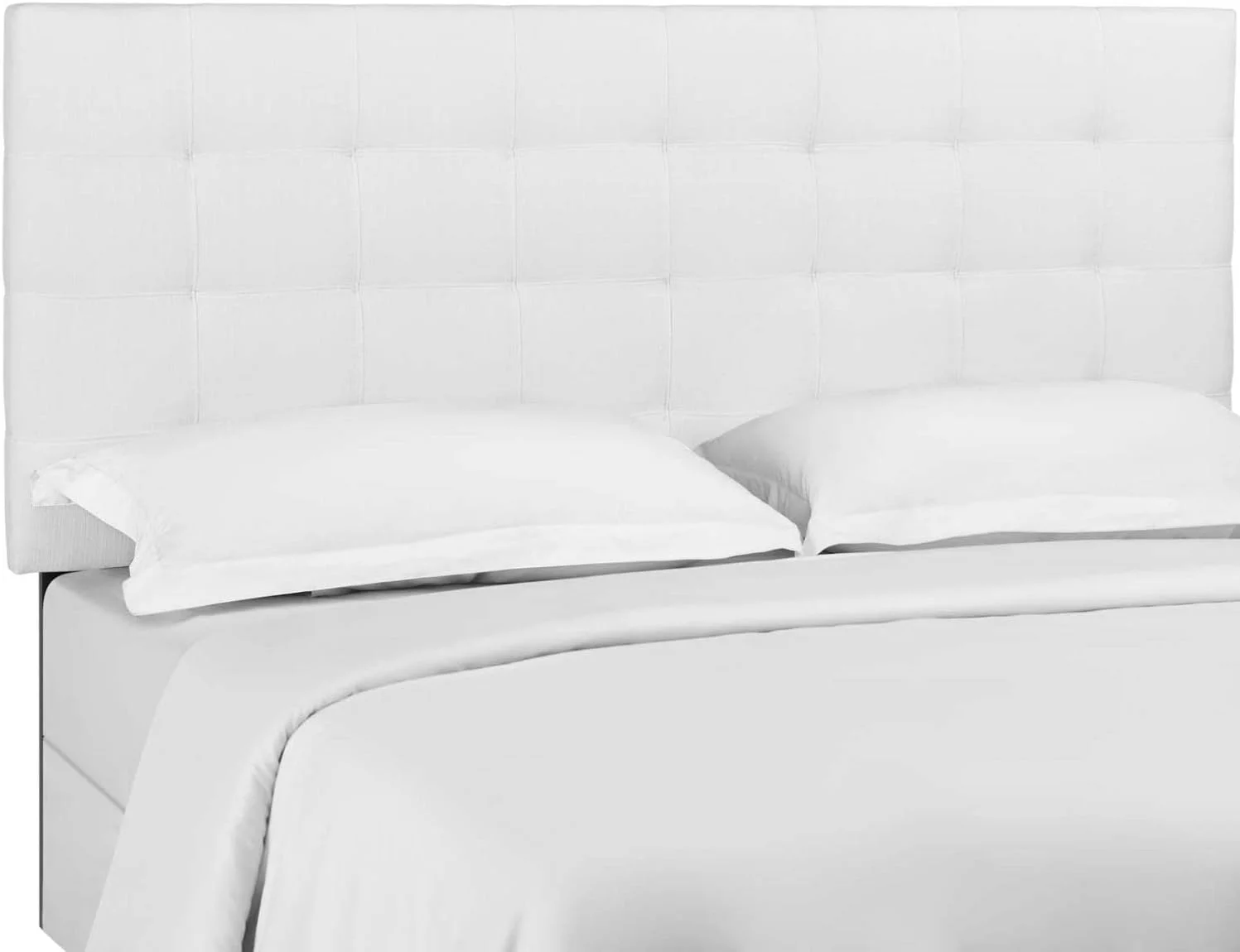 Paisley Upholstered Tufted Linen Fabric Full / Queen Headboard Size In White