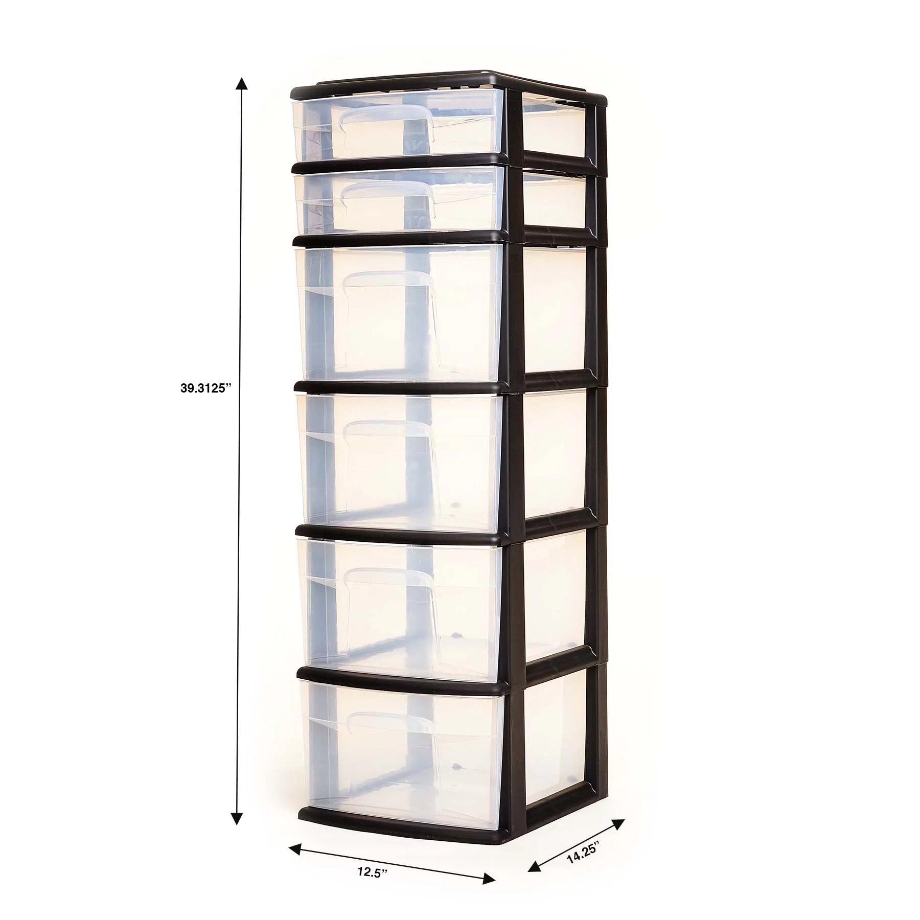 Homz® 6 Drawer Medium Tower, Black Plastic Frame with Clear Drawers, Set of 1