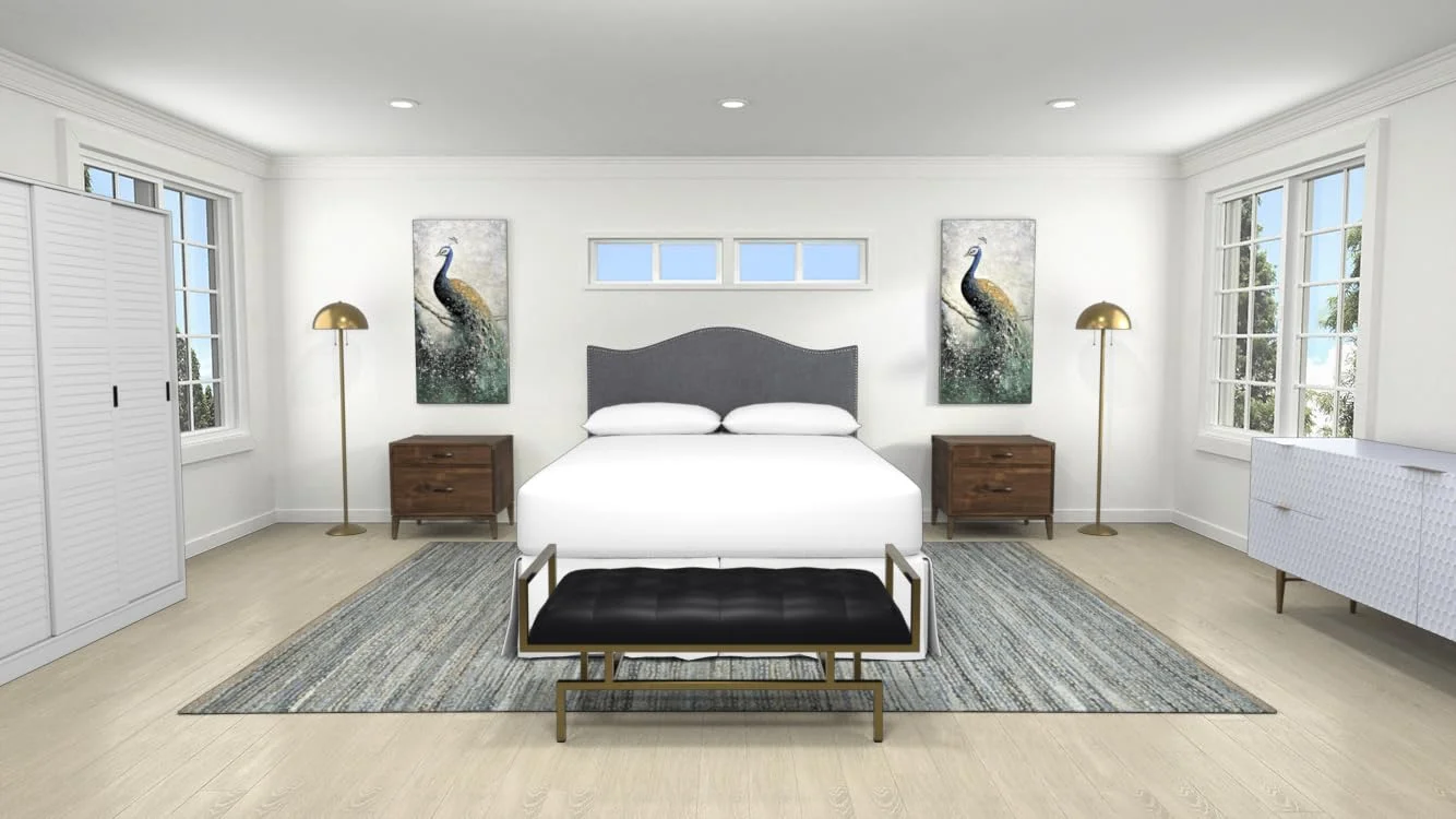Leo & Lacey Modern Wood Queen Sleigh Headboard w/ USB Charging Station in Walnut