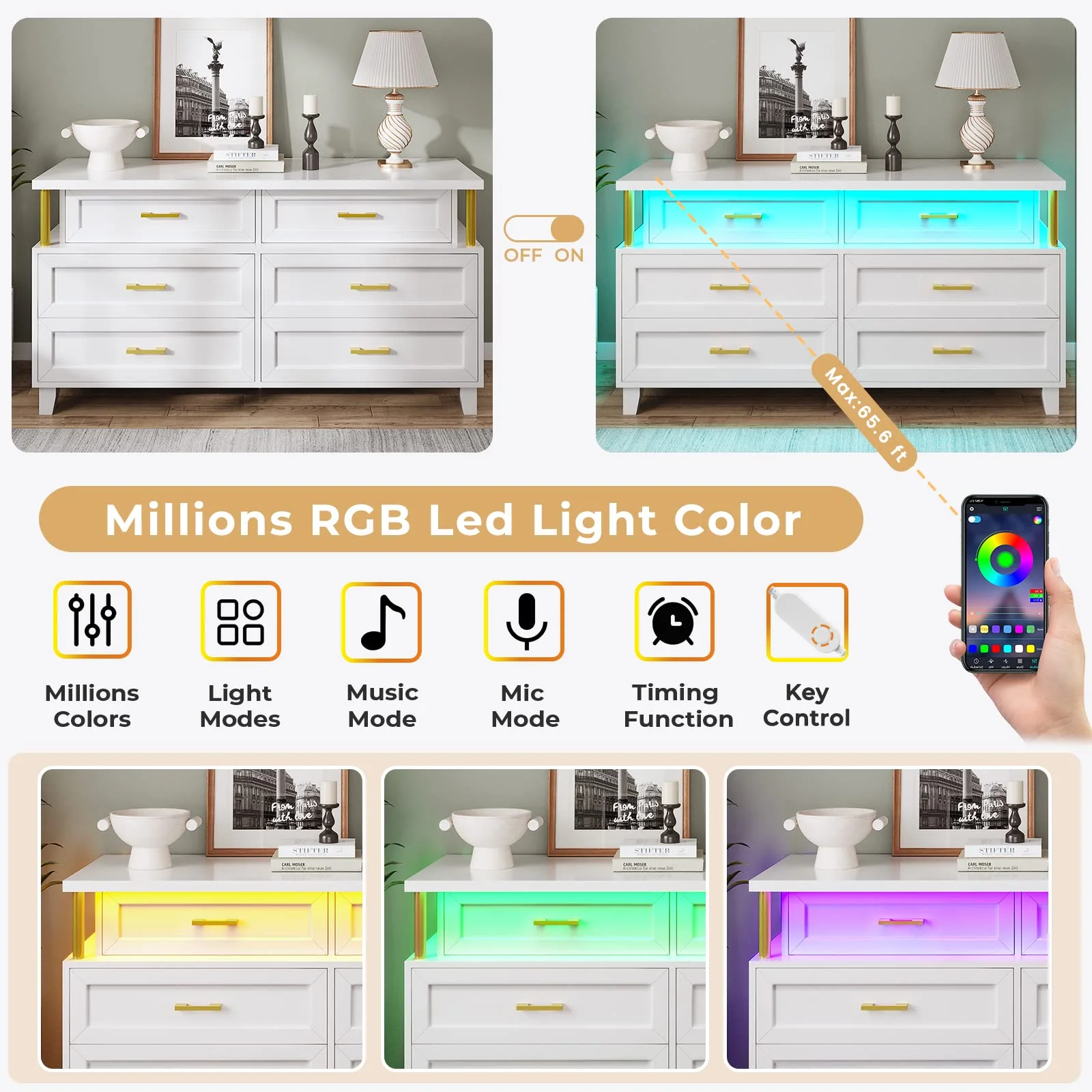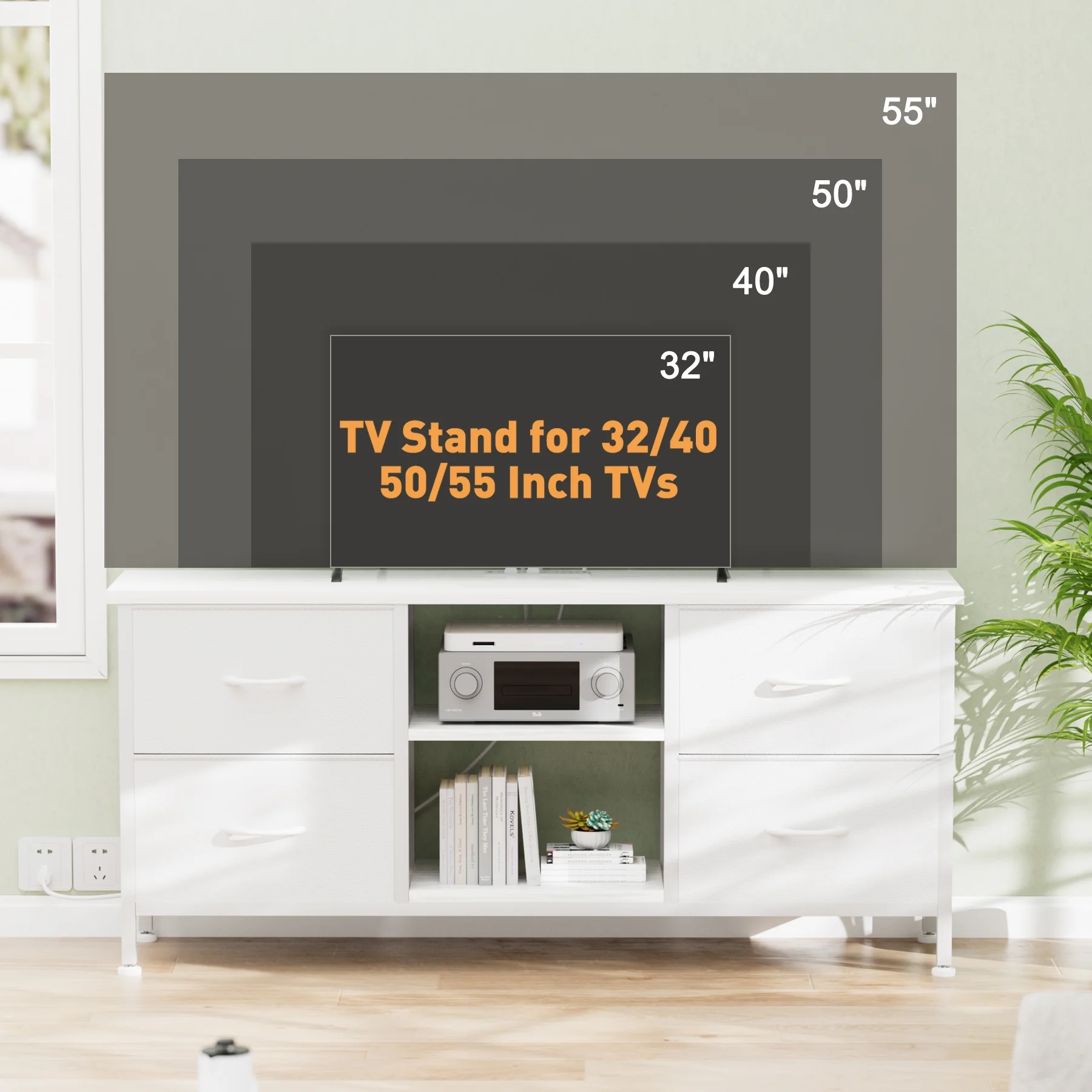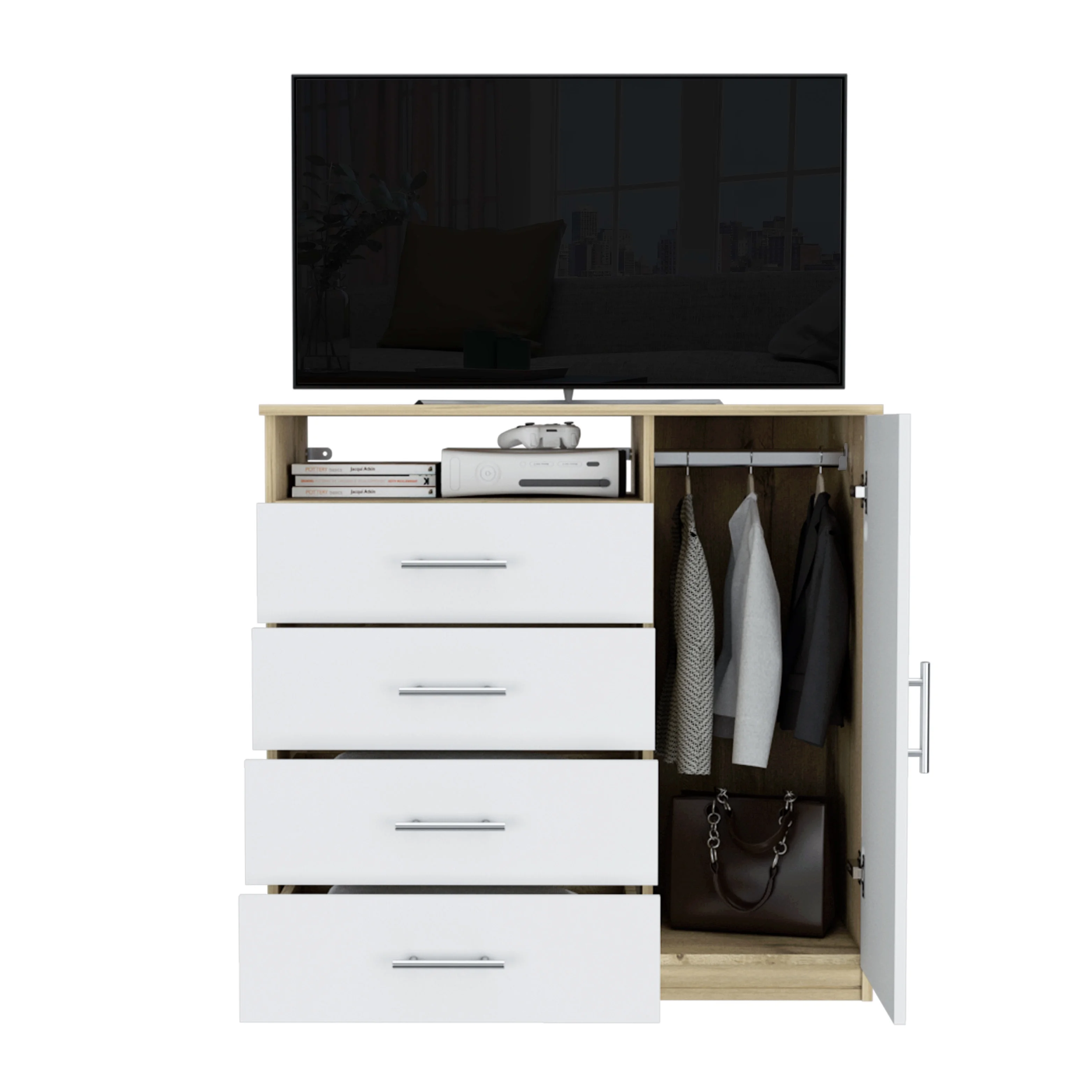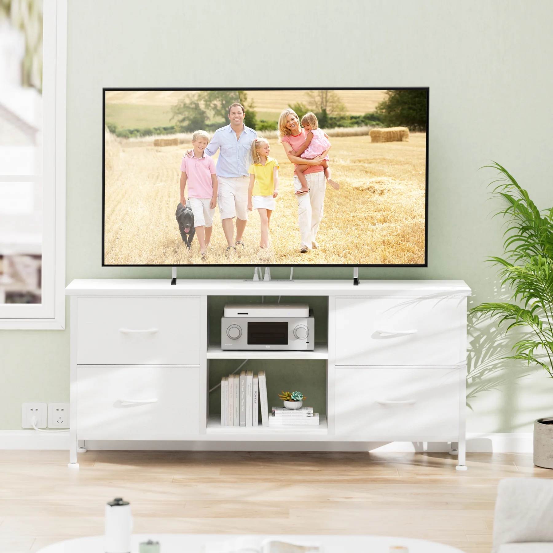 GIKPAL White Dresser TV Stand for TVs up to 50" TV stand dressers for bedrooms with 4 drawers, Modern TV Stand Dresser
