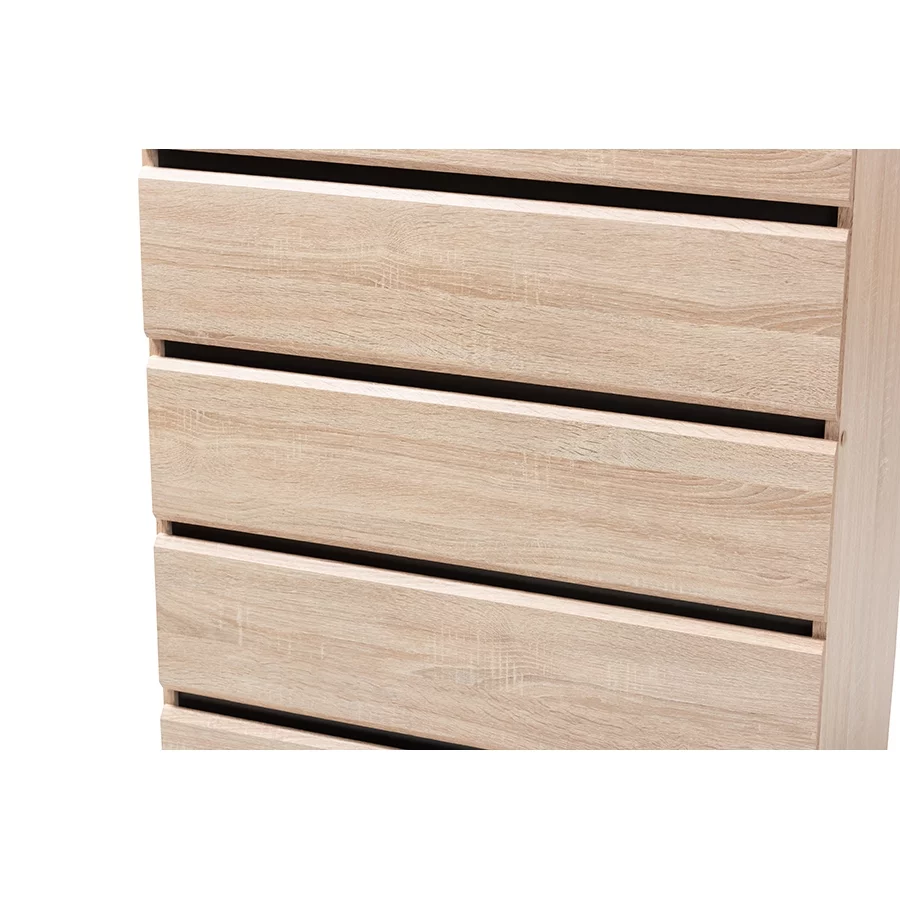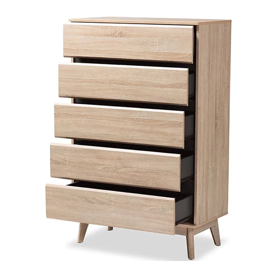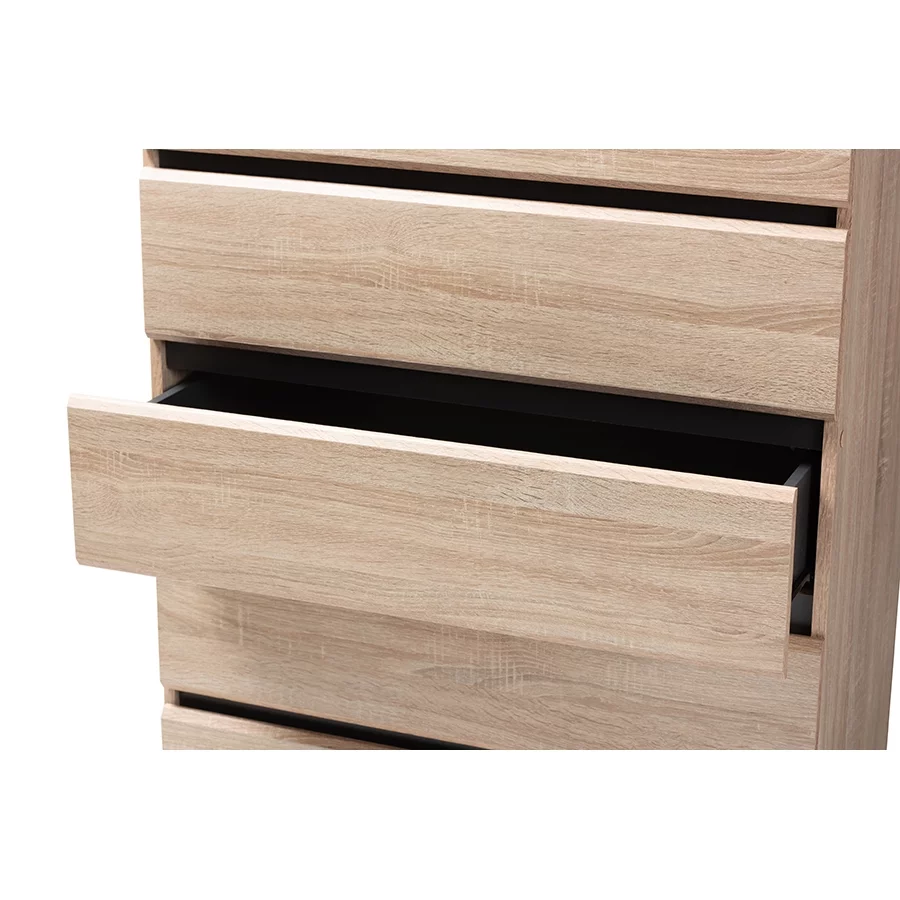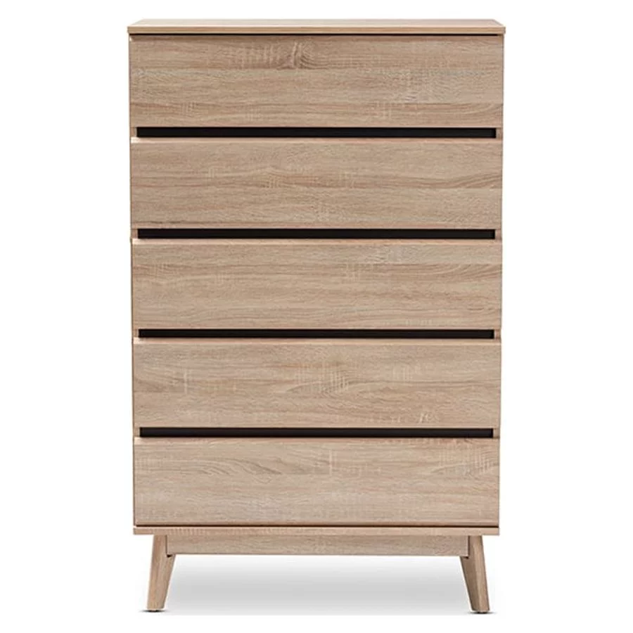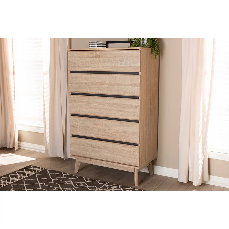 Baxton Studio Miren Mid-Century Modern Light Oak and Dark Grey 5-Drawer Chest