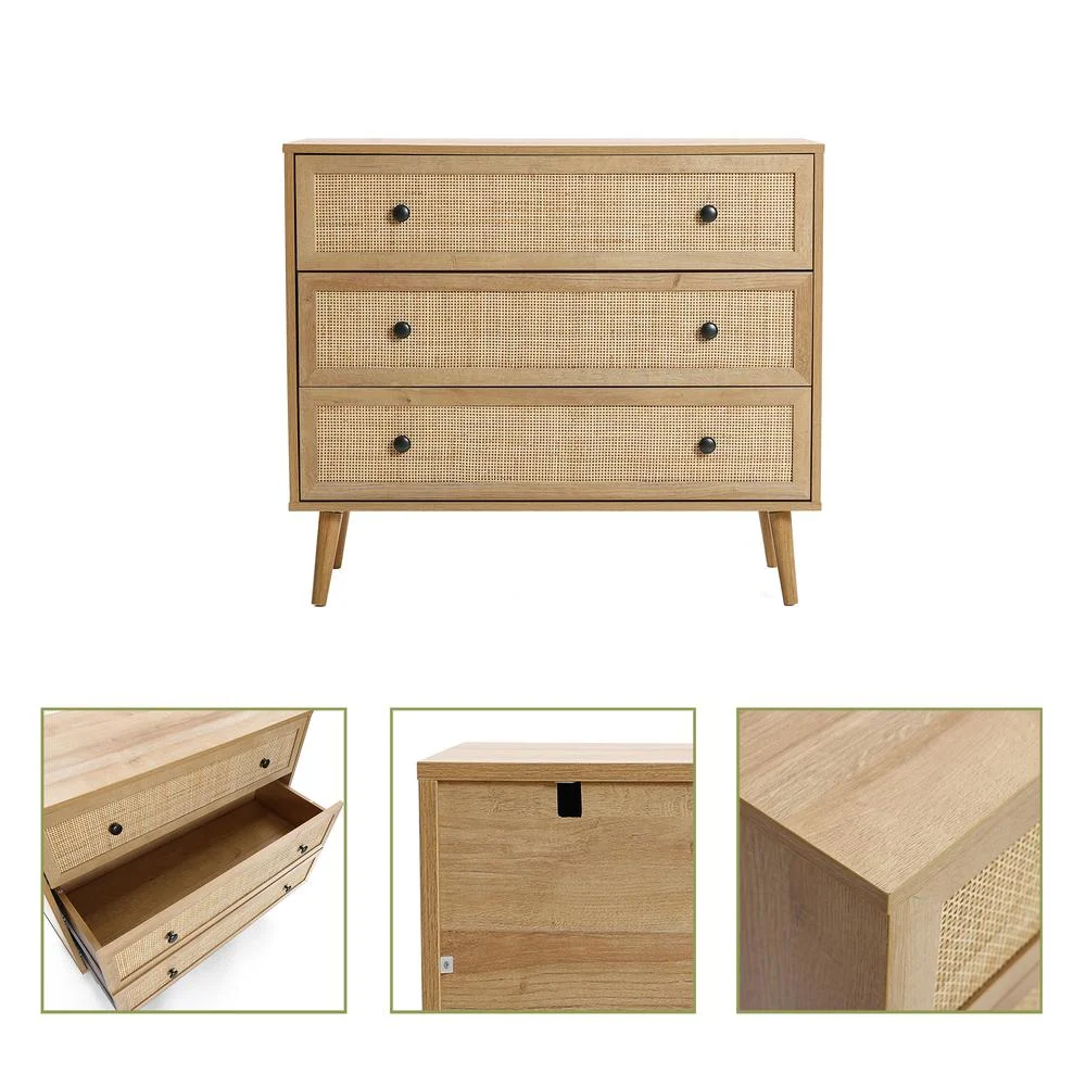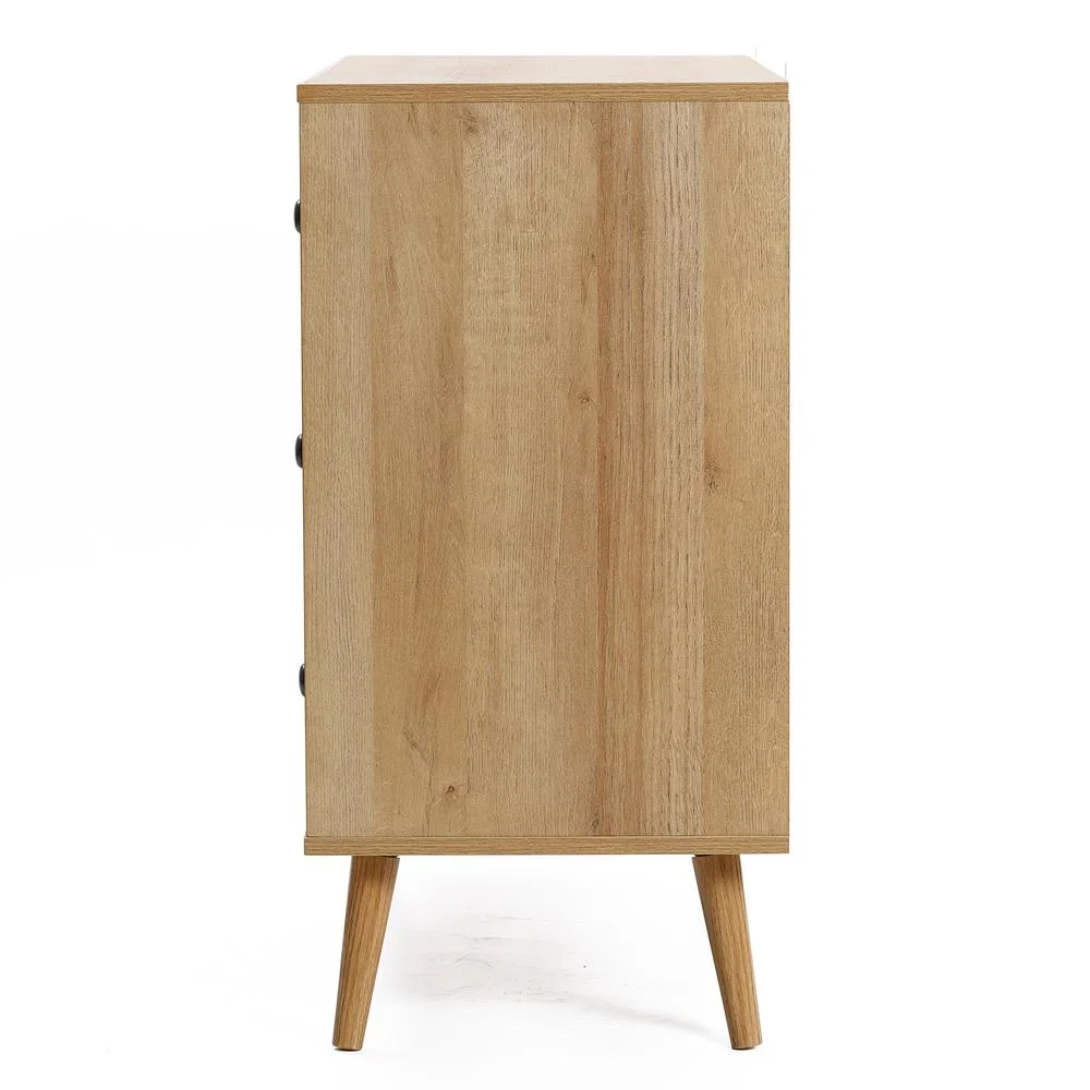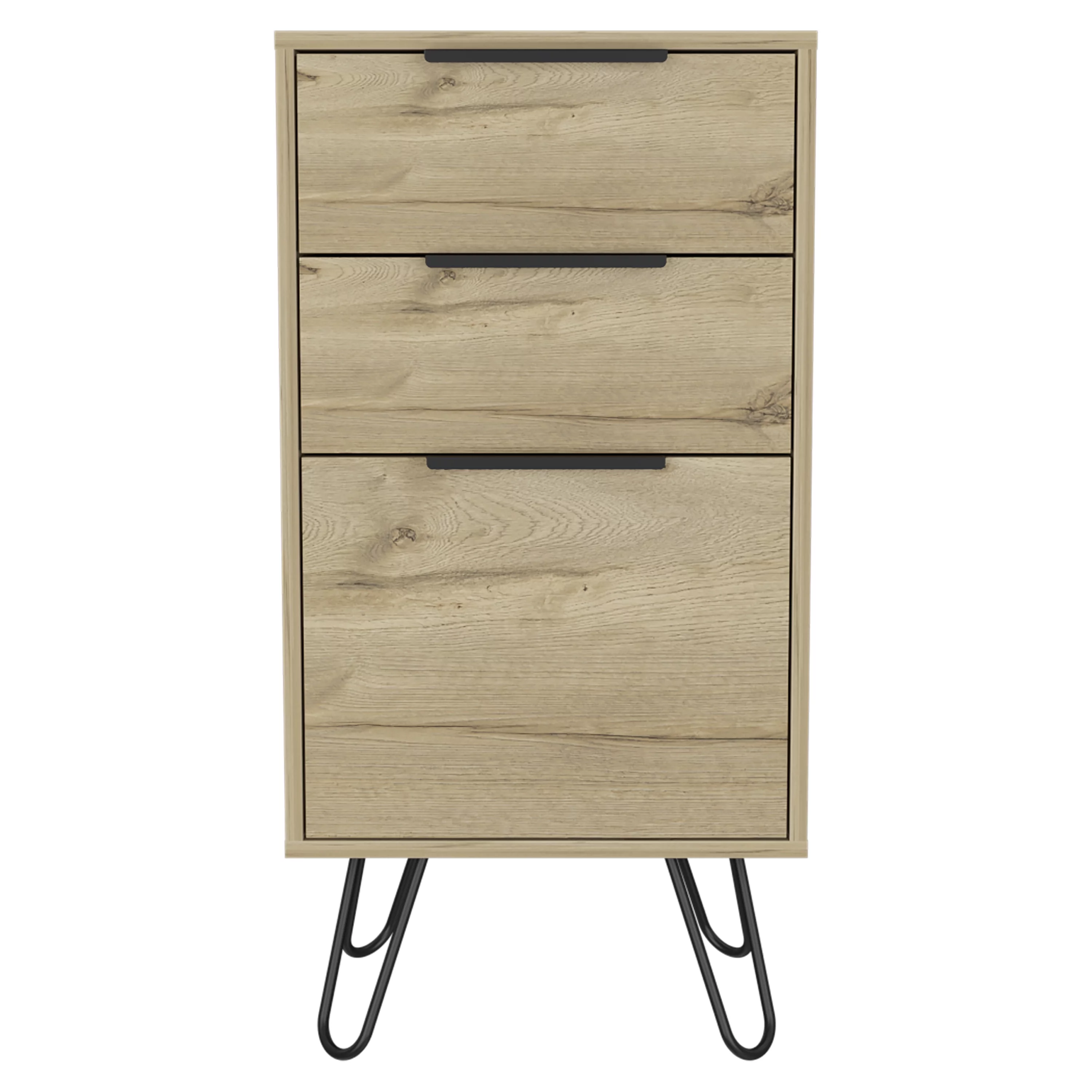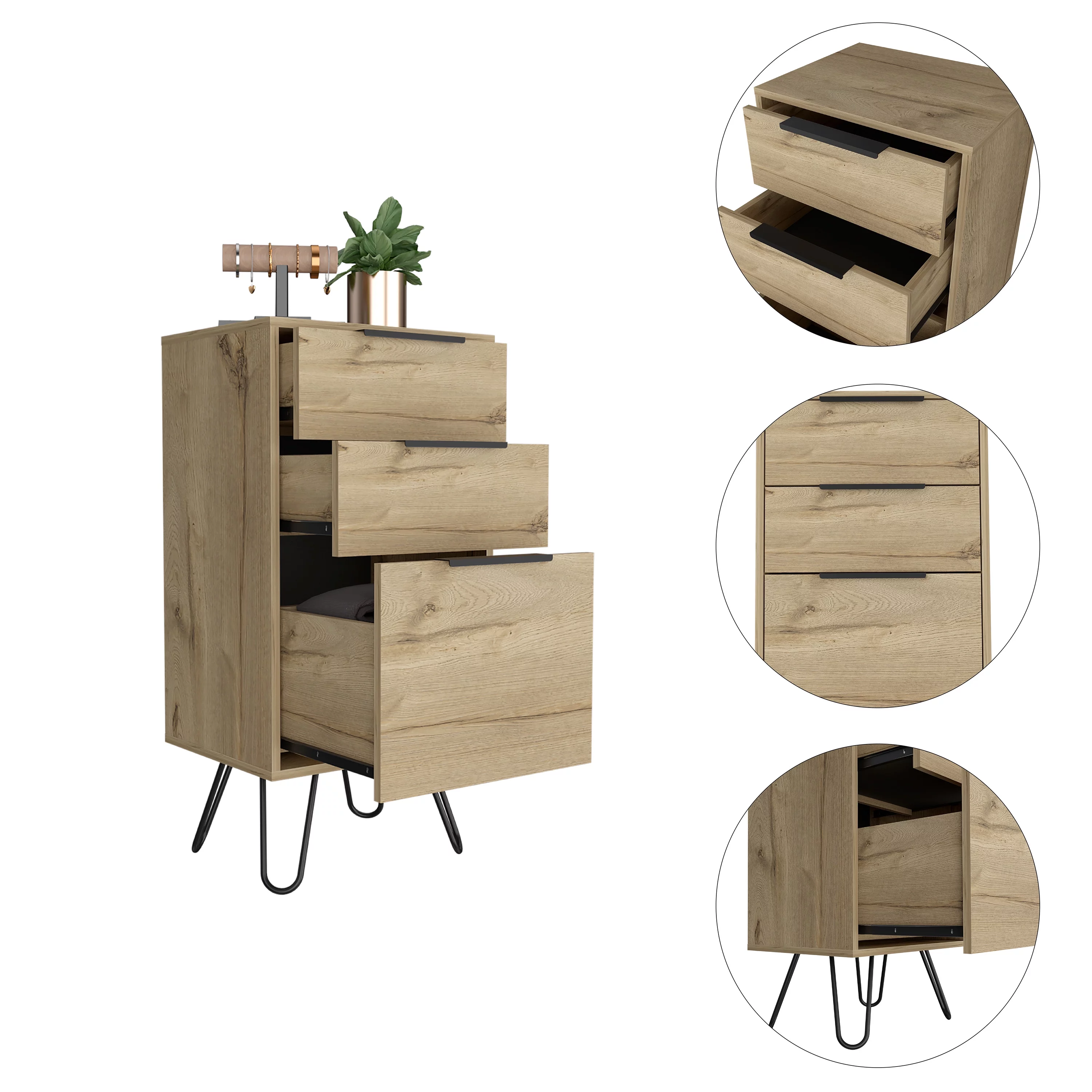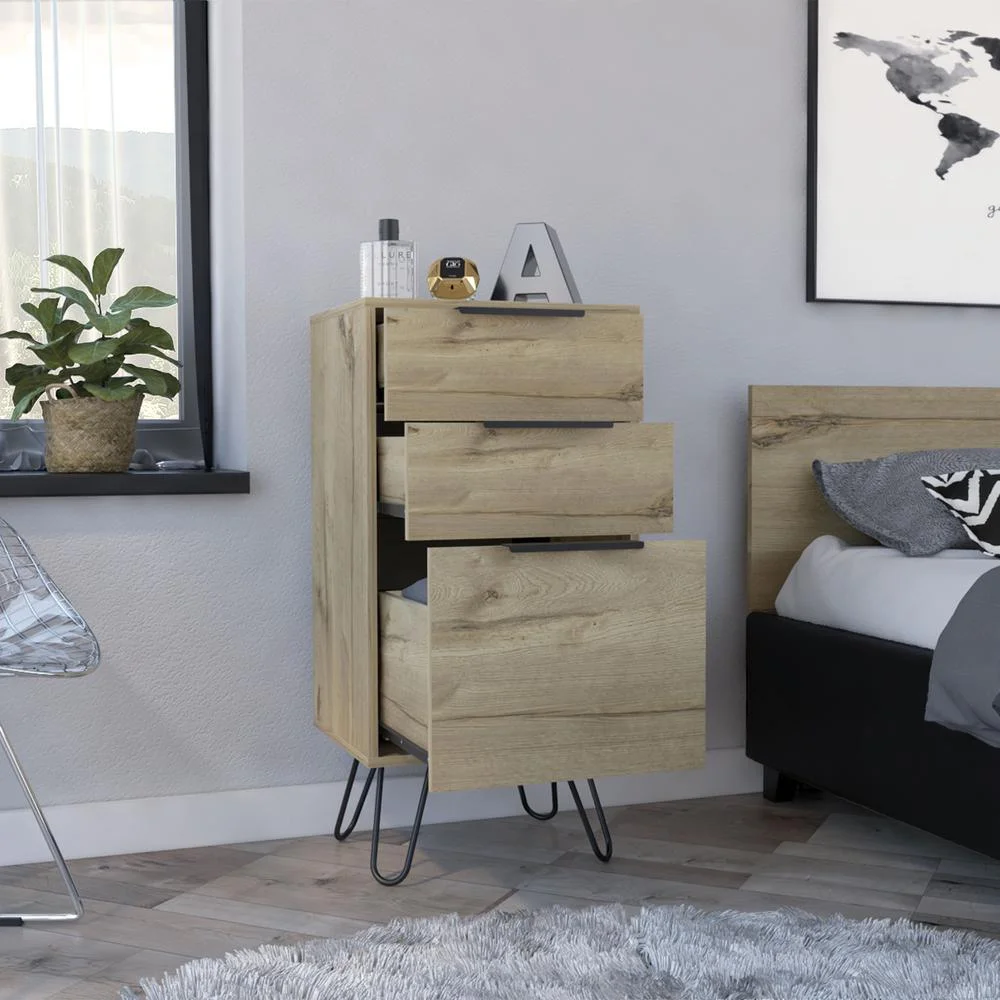 FM Furniture London Modern Metal Dresser with 3-Drawer & 4-Leg in Light Oak