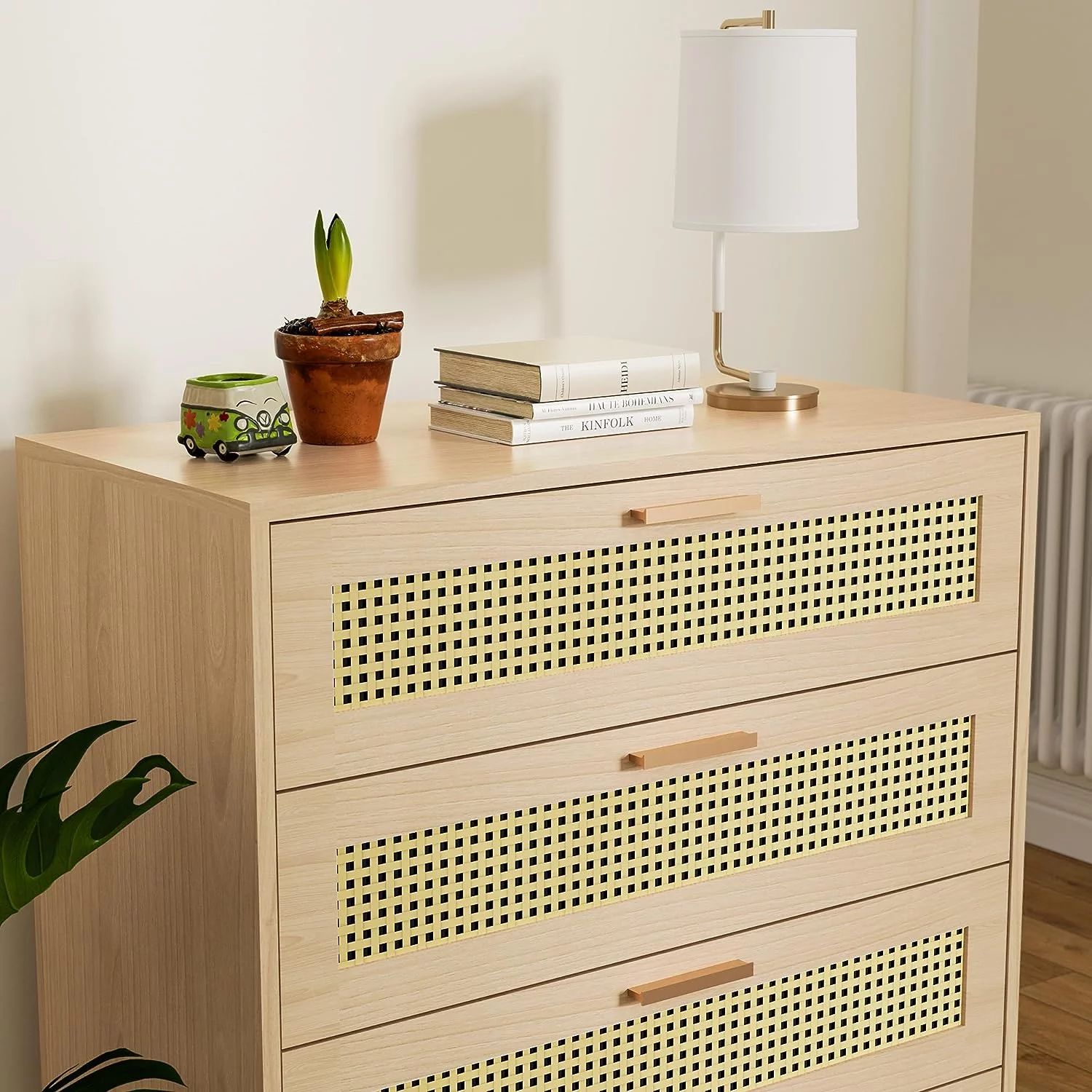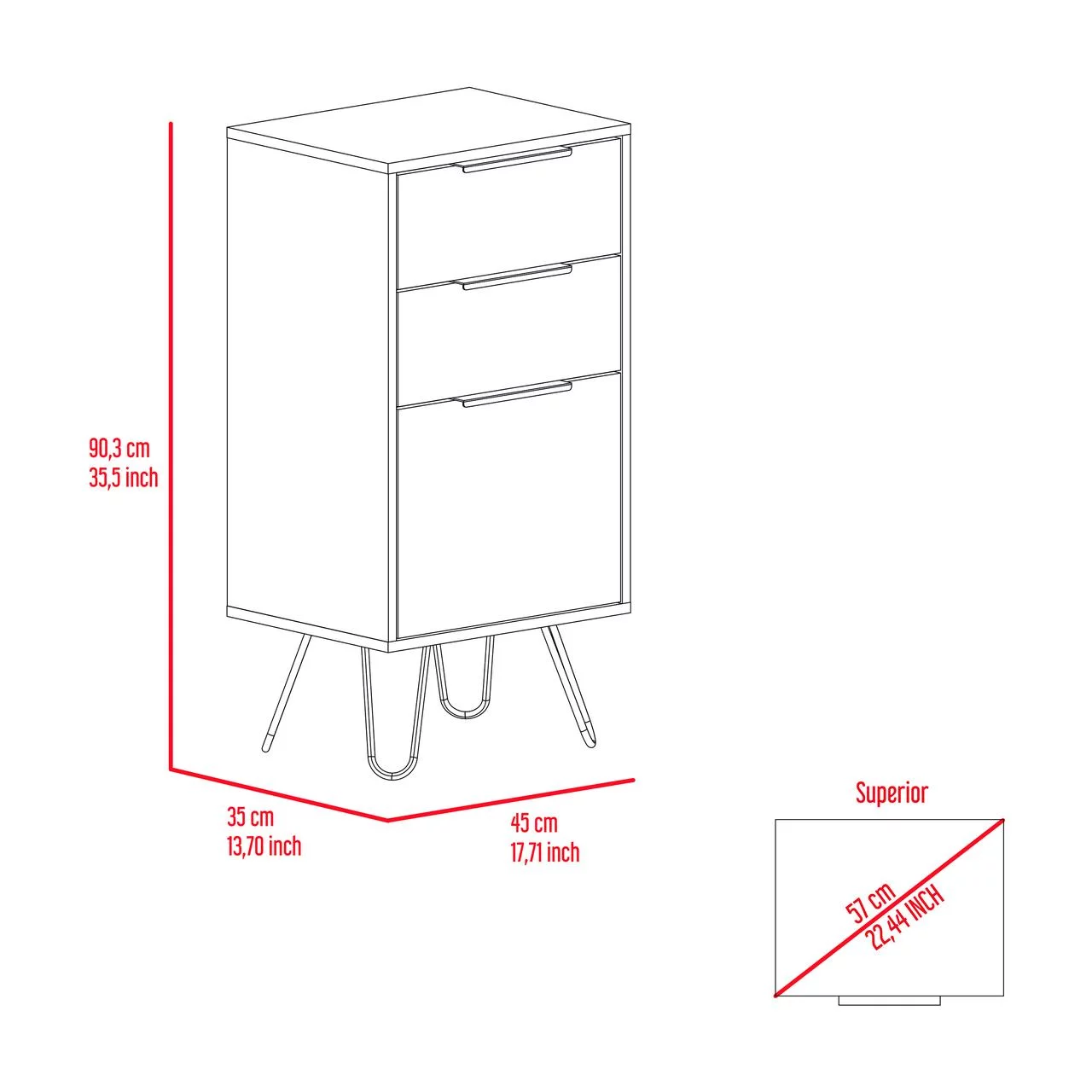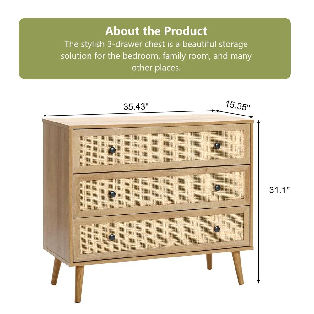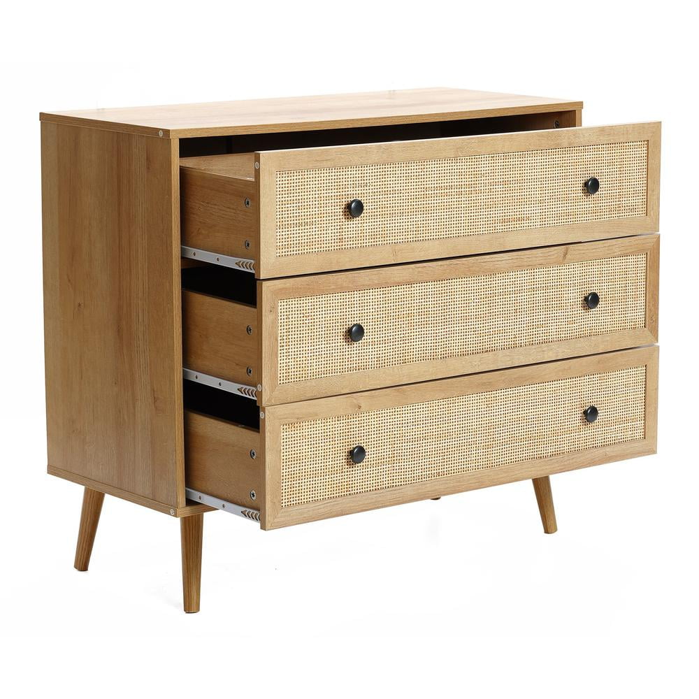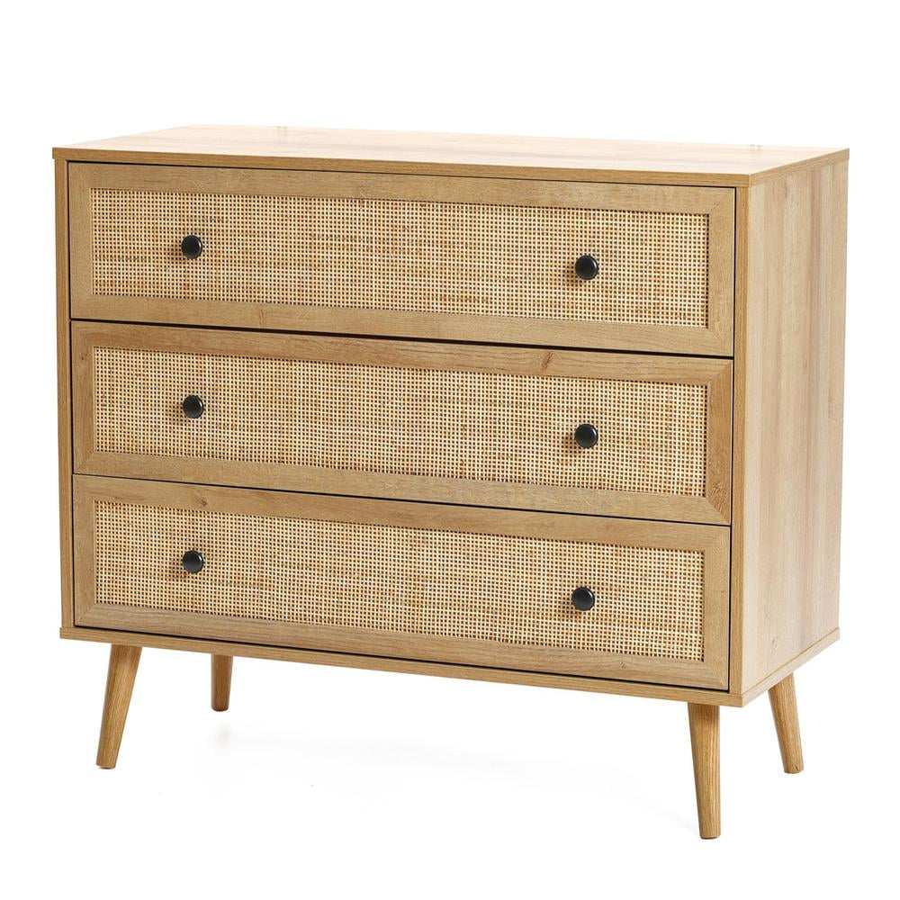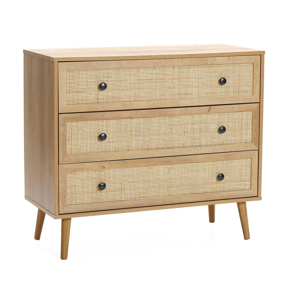 FM Furniture London Modern Metal Dresser with 3-Drawer & 4-Leg in Light Oak