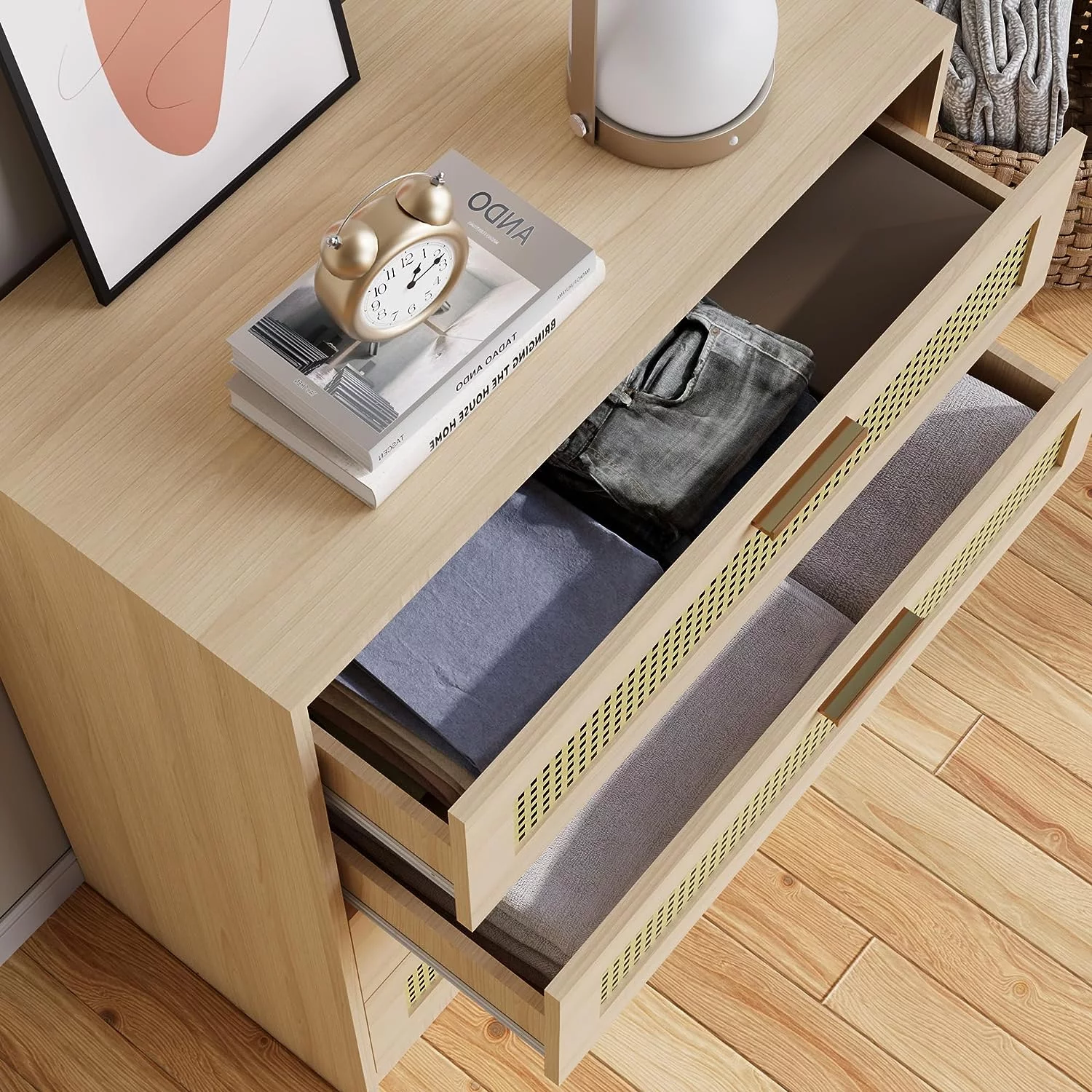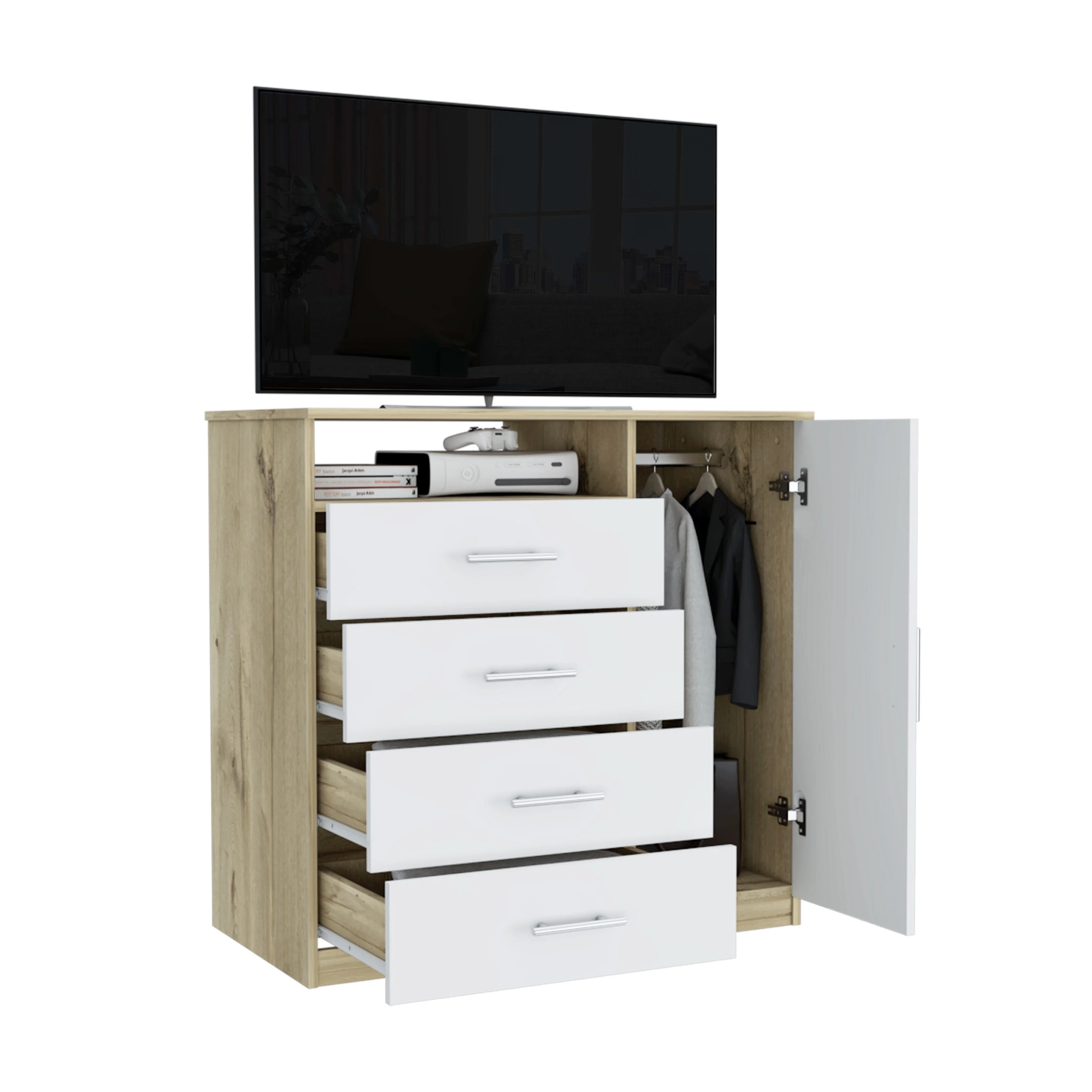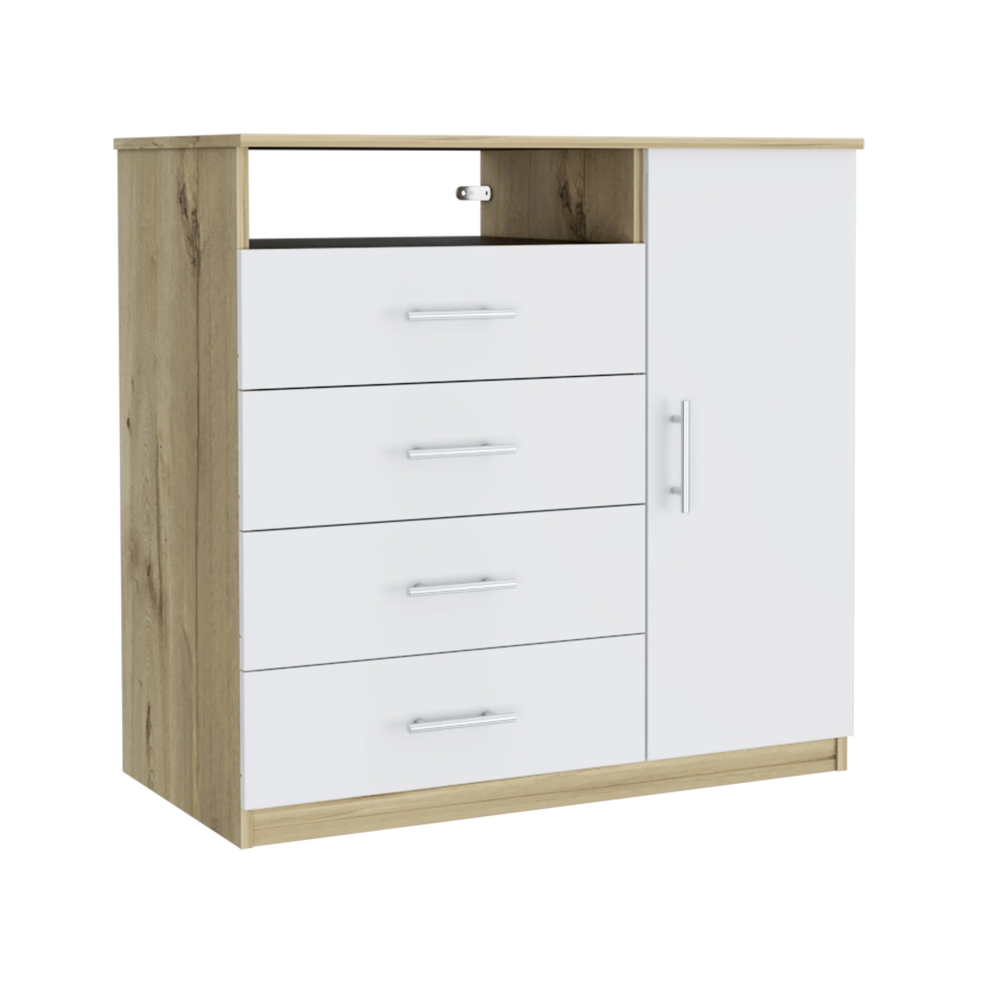California Style Dresser, With Four Spacious Drawers, Countertop and Light Oak Accents Black-Light Oak