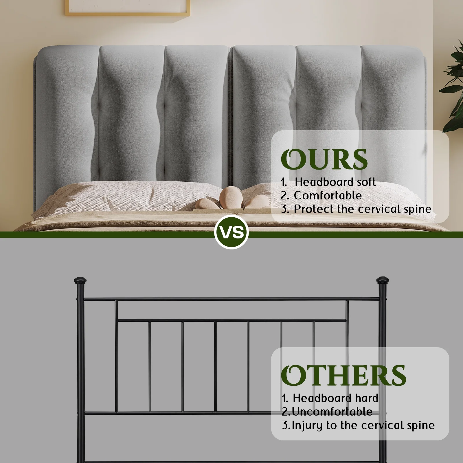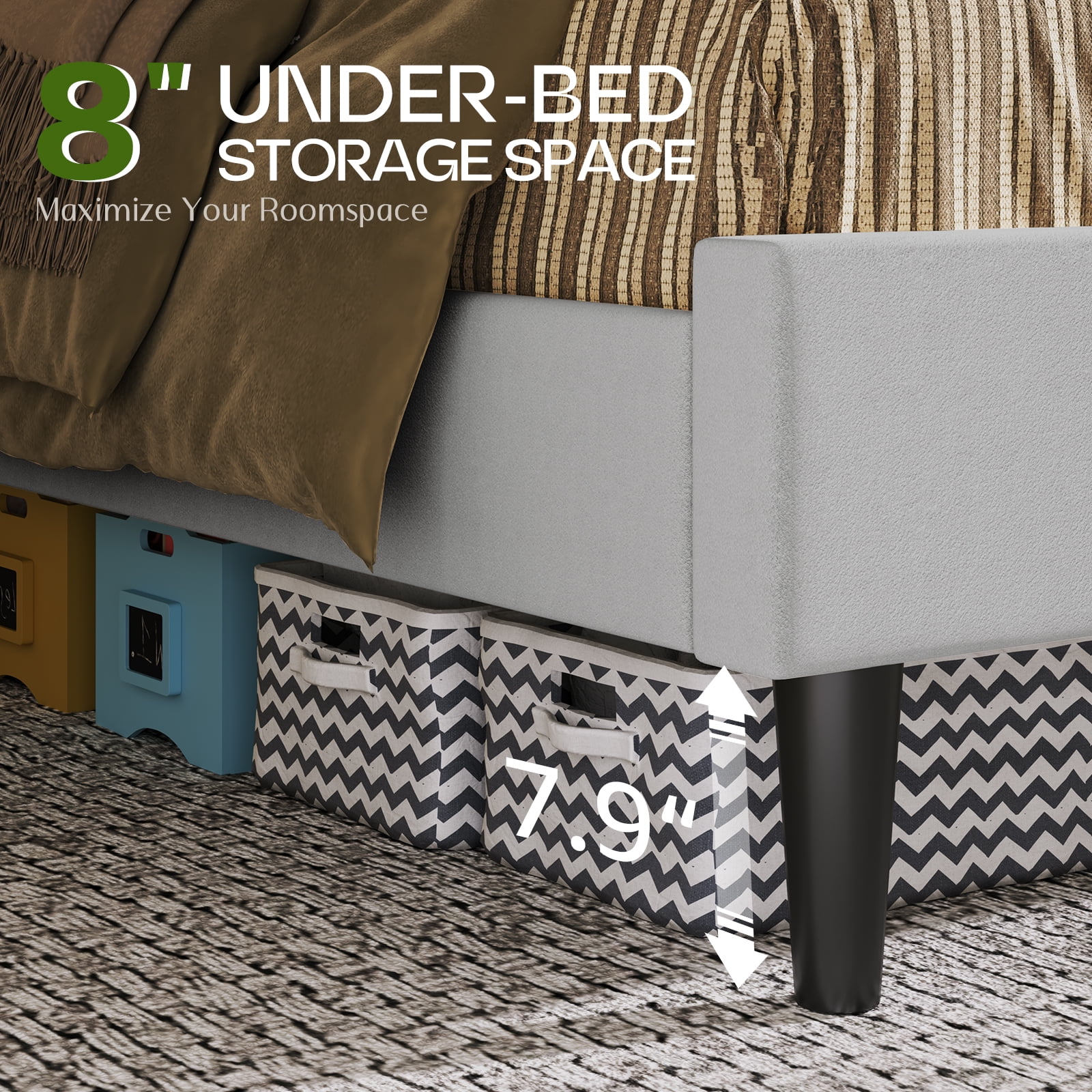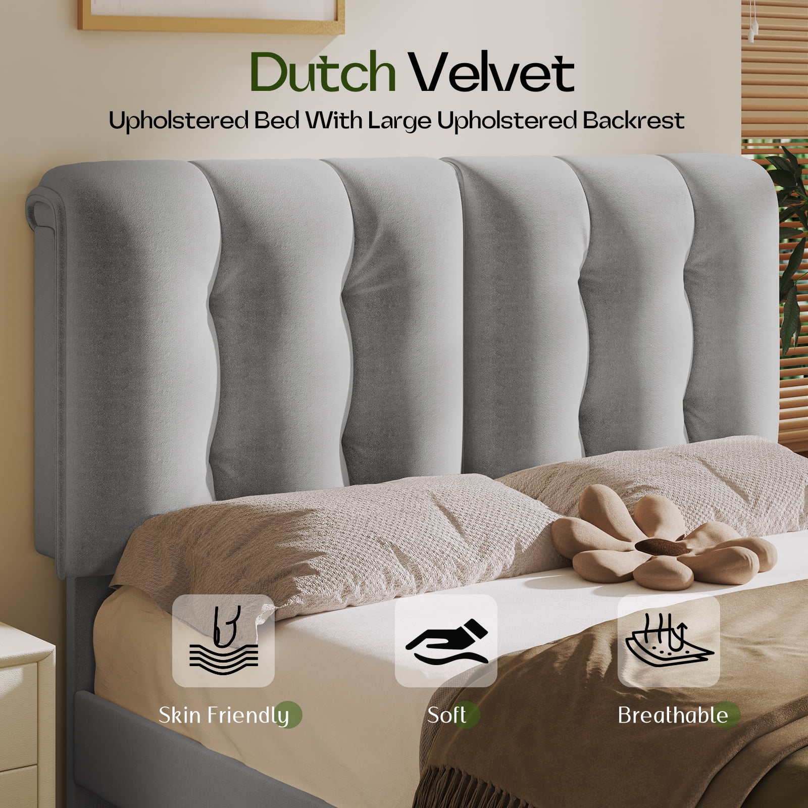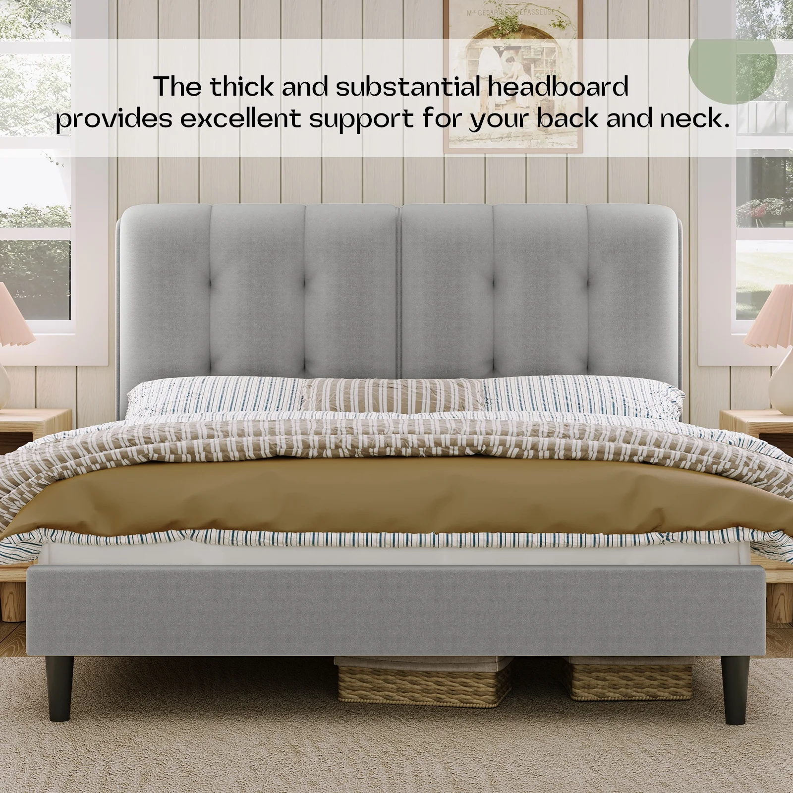 Dextrus Upholstered Wingback Bed Frame, King Platform Bed with Wood Slat, No Box Spring Needed, Gray