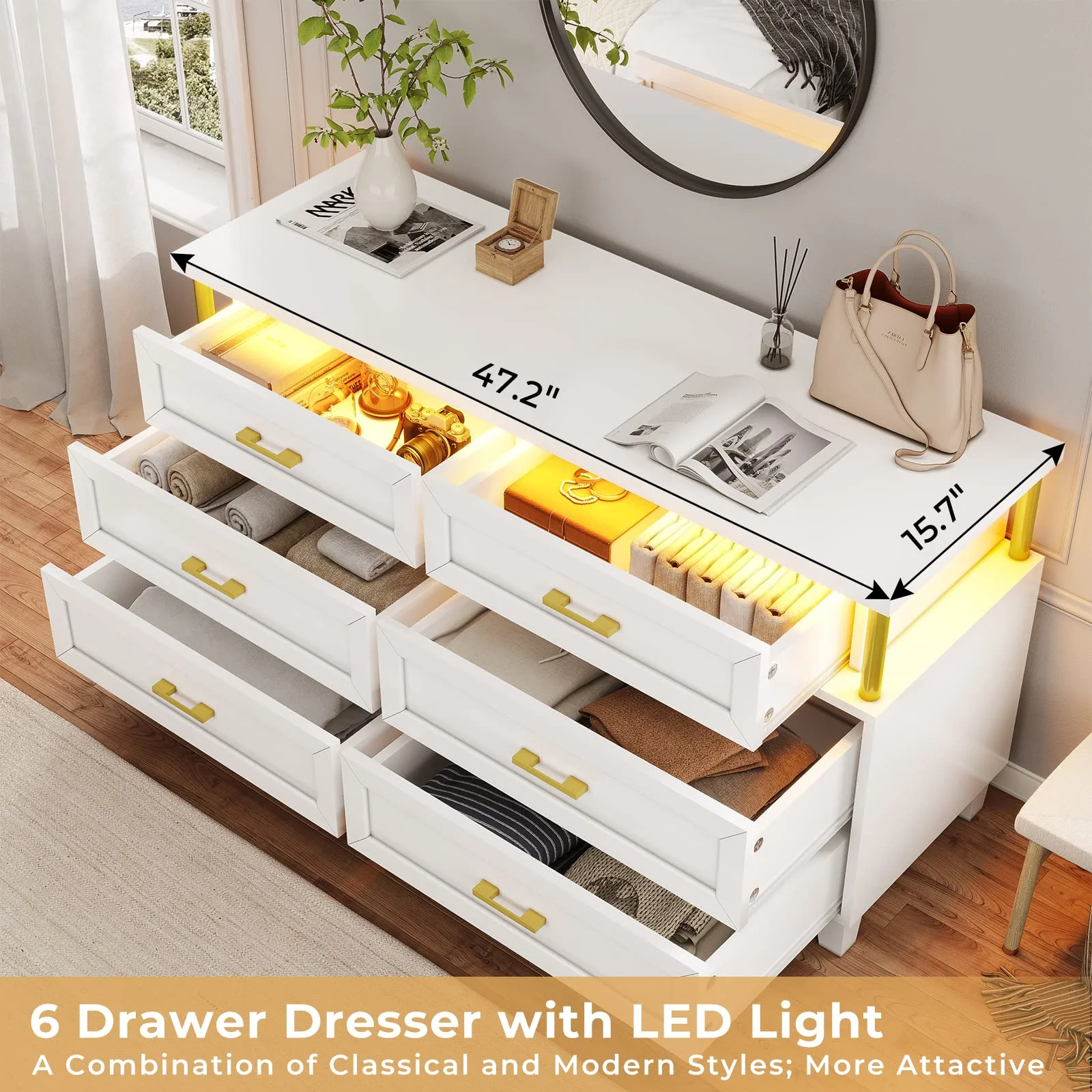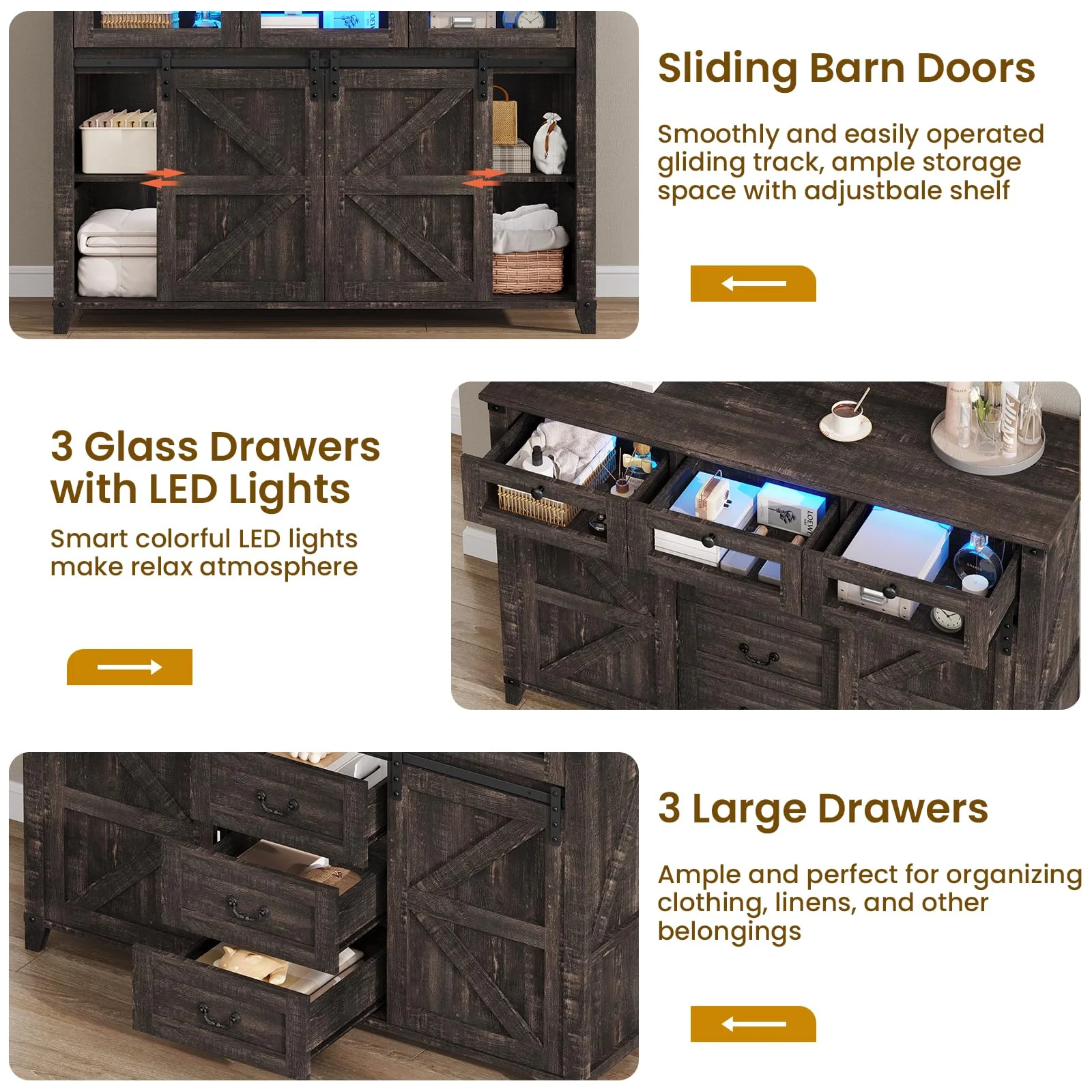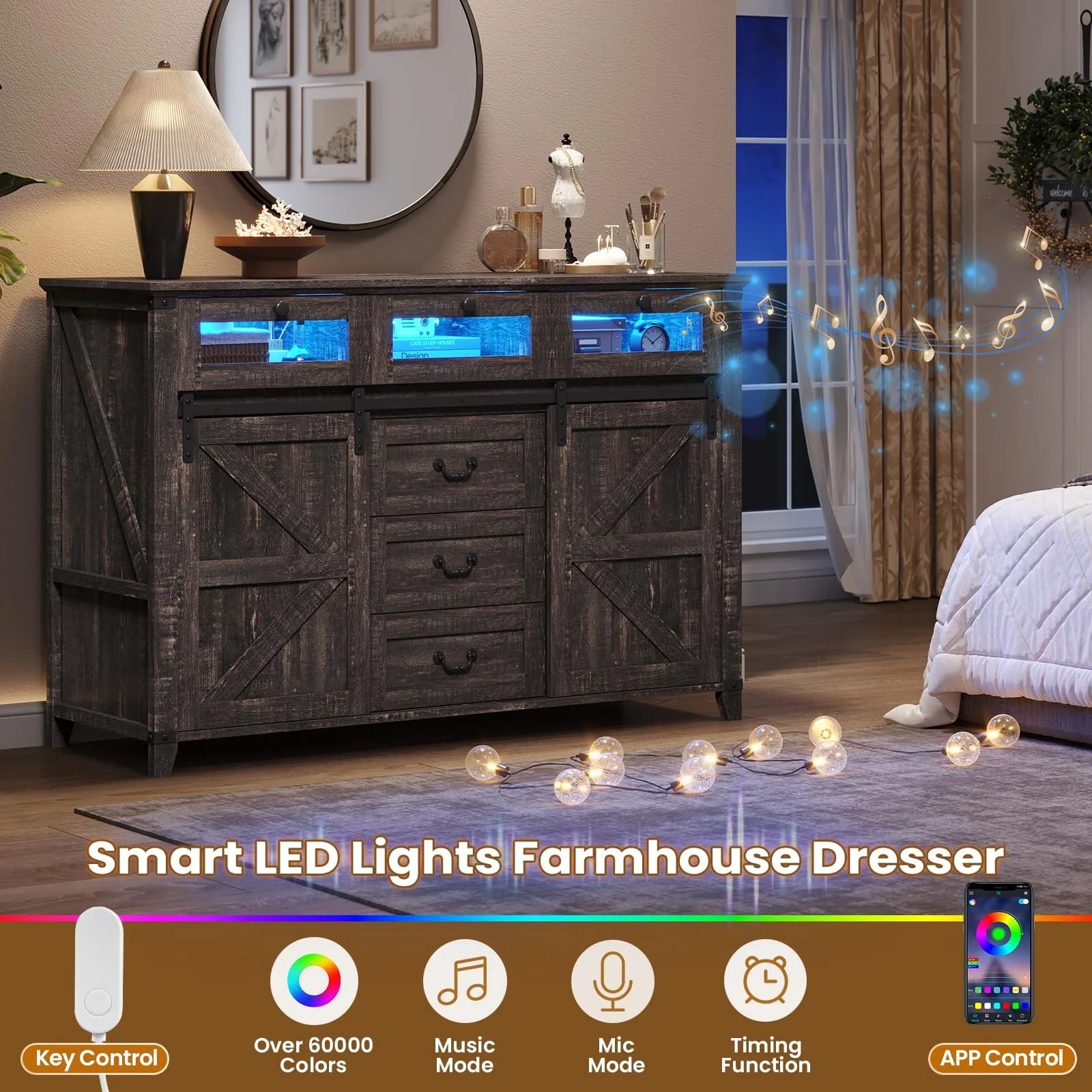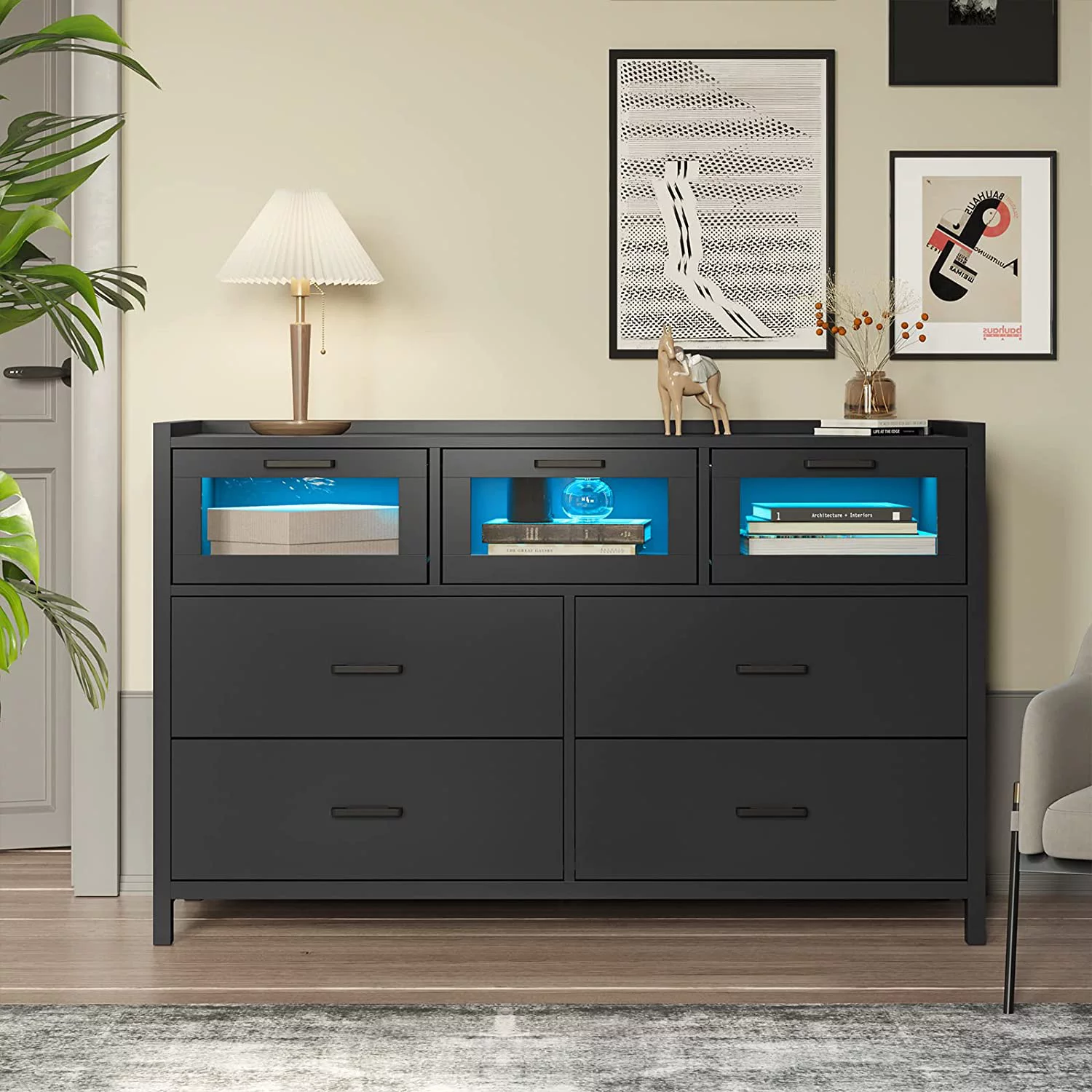 VIAGDO Dresser for Bedroom,7 Drawer Dressers with LED Lights, Dressers and Chests of Drawers, Black
