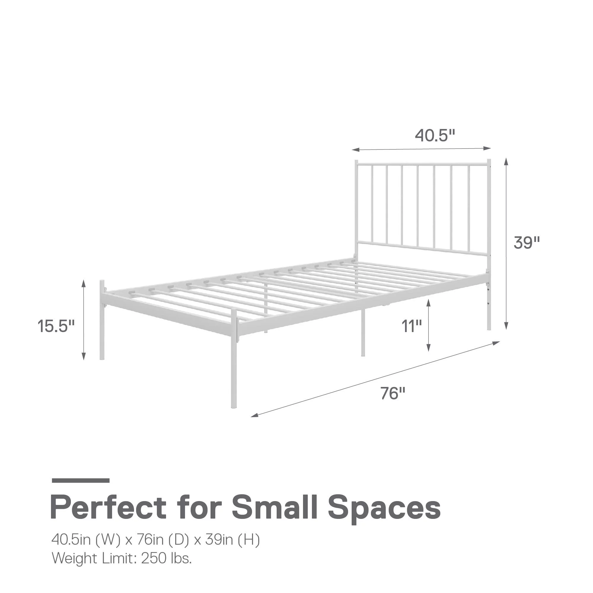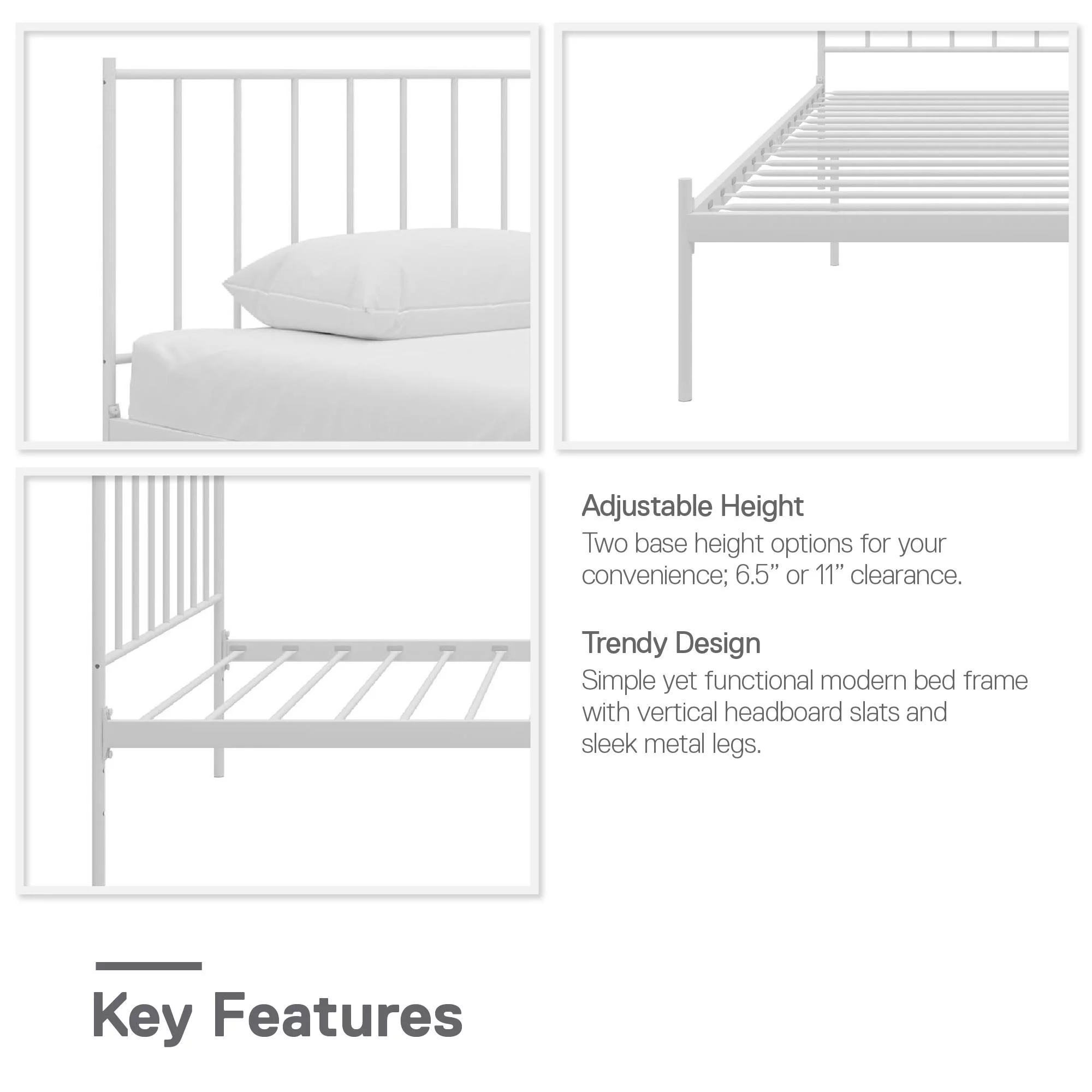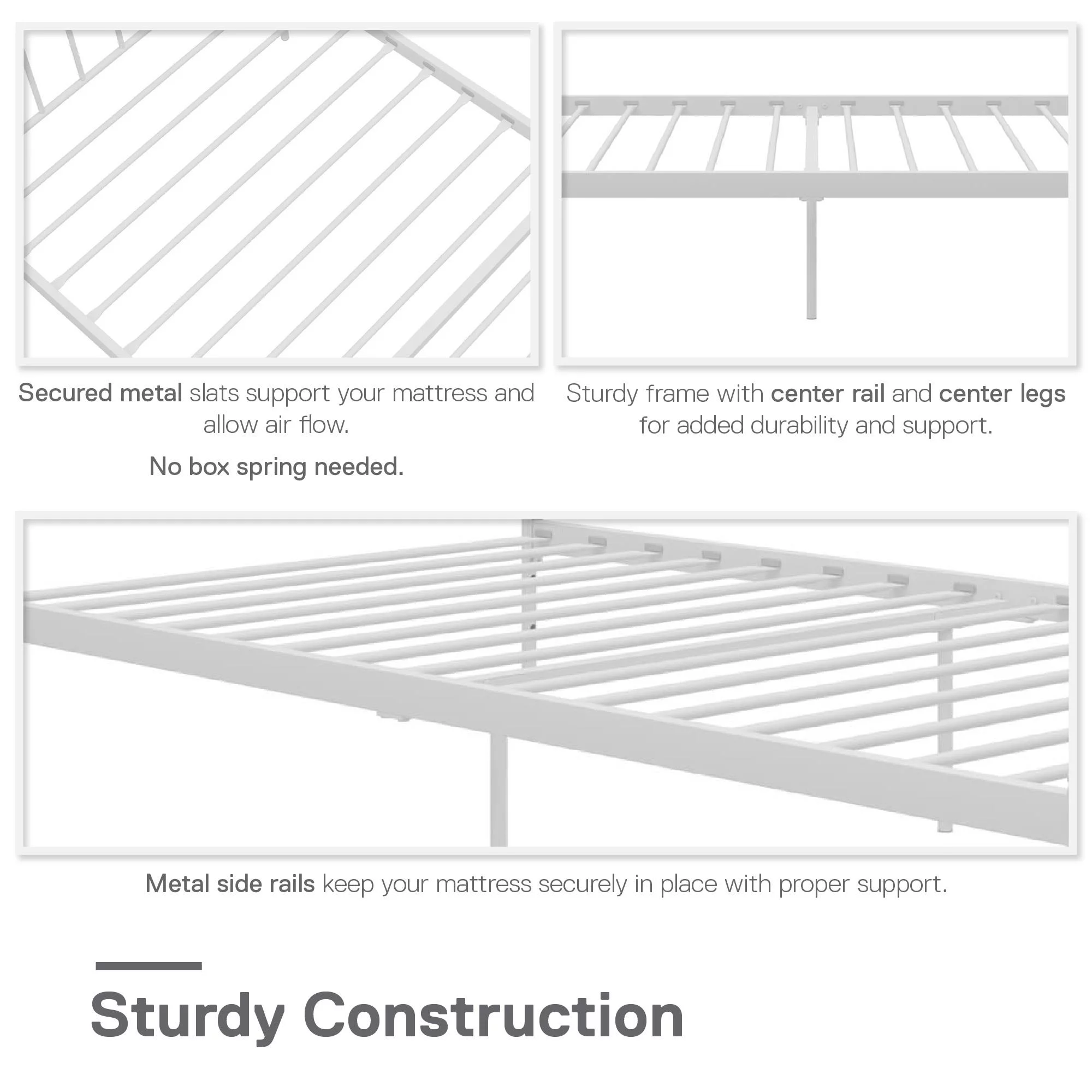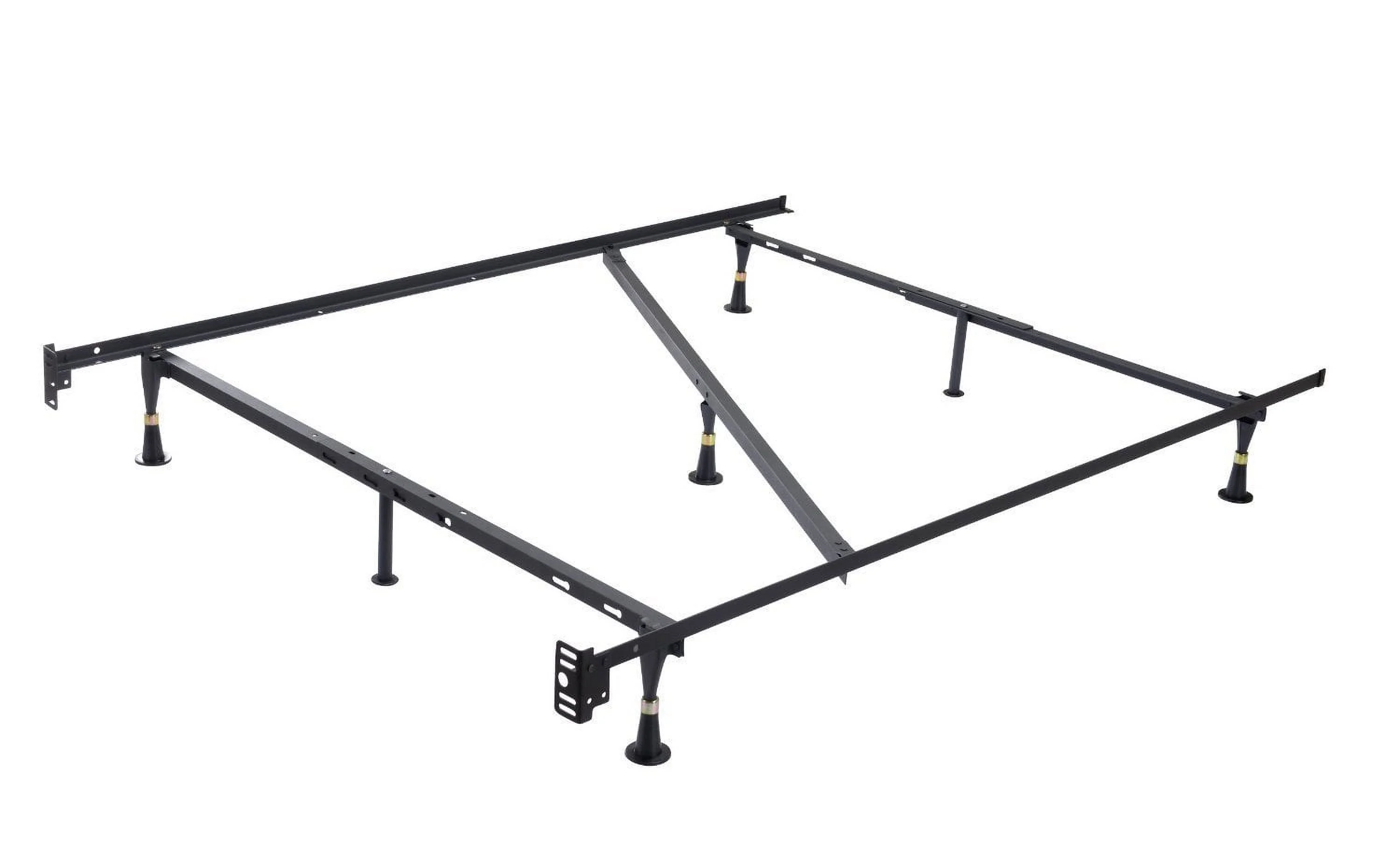 Hugo Adjustable Metal Bed Frame with Center Support Rail, Support Legs & Glides
