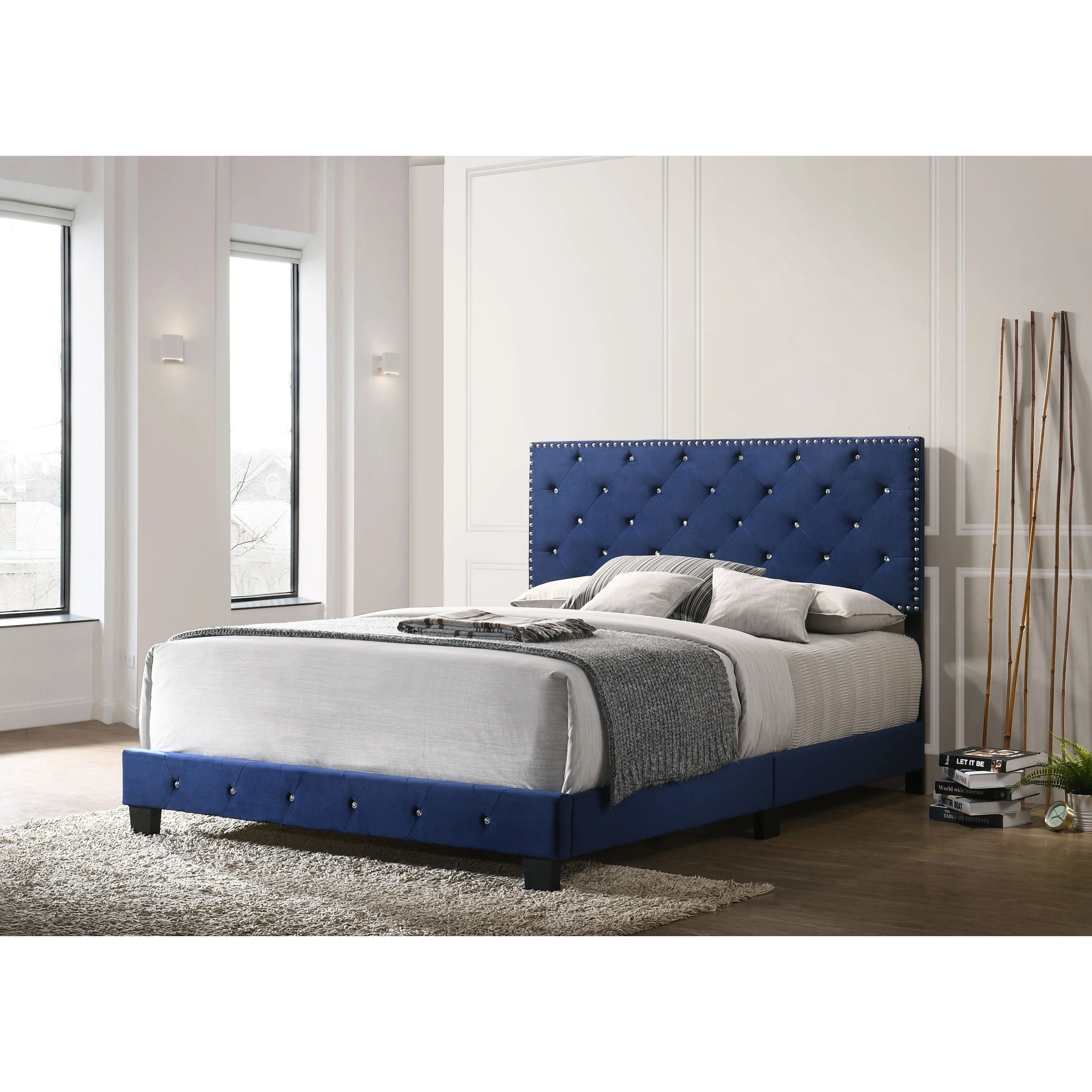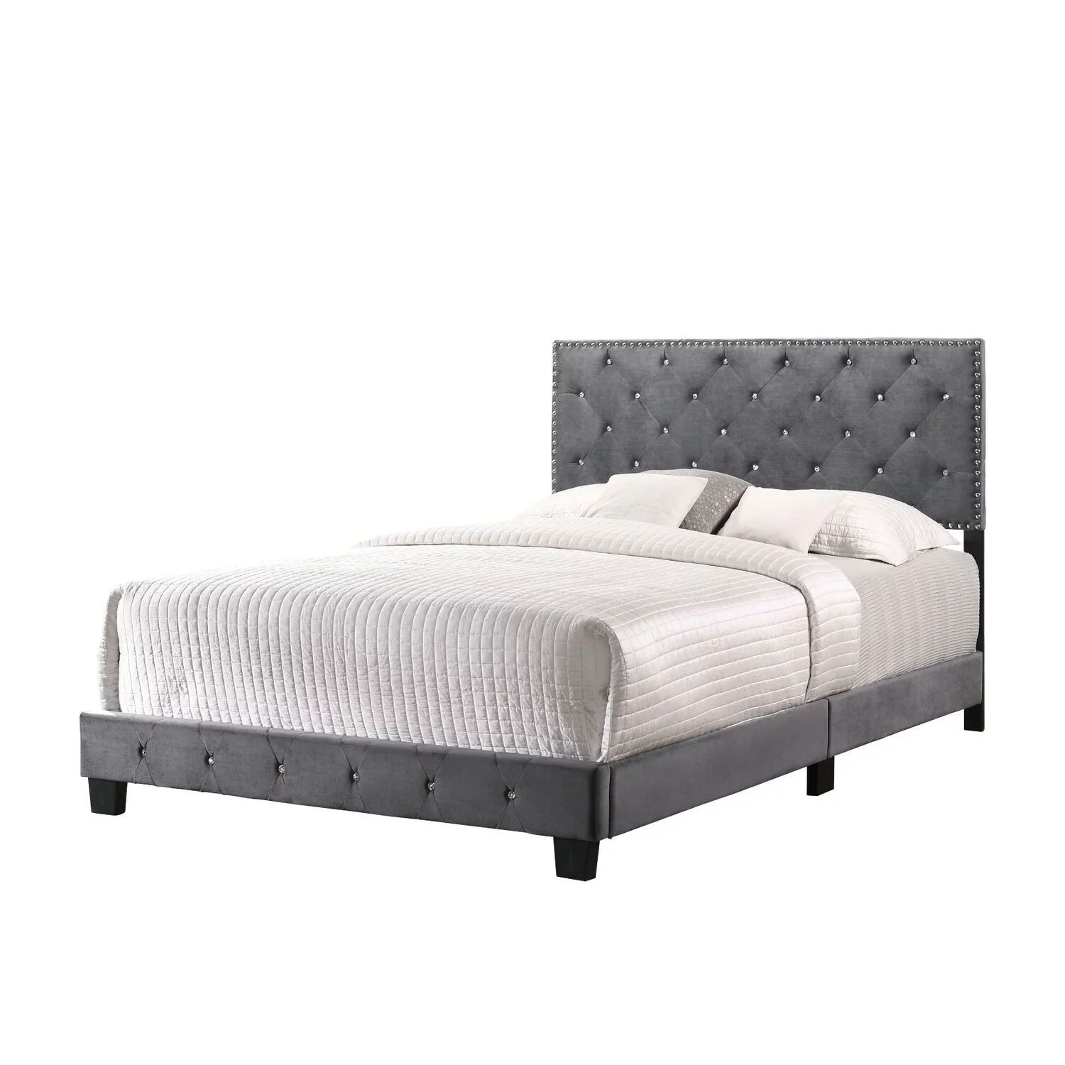 Glory Furniture Suffolk Glam Wood Tufted Upholstered Bed, Full, Gray/Black