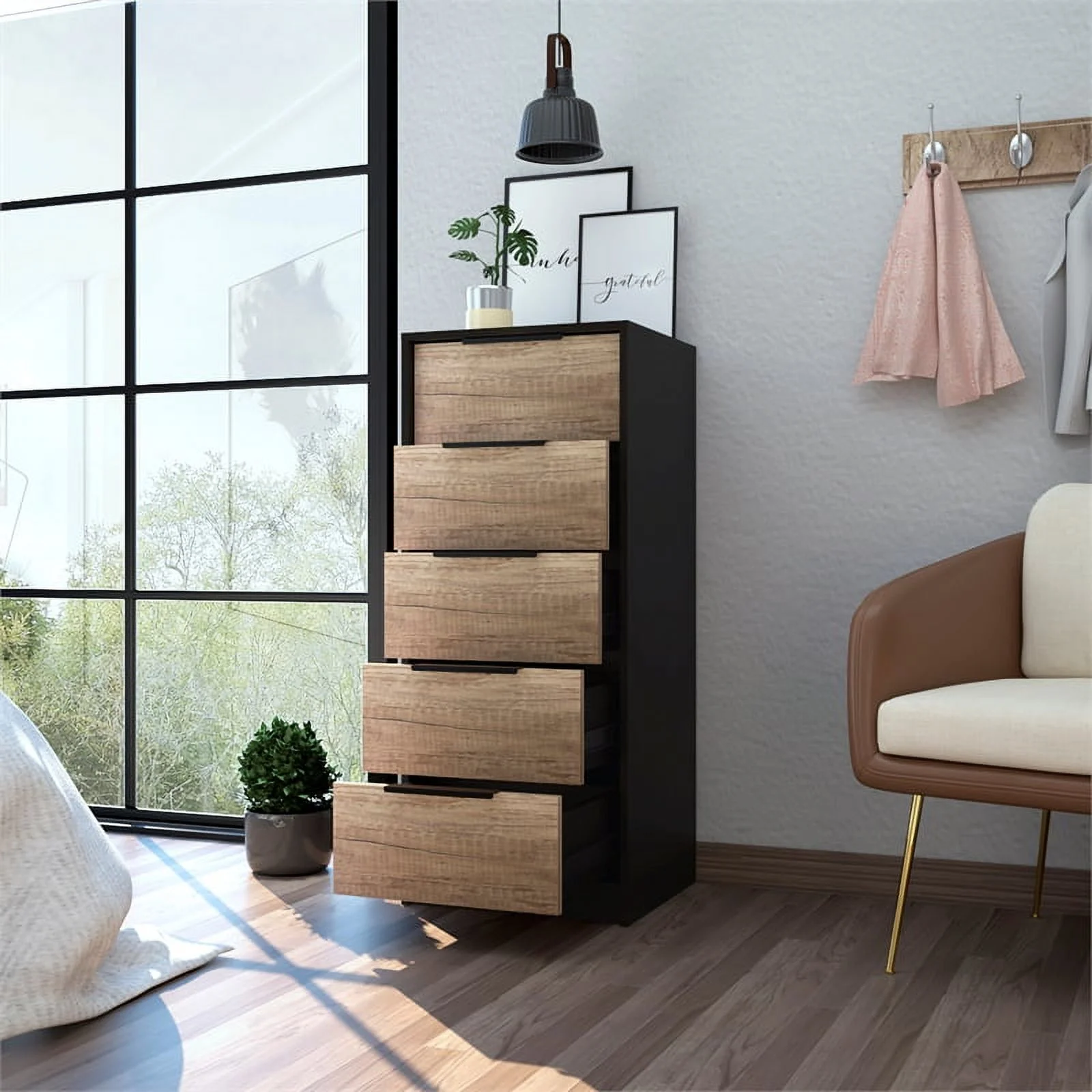 Bowery Hill Modern 5-Drawer Wood Free Standing Dresser in Espresso/Light Oak