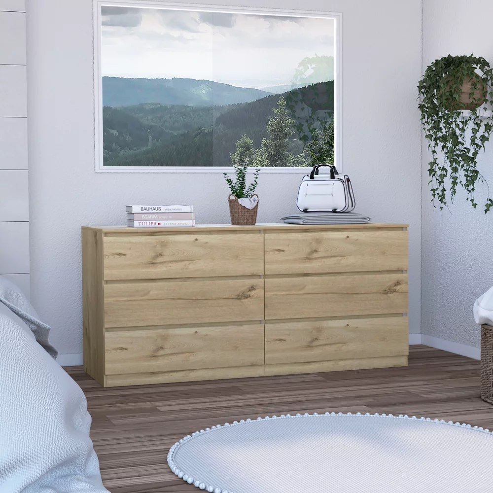 Mid-Century Modern Light Oak Solid Wood Dresser FOA FOA7602D-6D Willamette
