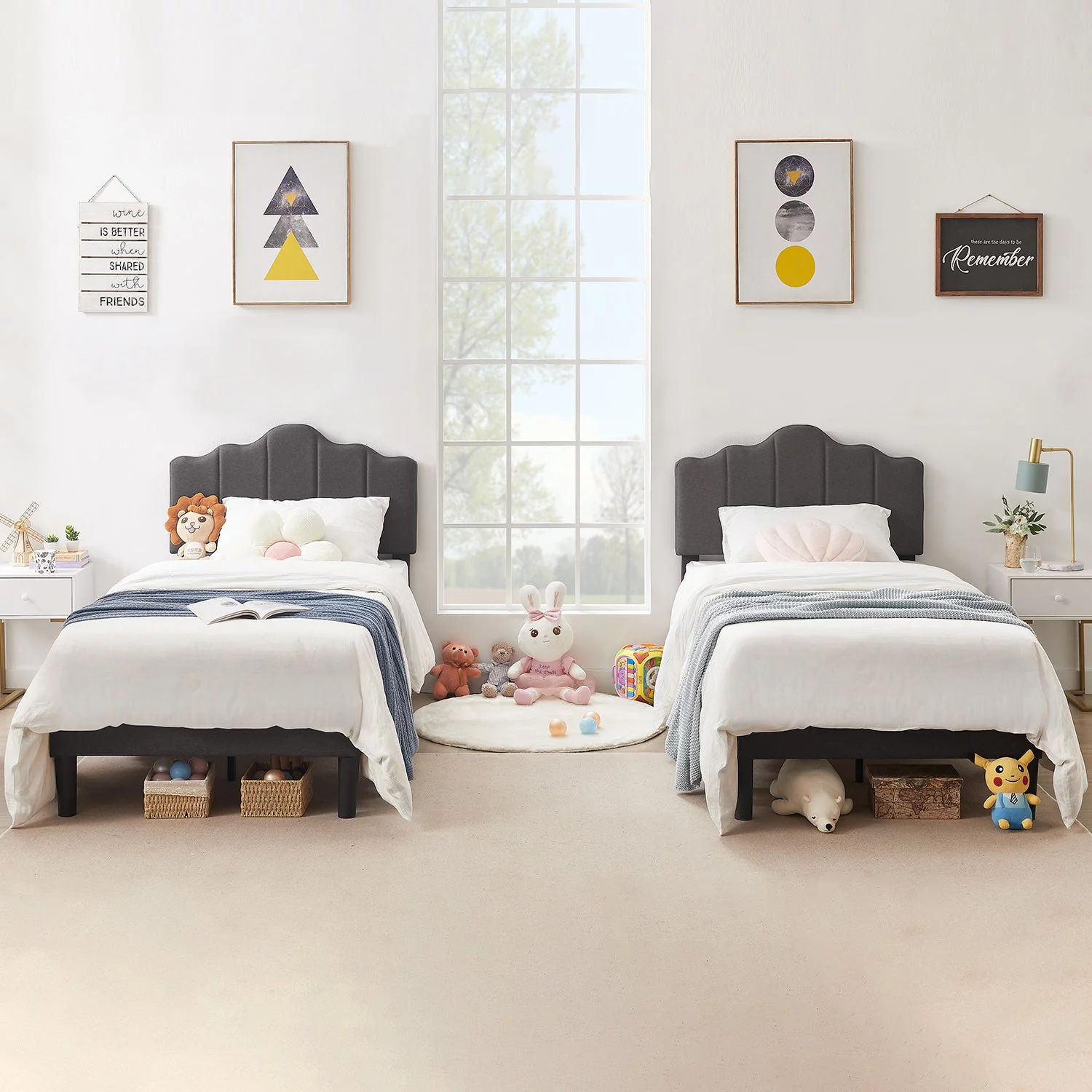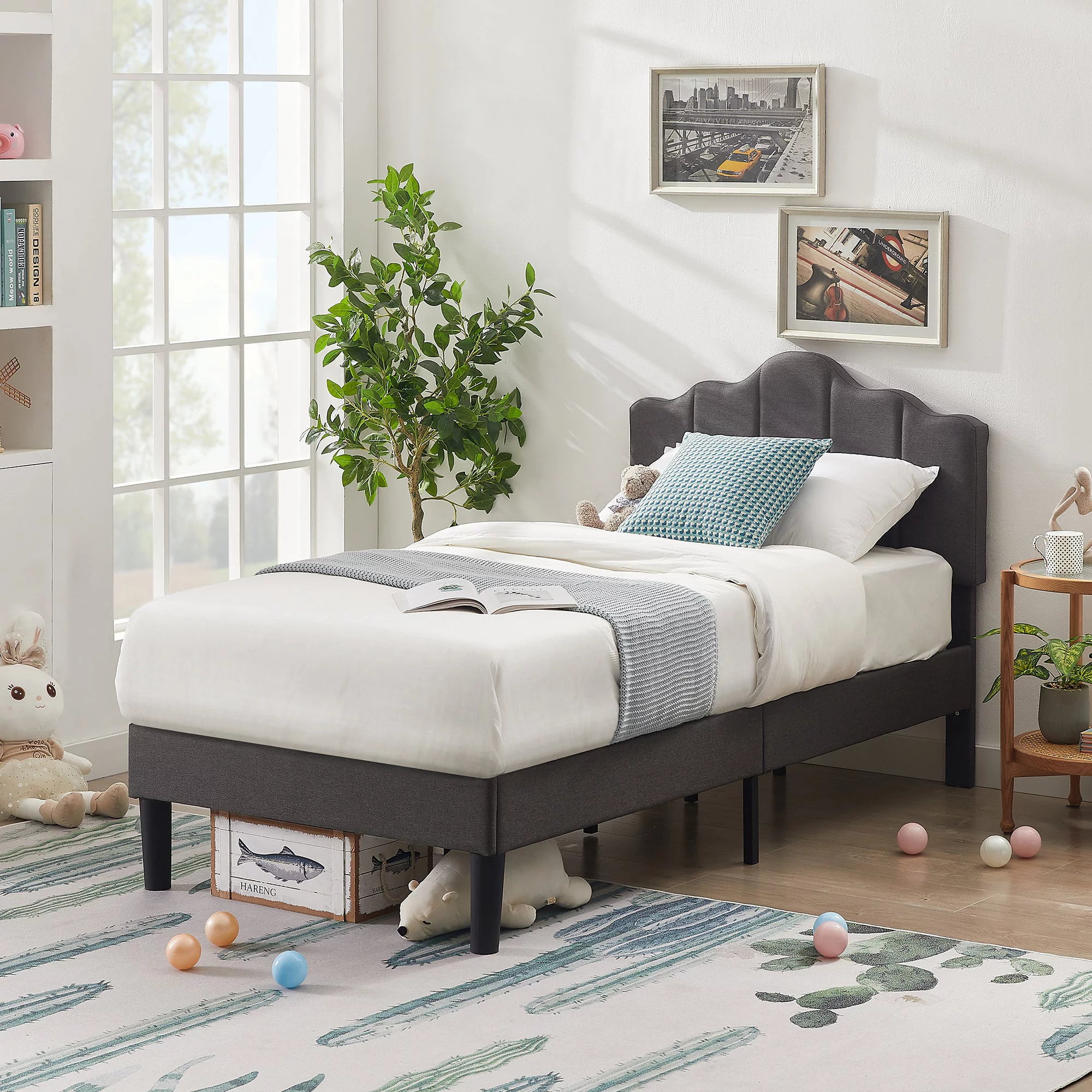 VECELO 2-Piece Twin Platform Bed Frame with Adjustable Headboard, No Box Spring Needed, Gray