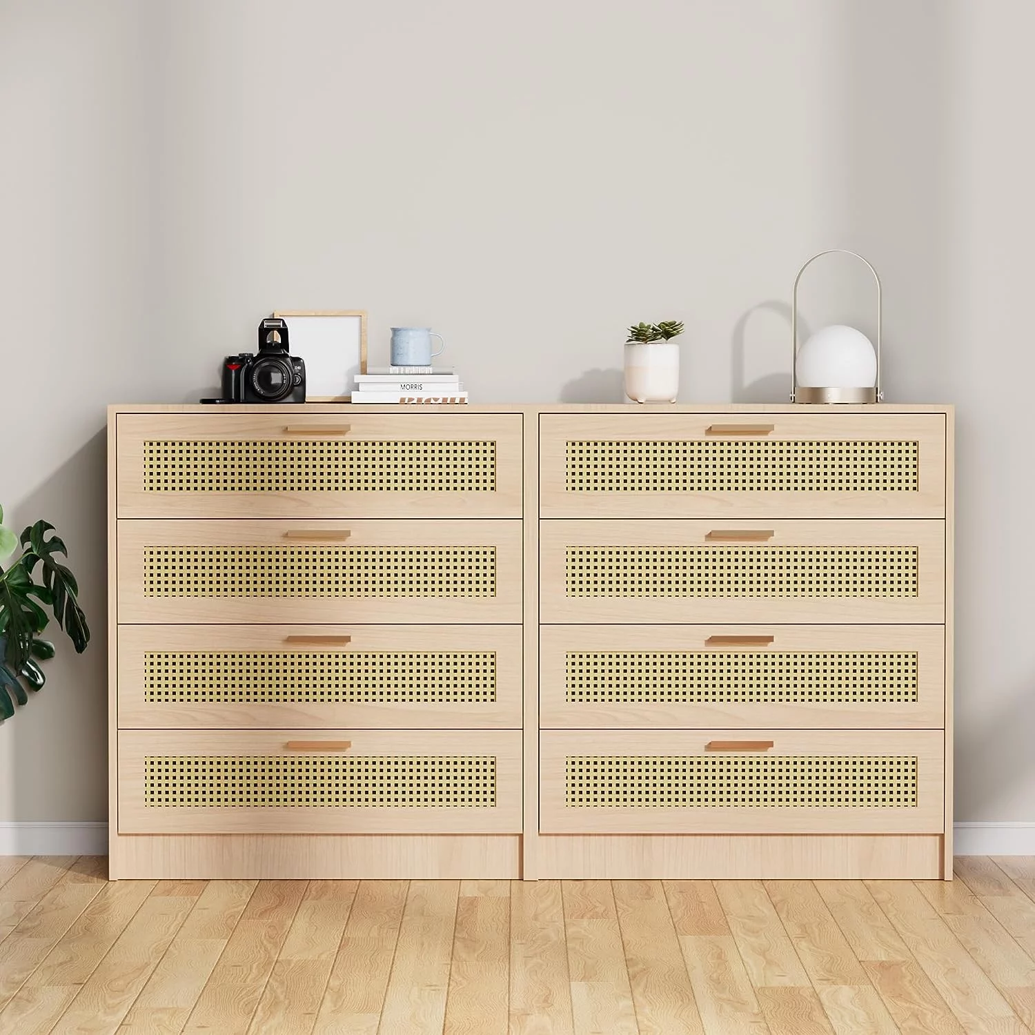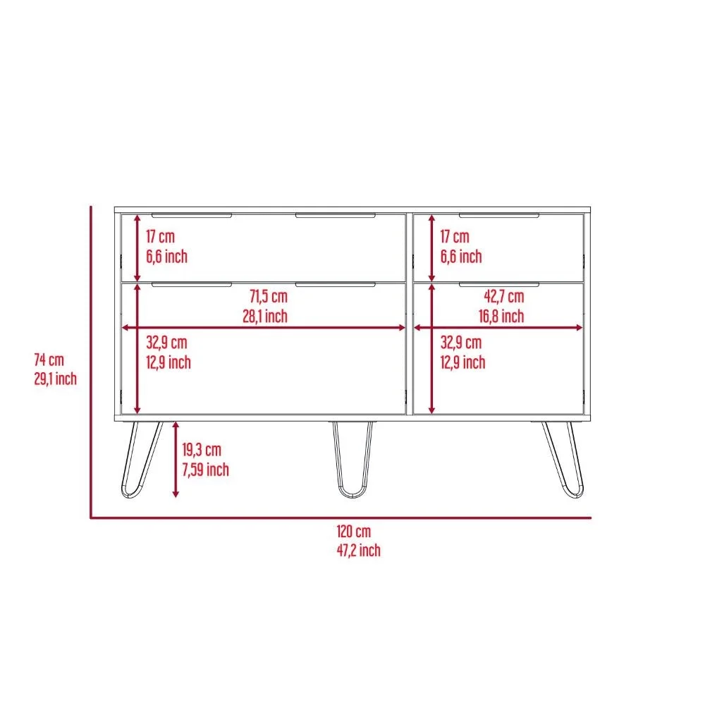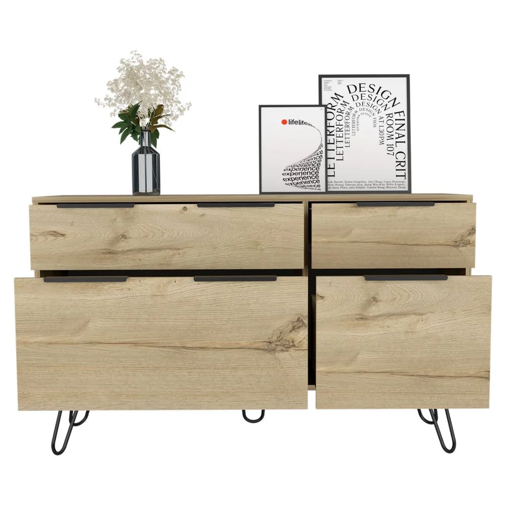 Double Dresser Skyoner, Superior Top, Hairpin Legs, Four Drawers, Light Oak Finish