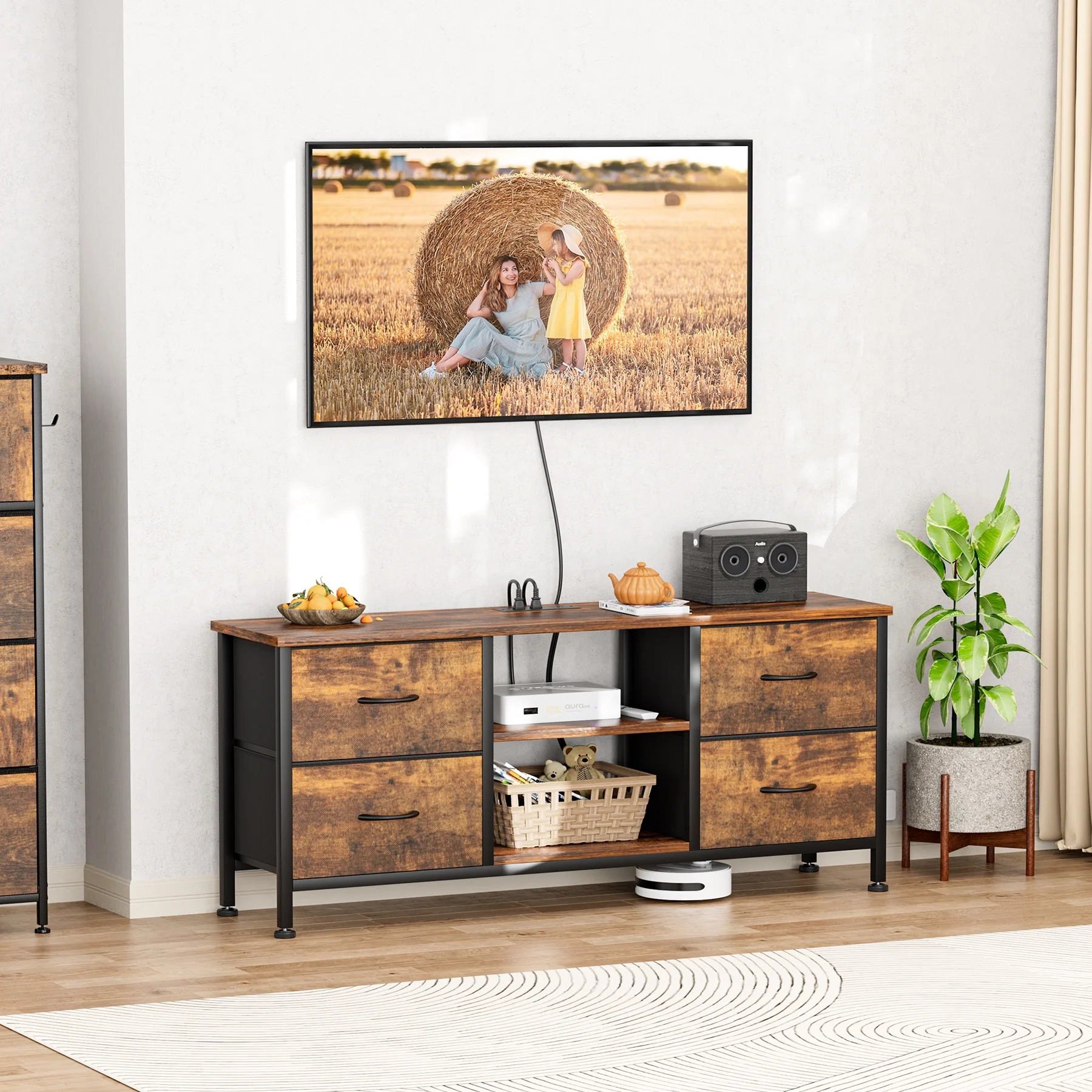 GIKPAL Modern Dresser TV Stand for TVs up to 50" TV stand dressers for bedrooms with 4 drawers, Brown