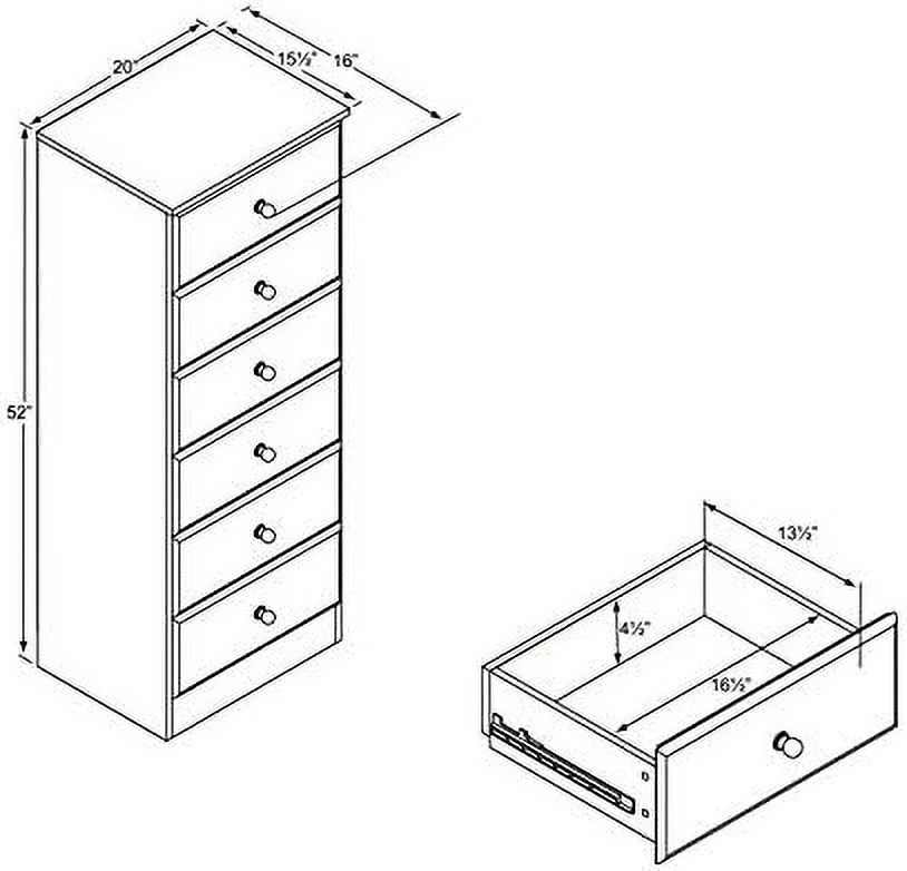 HOOMHIBIU 52" Tall 6 Drawer Lingerie Chest/ Chest with Wood Knobs in Black
