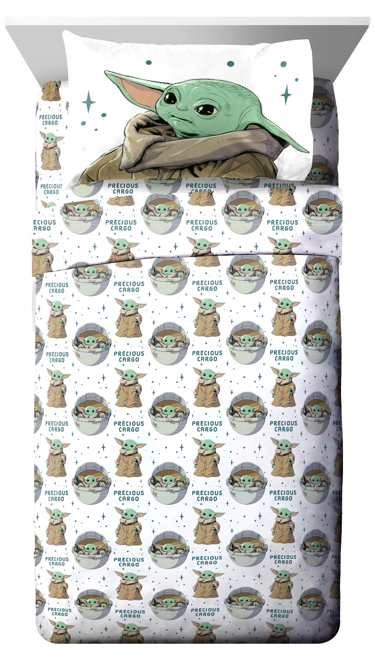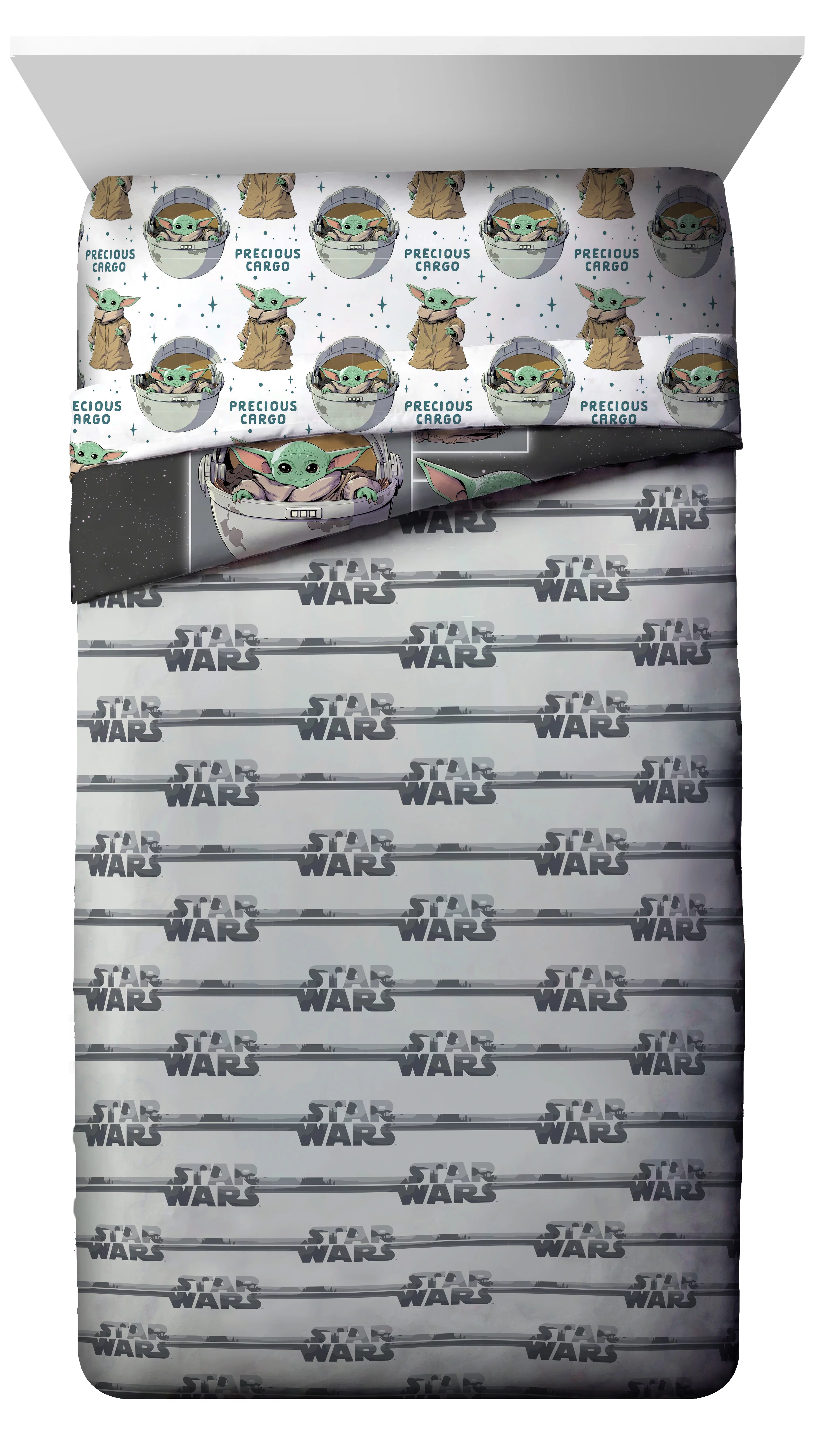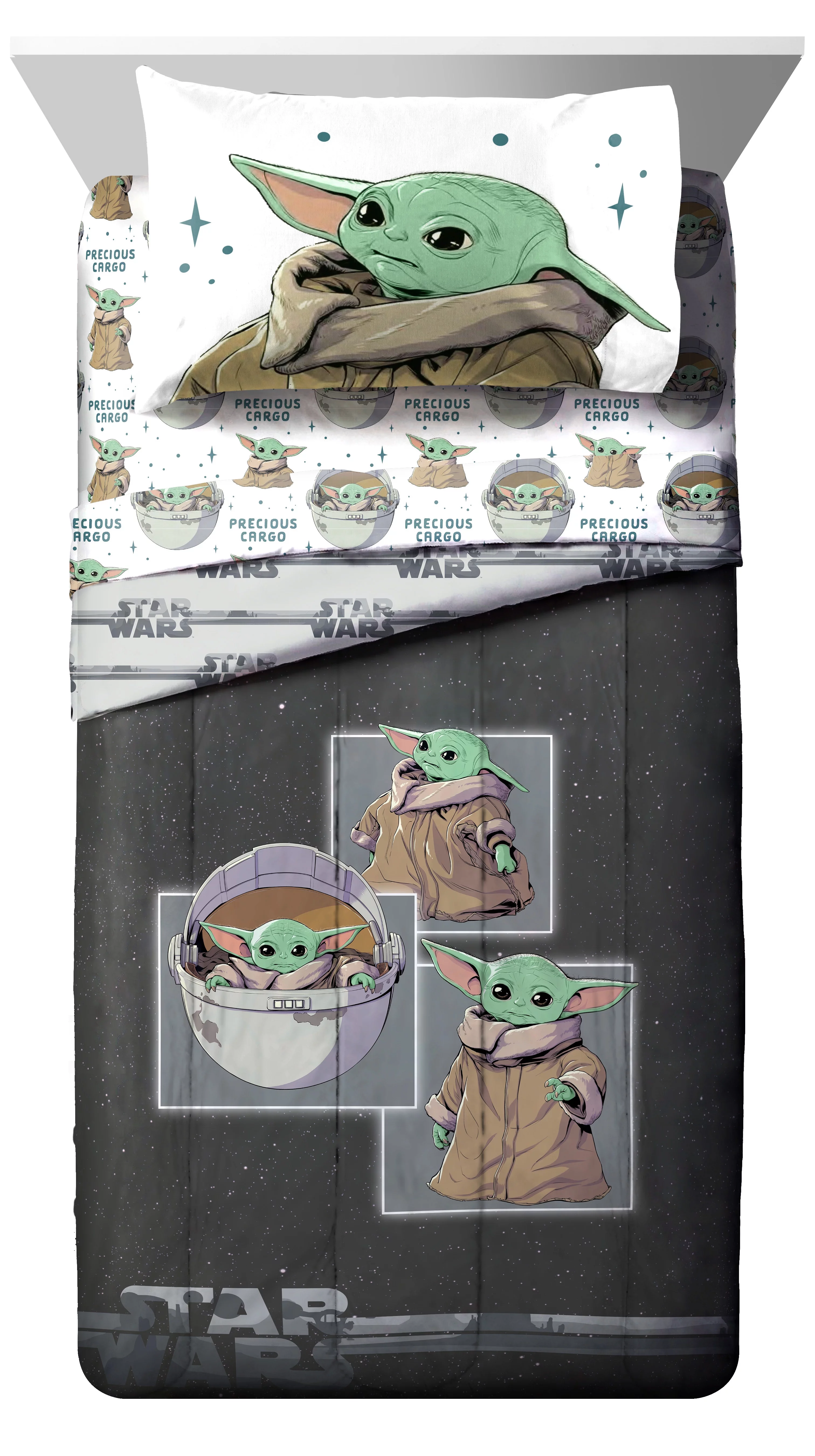 The Mandalorian Baby Yoda Kids 4 Piece Twin Bed Set, 100% Microfiber, Gray