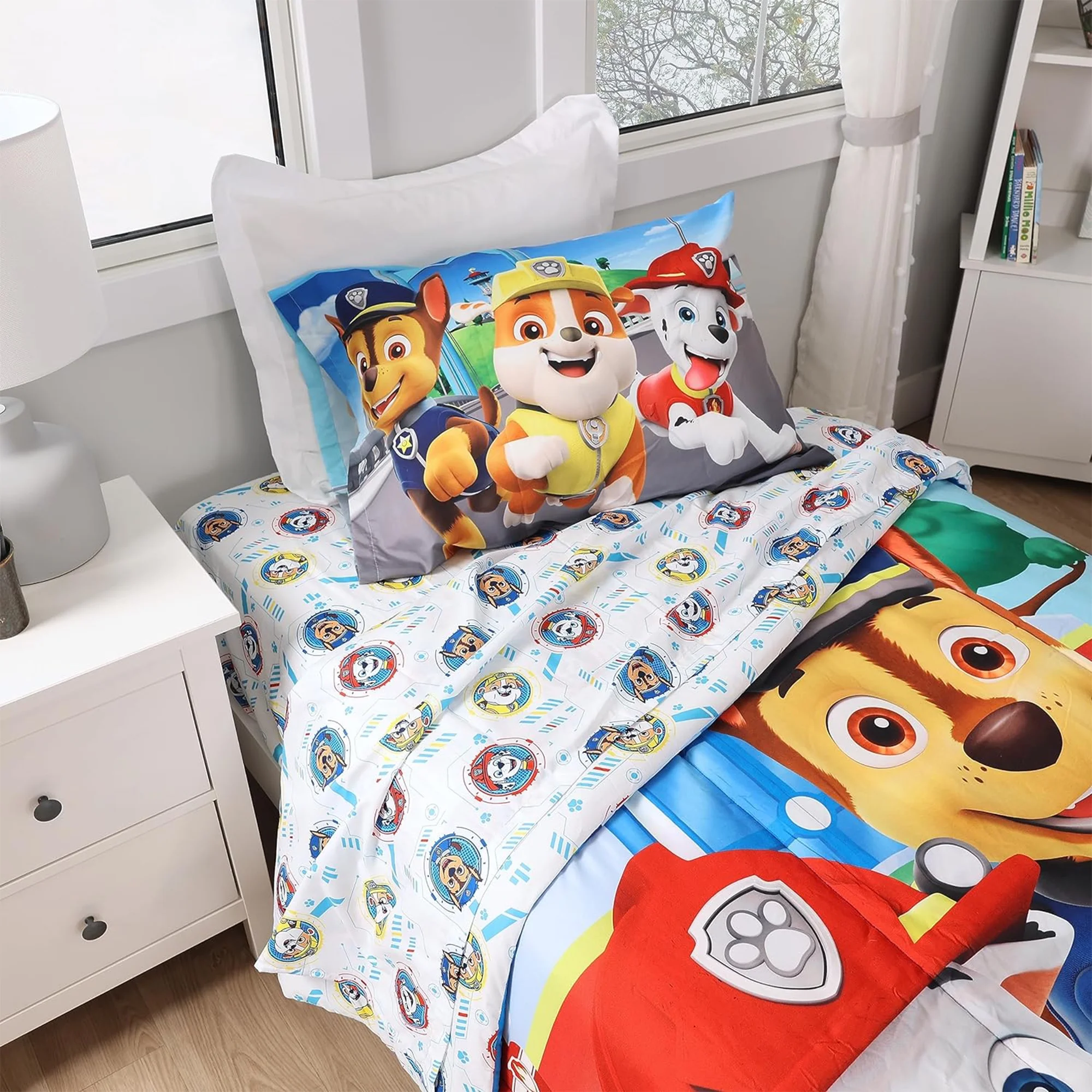 Paw Patrol Kids Bedding Sheet Set with Reversible Comforter Twin Bed in Bag 4 Pcs Set for Kids