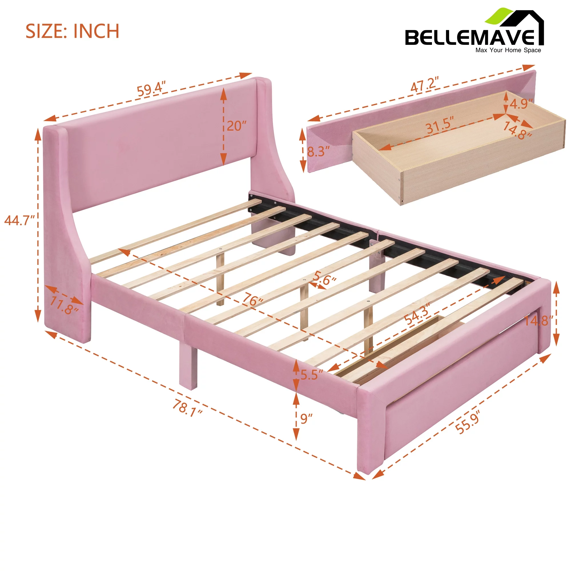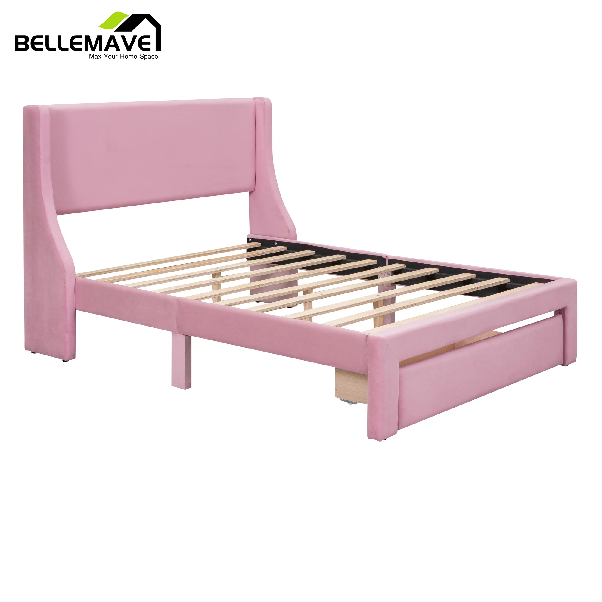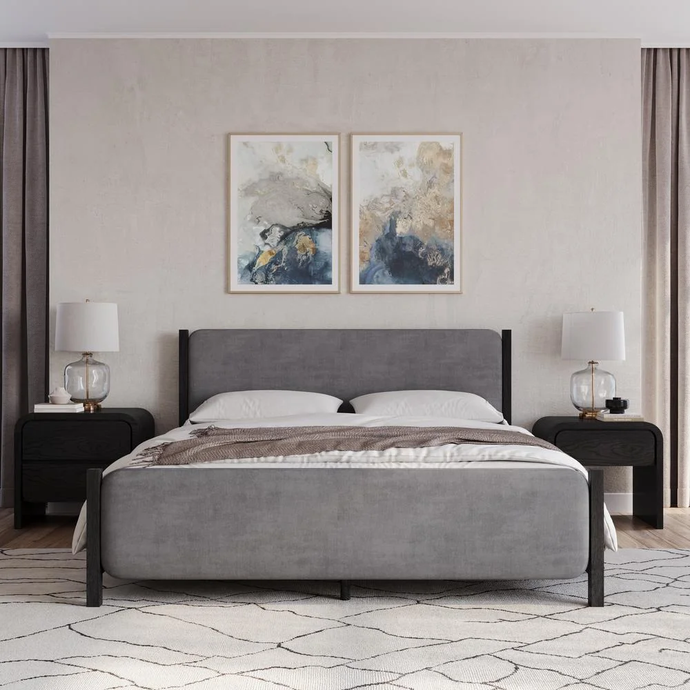 Modus Furniture Elora Wood and Velvet Upholstered Bed in Jet and Charcoal