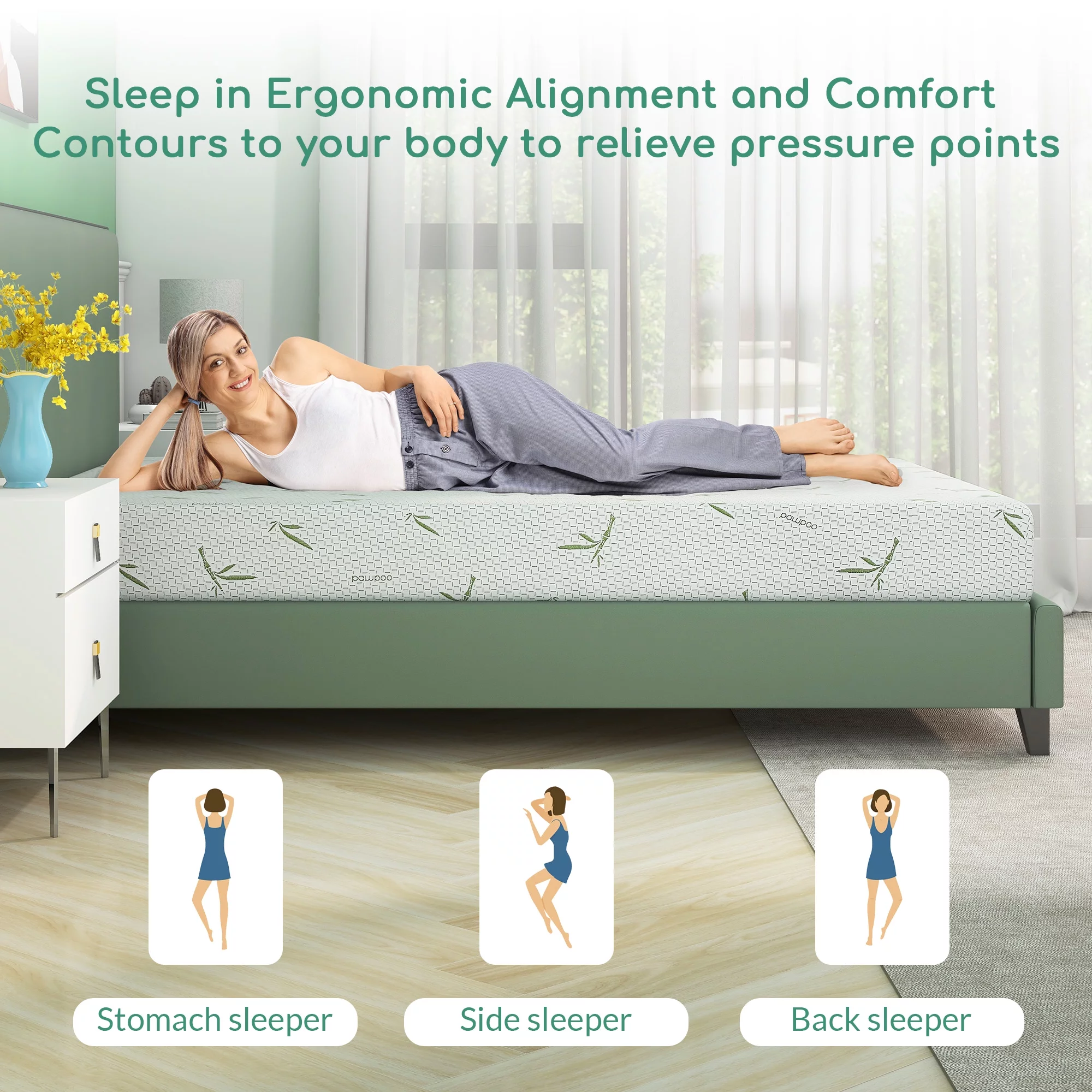 Twin Mattress Bed in a Box, Memory Foam Mattress infused with Bamboo Charcoal Gel,10 inches,Made in USA
