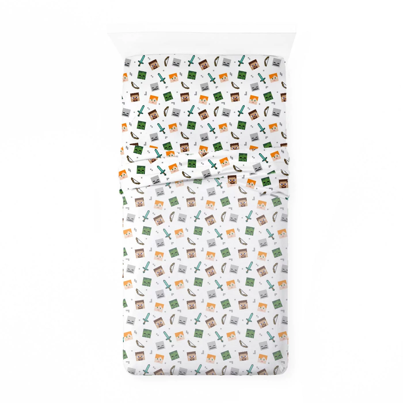 Minecraft Battle Time Blue & Green 5 Piece Twin Bed Set w/ Sham, 100% Microfiber